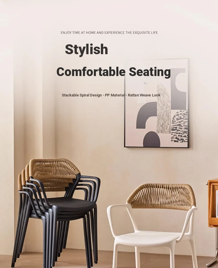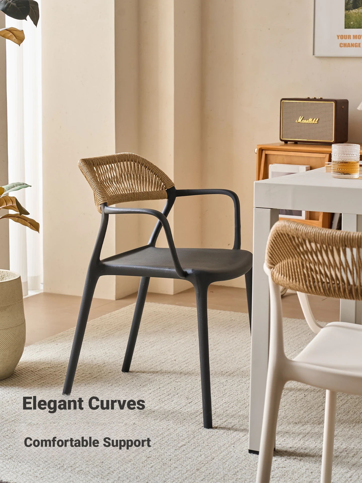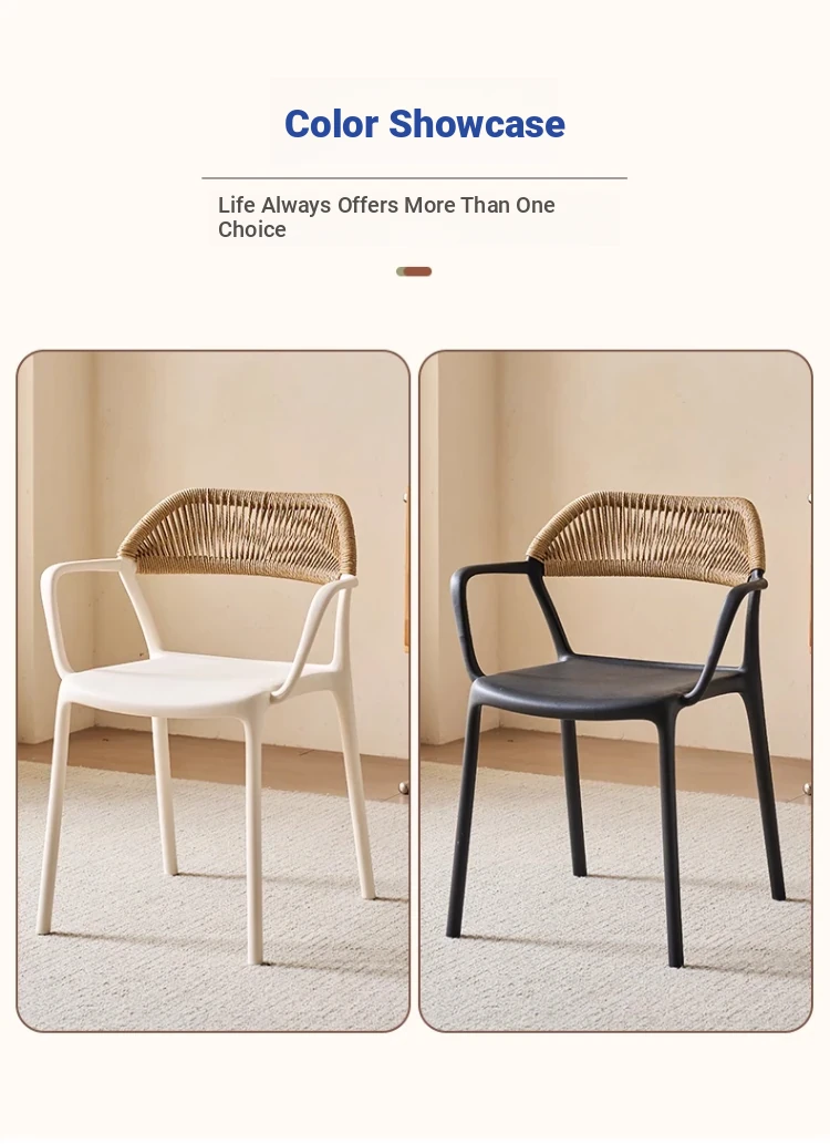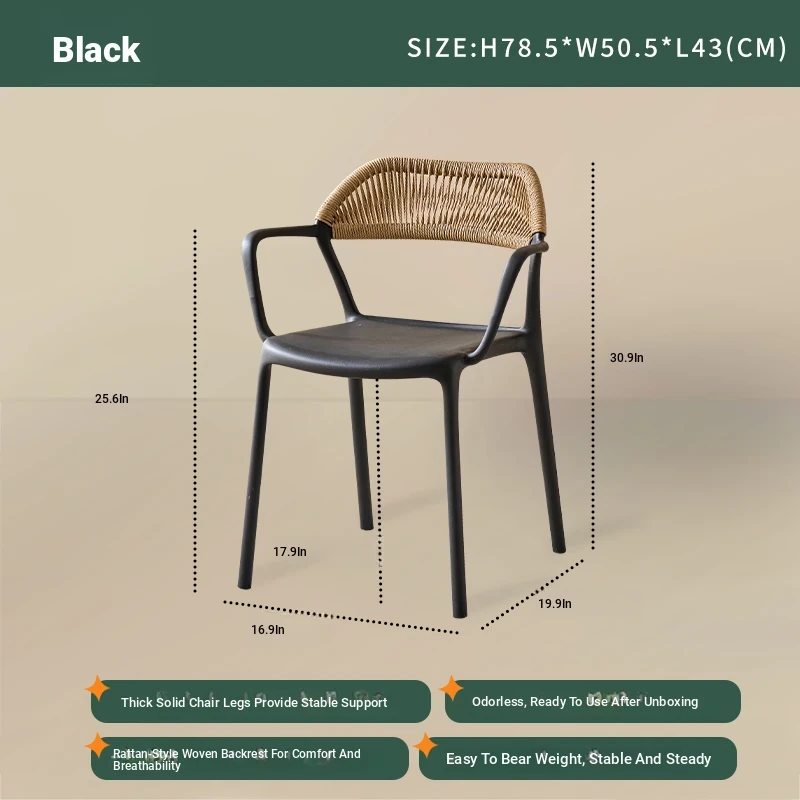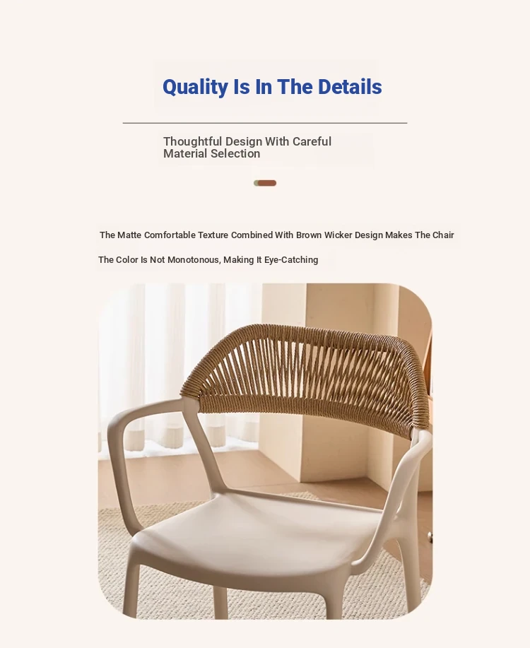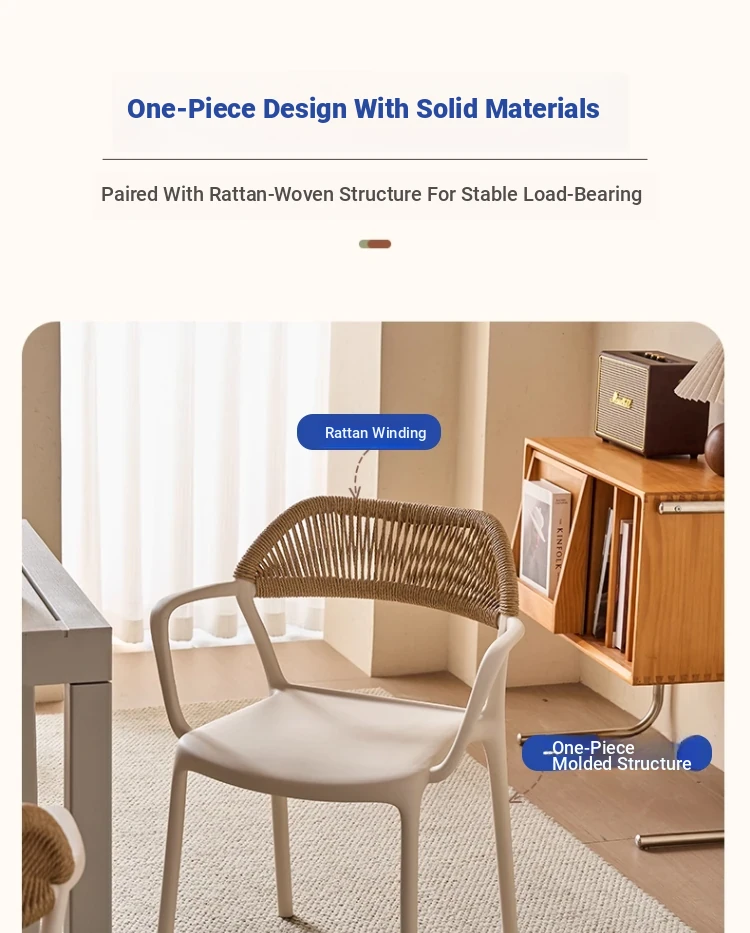 Nordic Creamy Woven Plastic Dining Chair - Modern Minimalist with Backrest for Home, Perfect for Balcony Table Set, Stylish Leisure Chair
