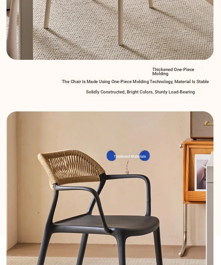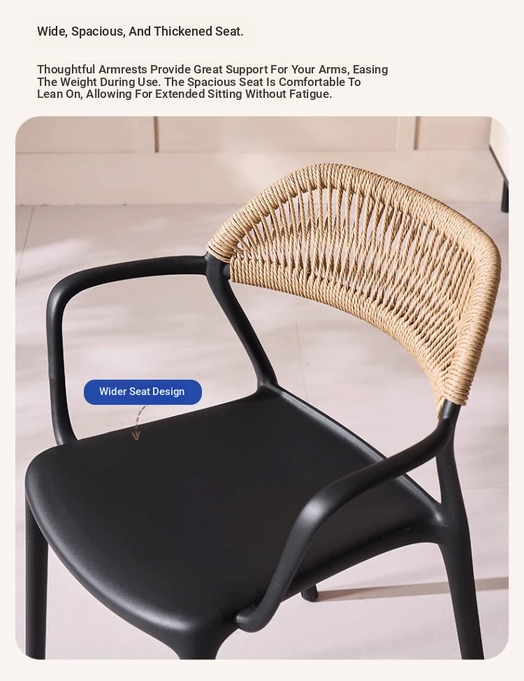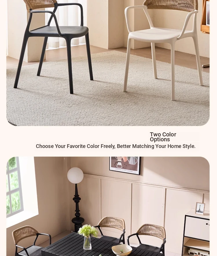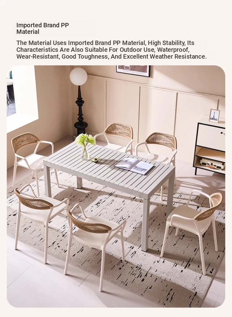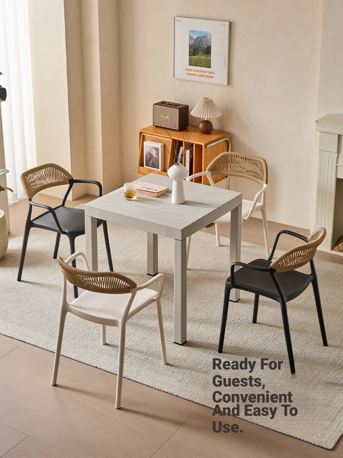 Nordic Creamy Woven Plastic Dining Chair - Modern Minimalist with Backrest for Home, Perfect for Balcony Table Set, Stylish Leisure Chair