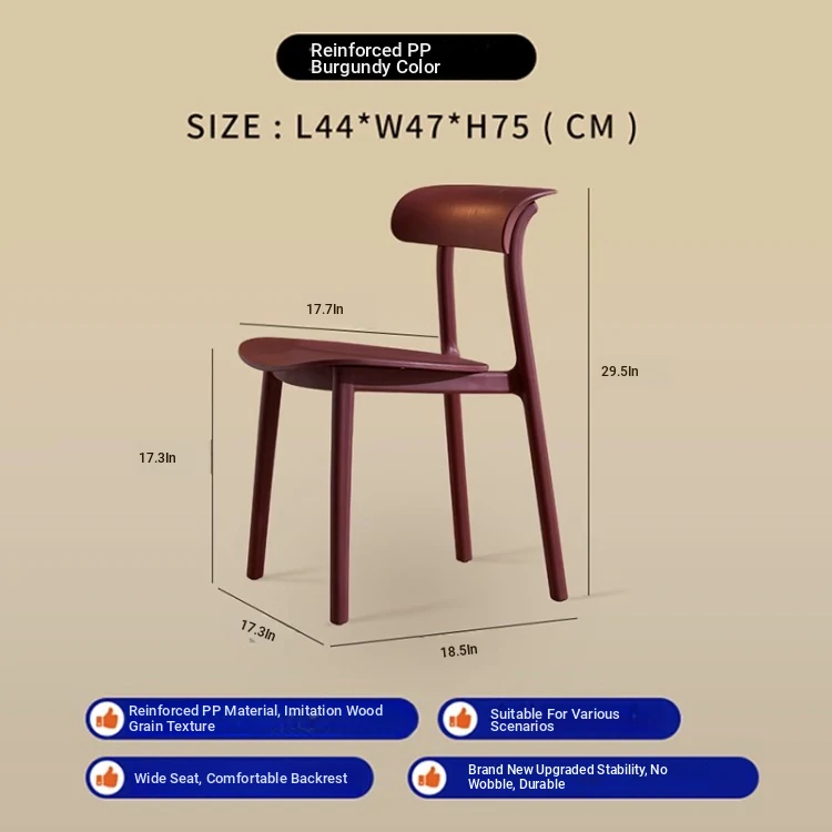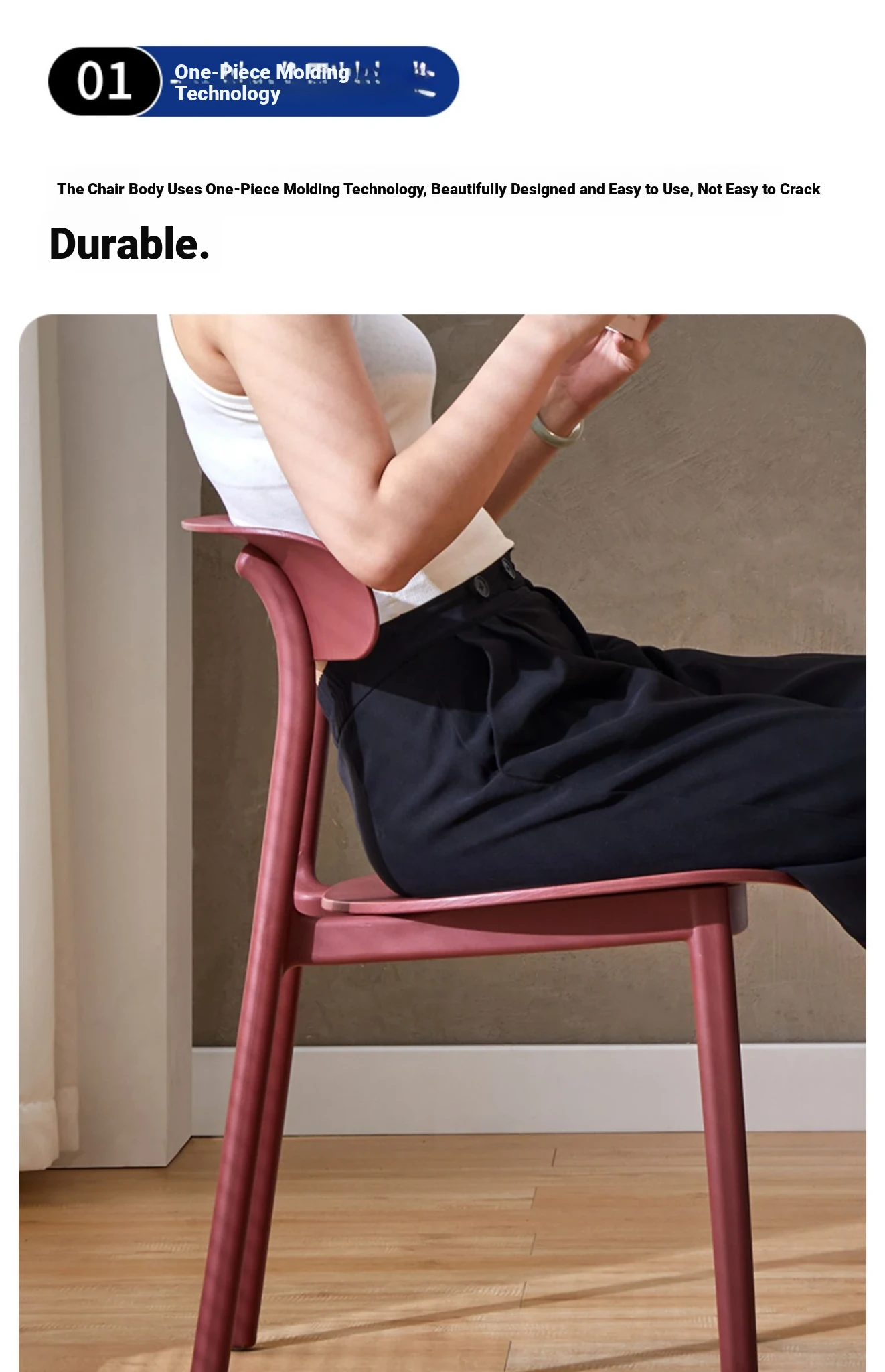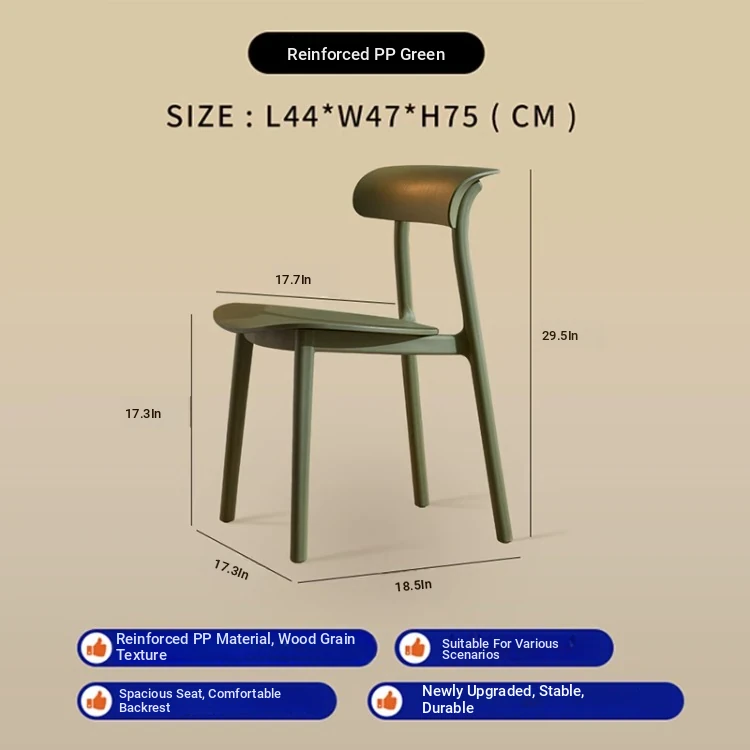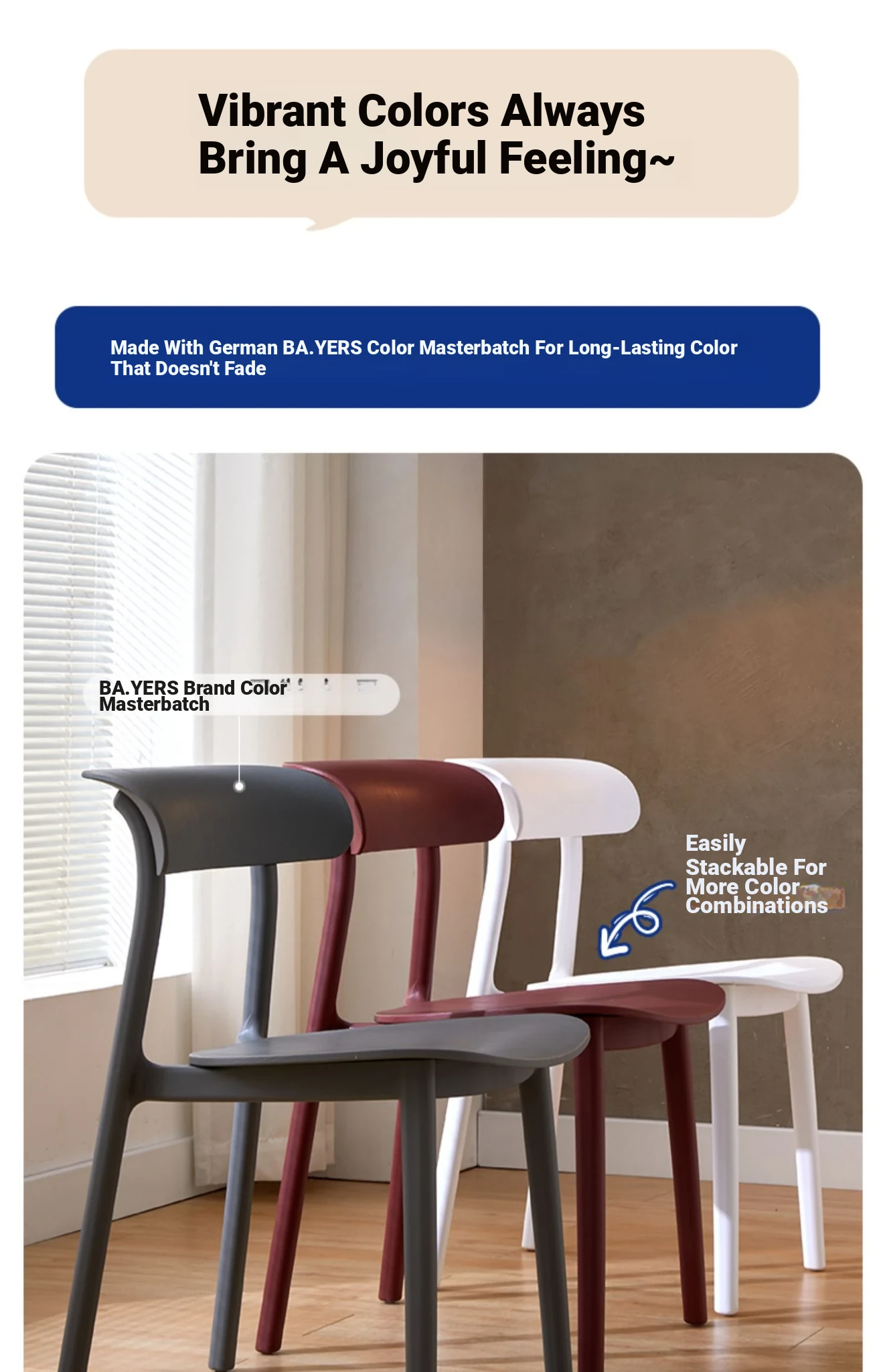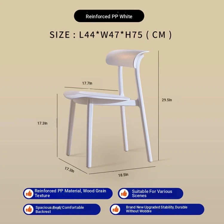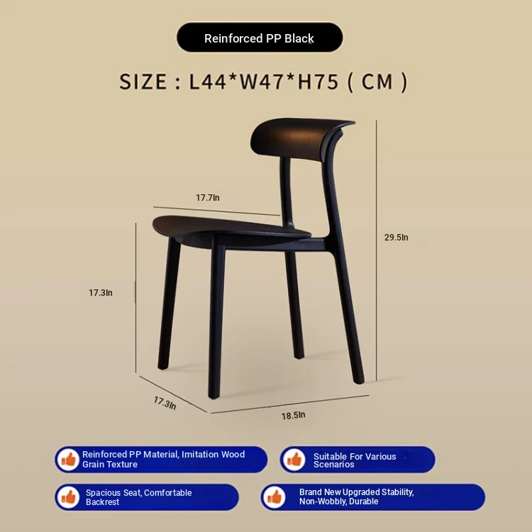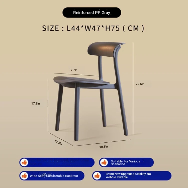 Nordic Design Stackable Dining Chair - Comfortable Thick Plastic Seat for Home Use, Perfect for Long Sitting, Creative Backrest Stool by Designer
