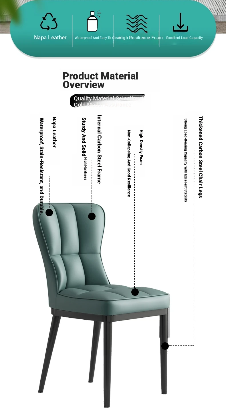 Nordic Soft Upholstered Dining Chair - Modern Minimalist Design for Home, Office, and Restaurant Use - Luxurious Backrest Accent Stool for Makeup and Reception