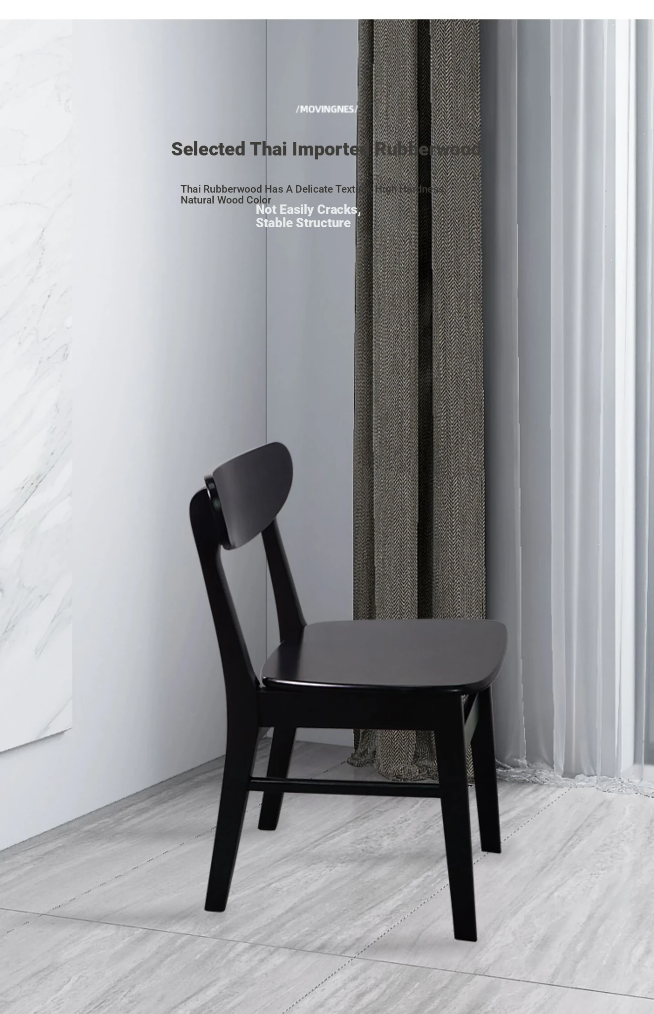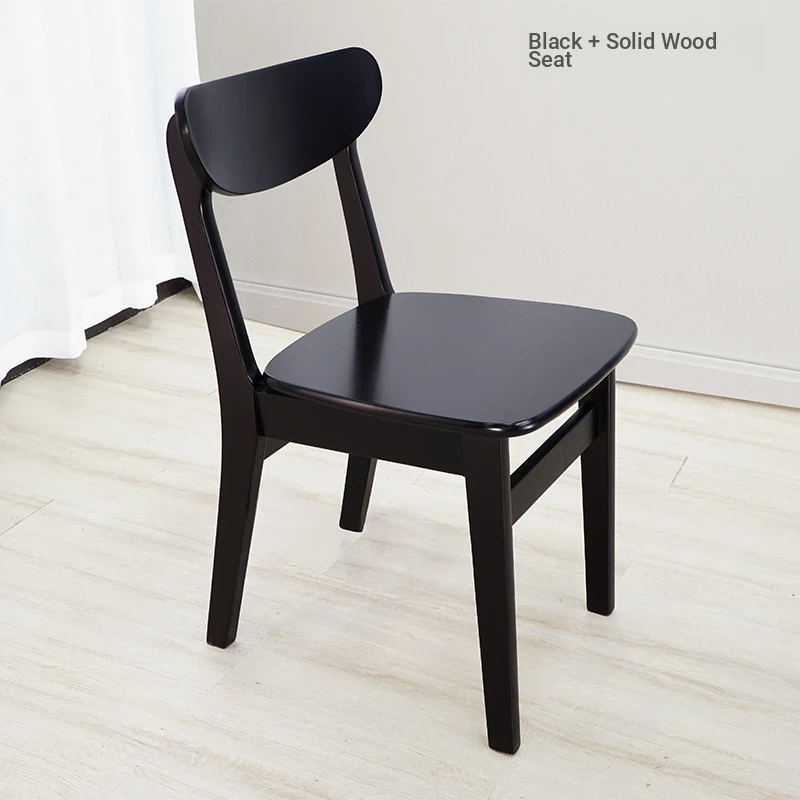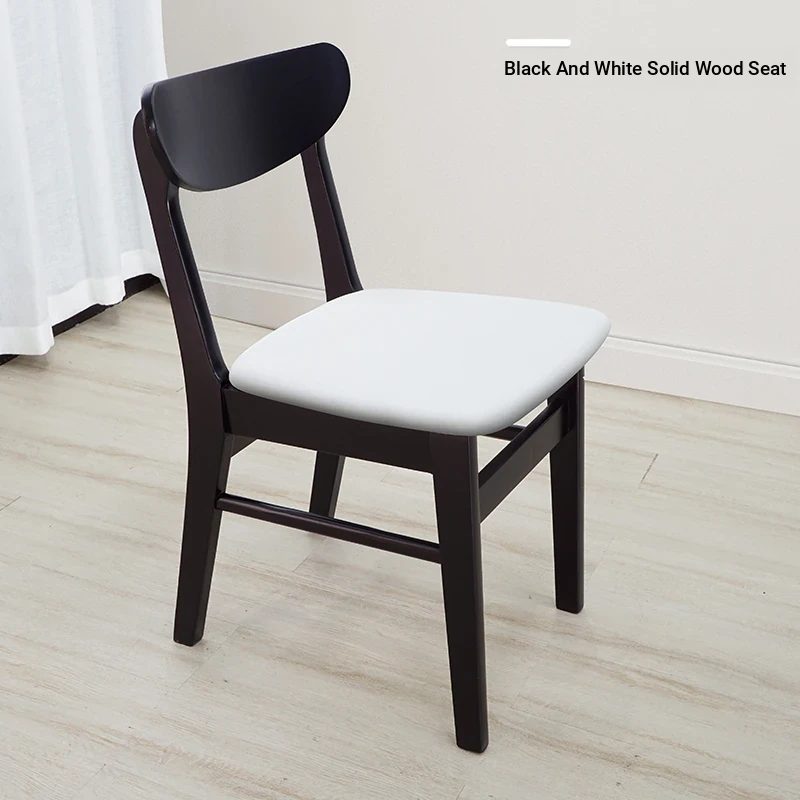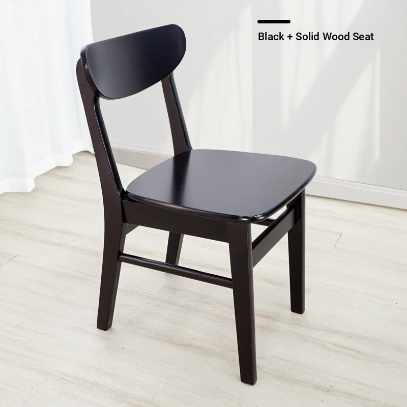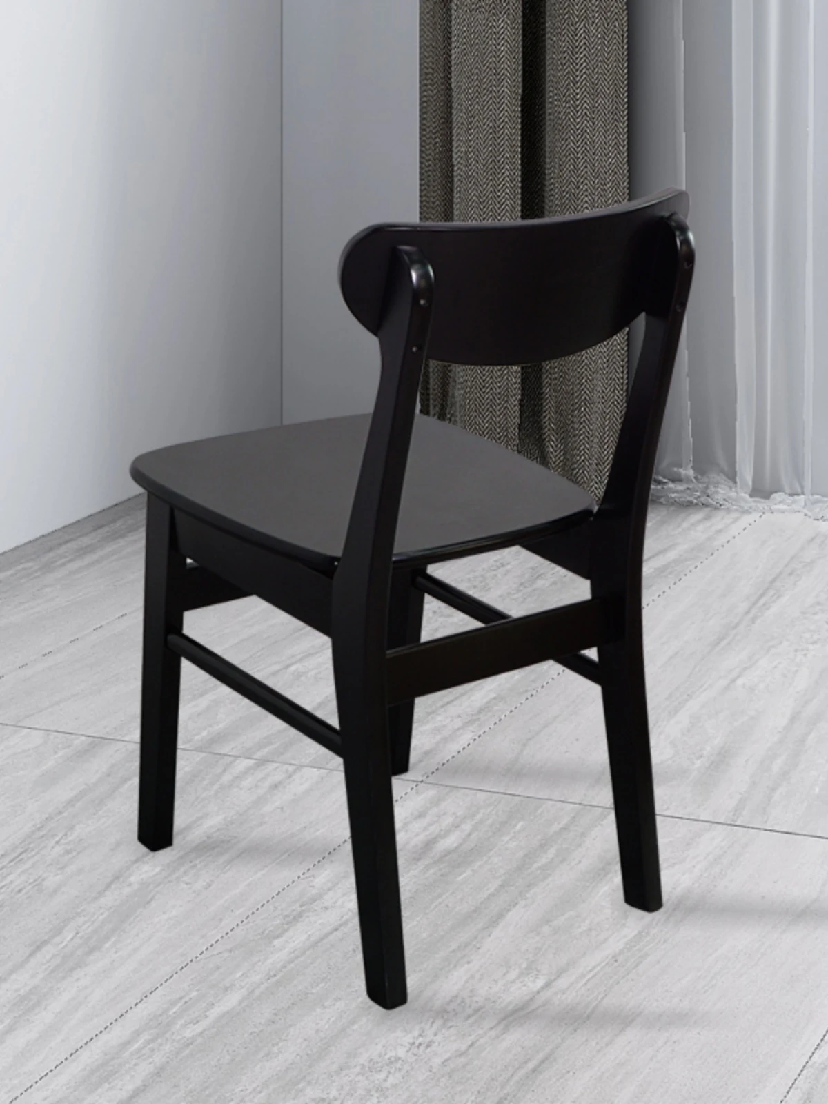 Nordic Solid Wood Dining Chair - Modern Minimalist Home Restaurant Desk with Backrest - Black All-Solid Wood Stool for Café