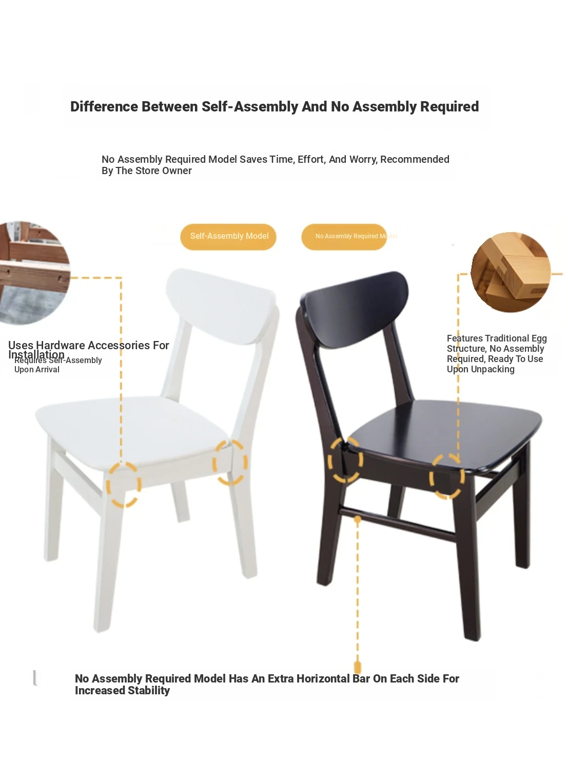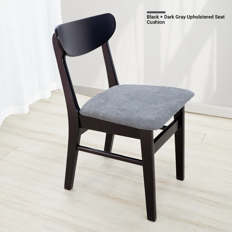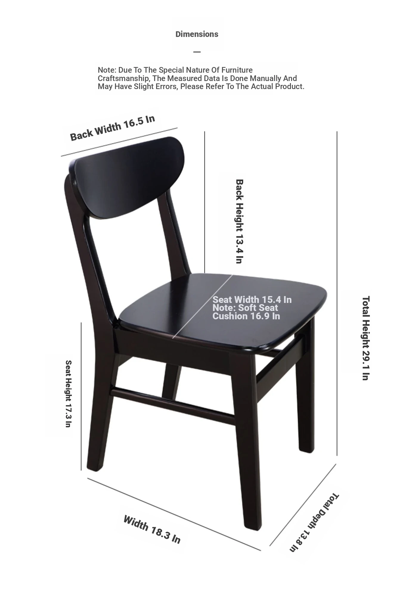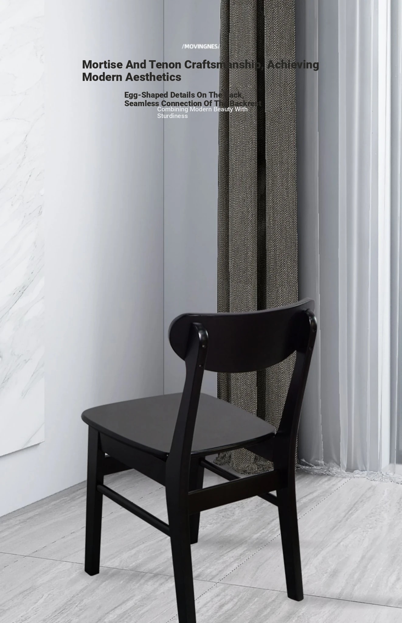 Nordic Solid Wood Dining Chair - Modern Minimalist Home Restaurant Desk with Backrest - Black All-Solid Wood Stool for Café