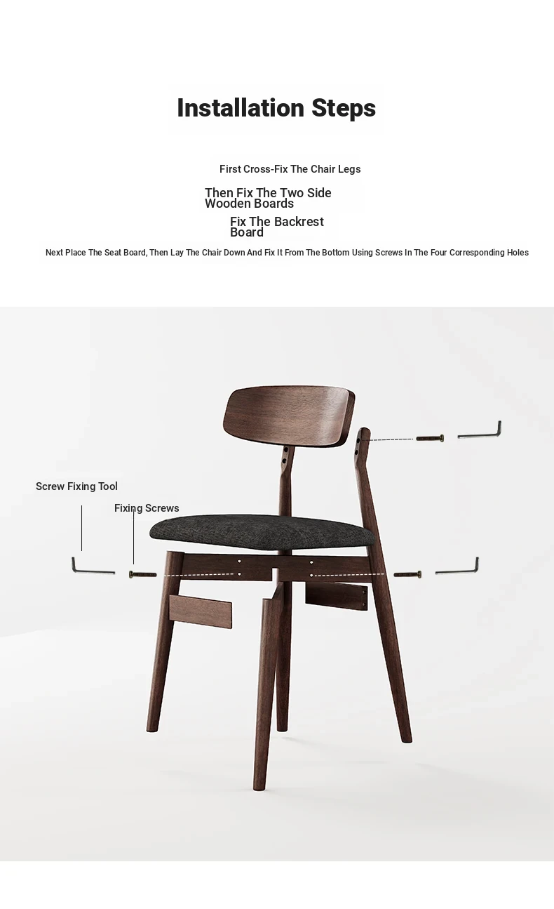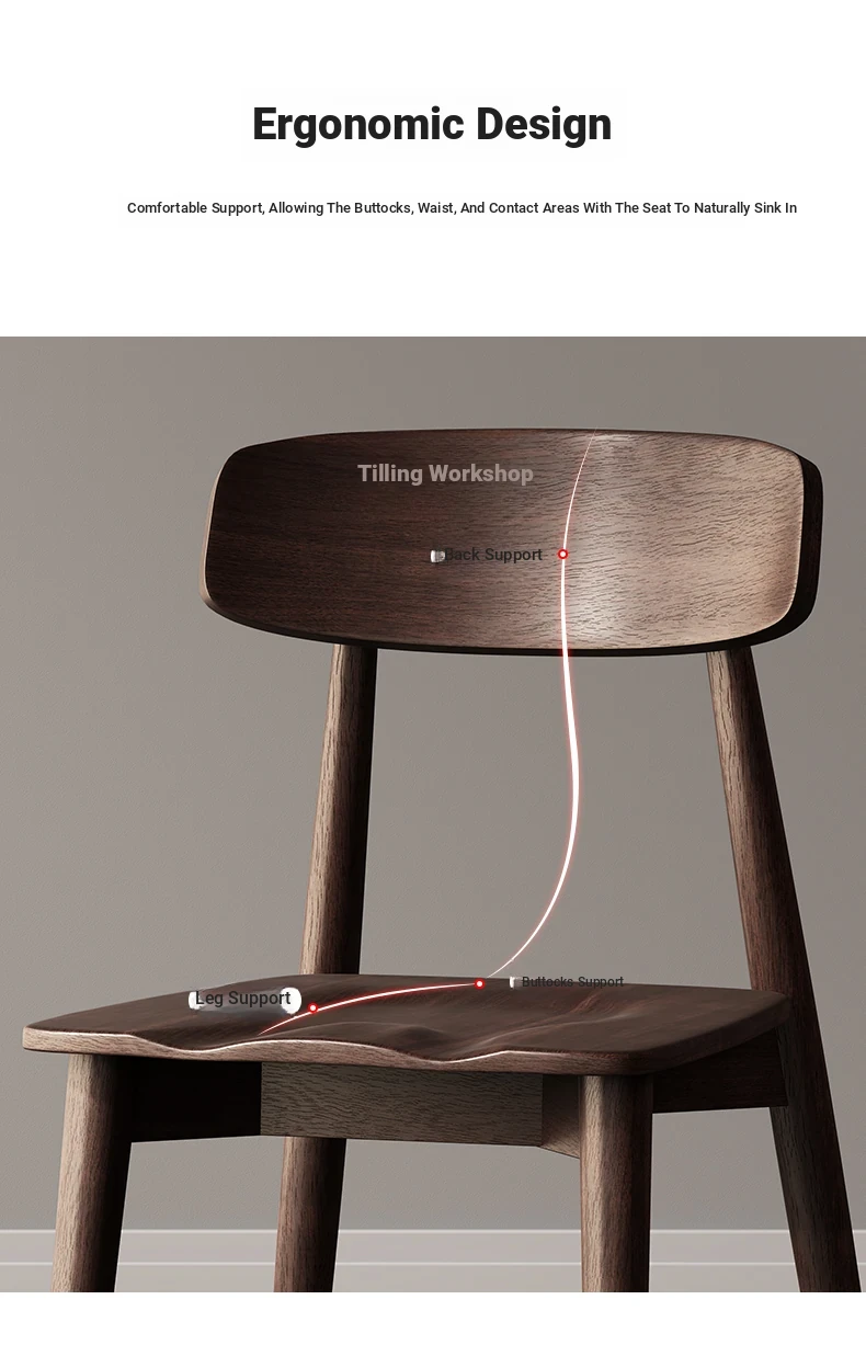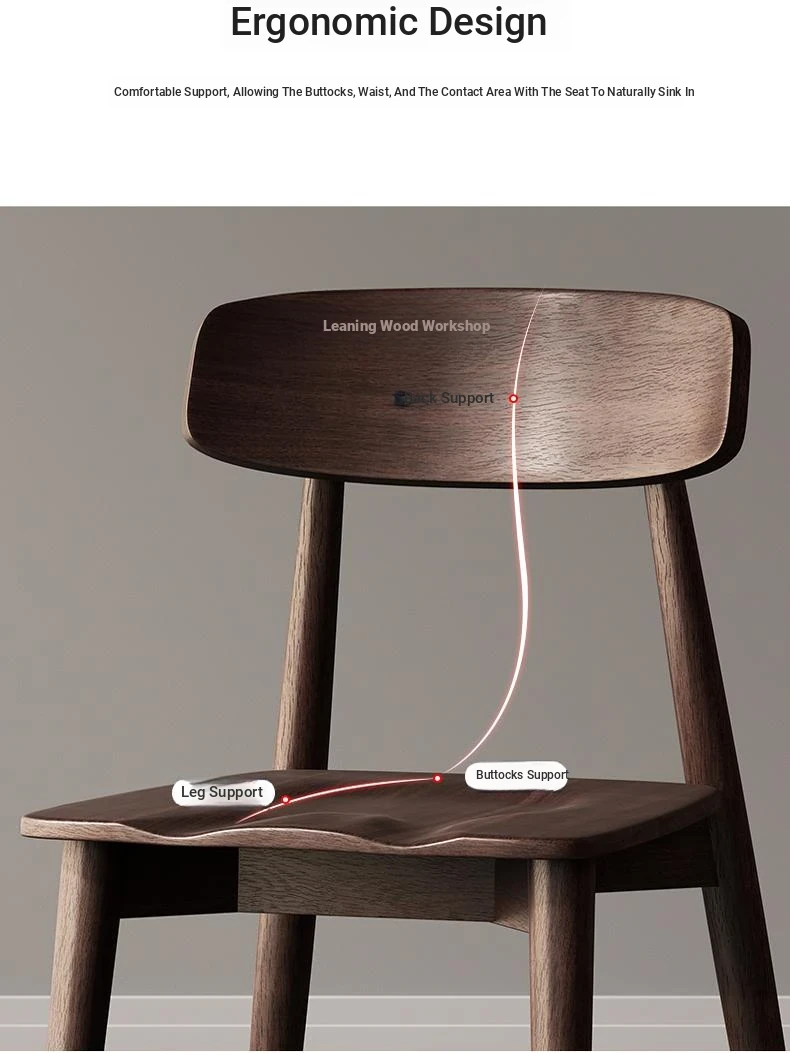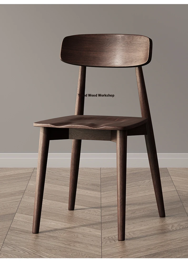 Nordic Solid Wood Dining Chair - Modern Minimalist Walnut Chair for Small Spaces, Designer Backrest for Dining Room