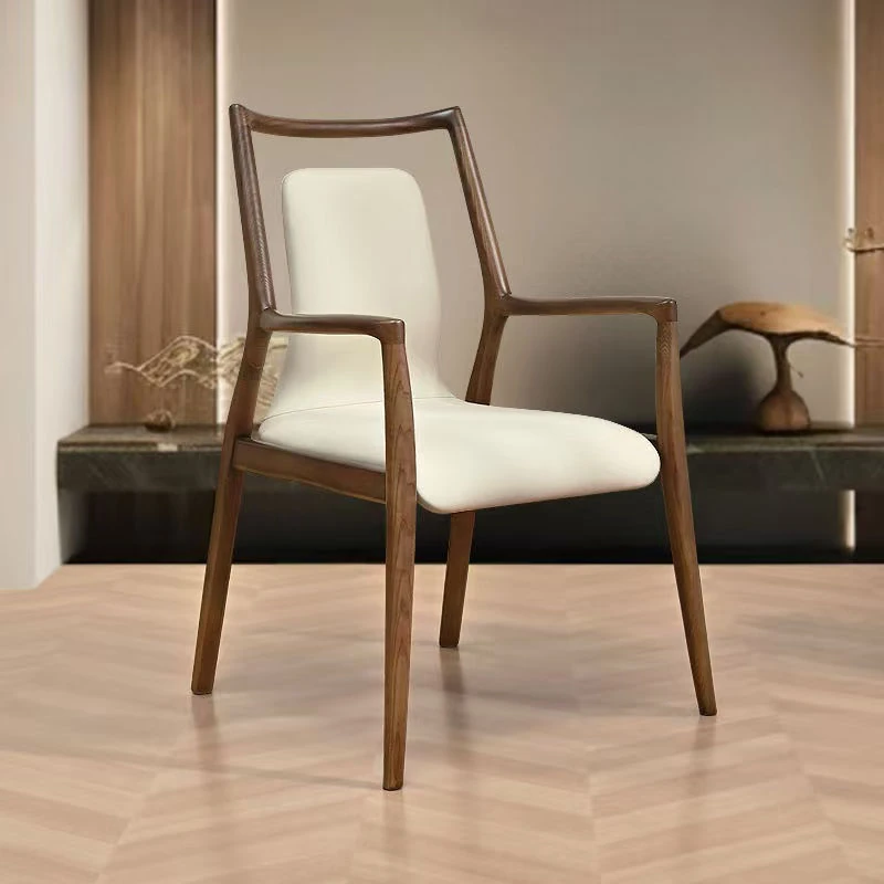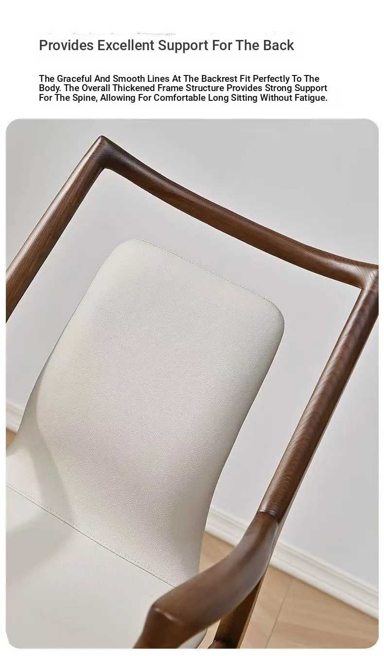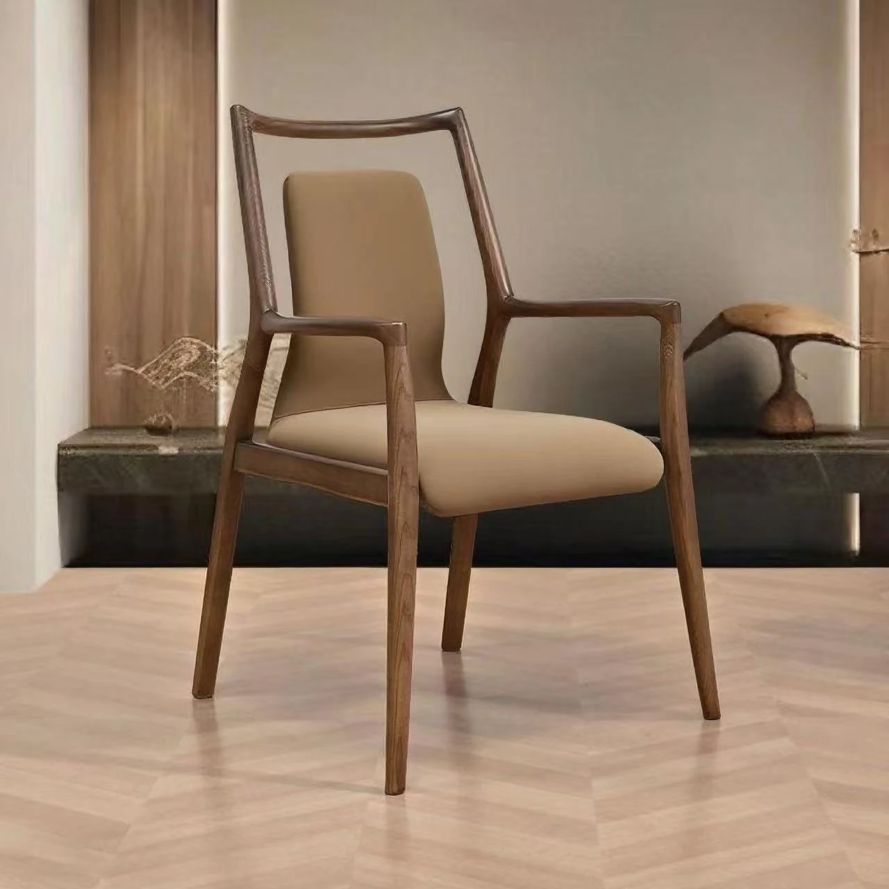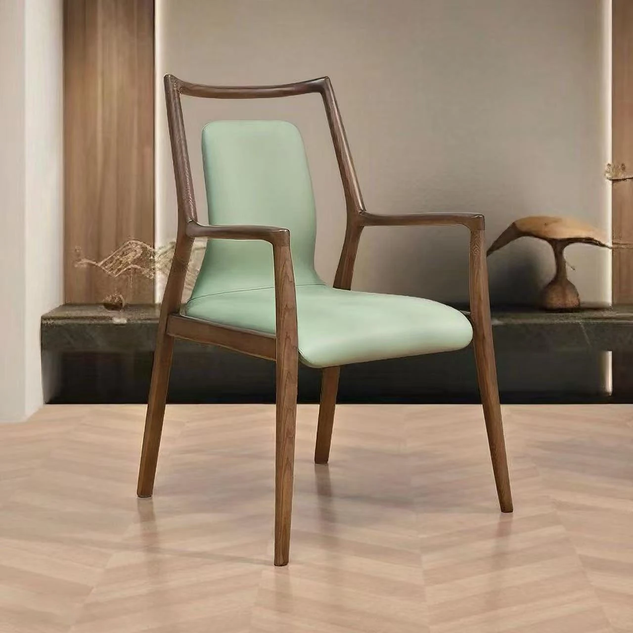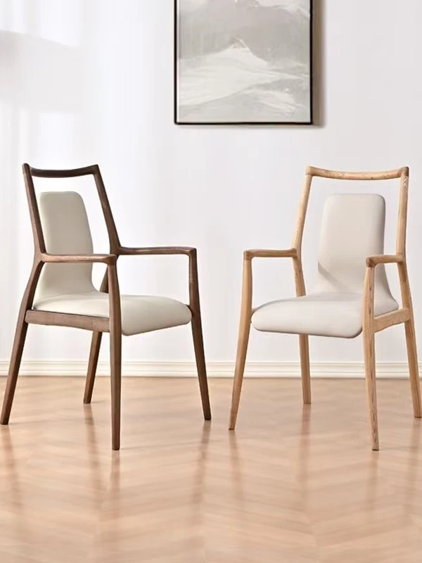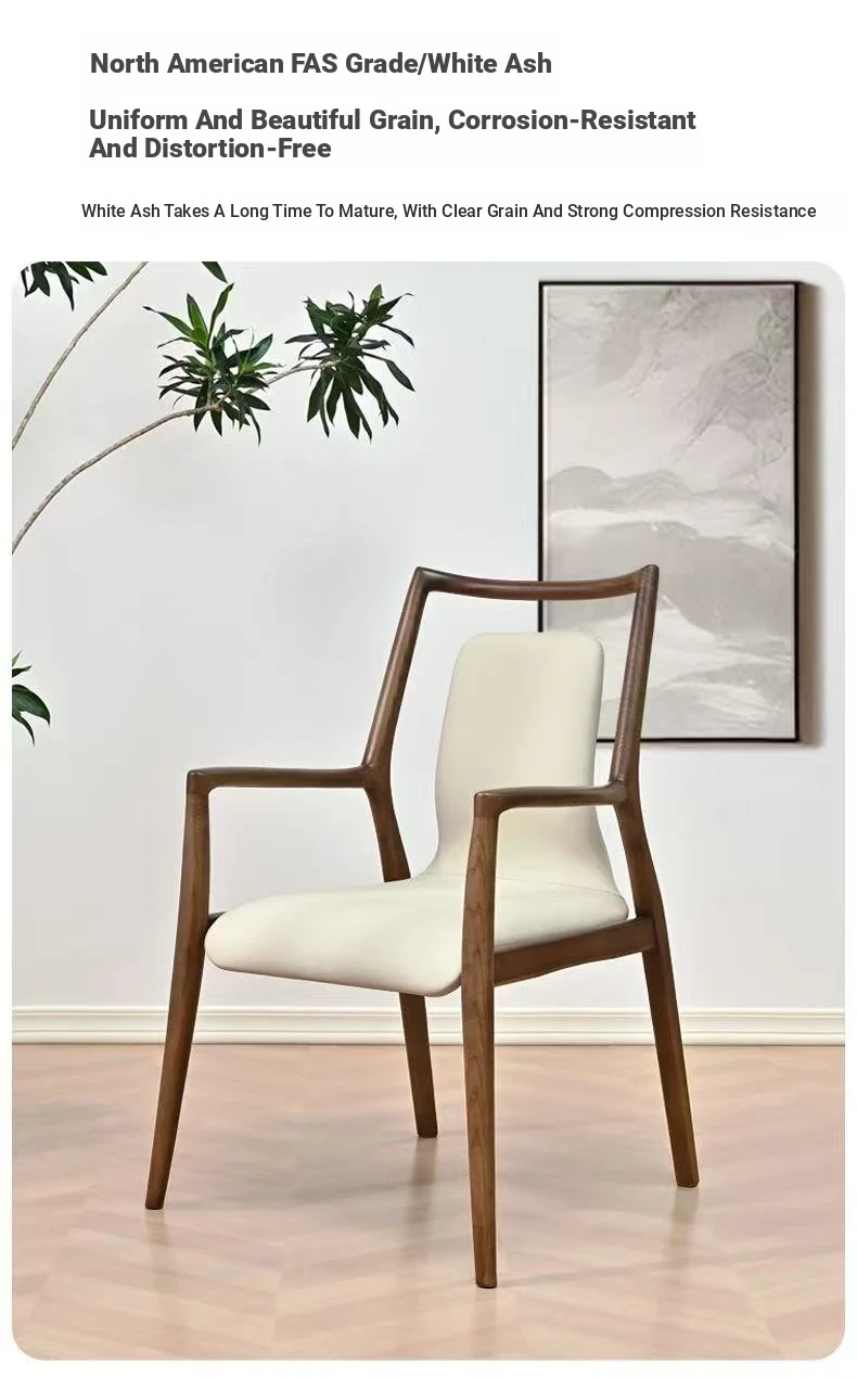 Nordic Style Minimalist Dining Chair - Modern Solid Wood Armchair with Soft Backrest in Ash Wood for Home Use - Elegant and Functional Design for Contemporary Interiors
