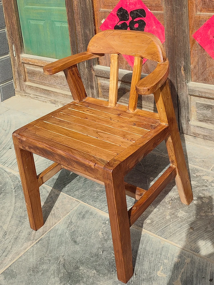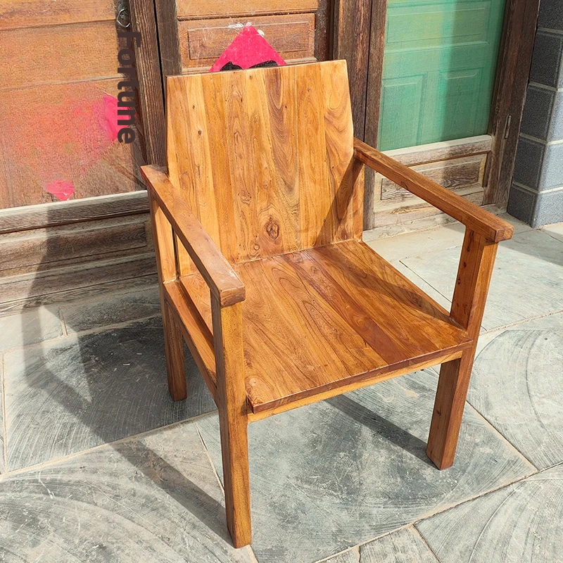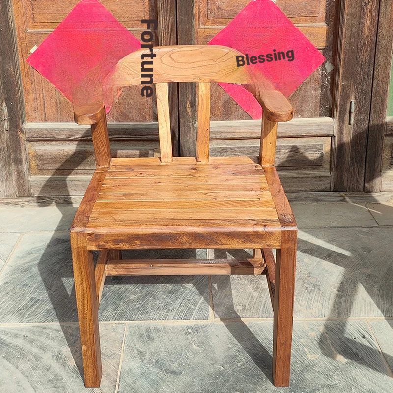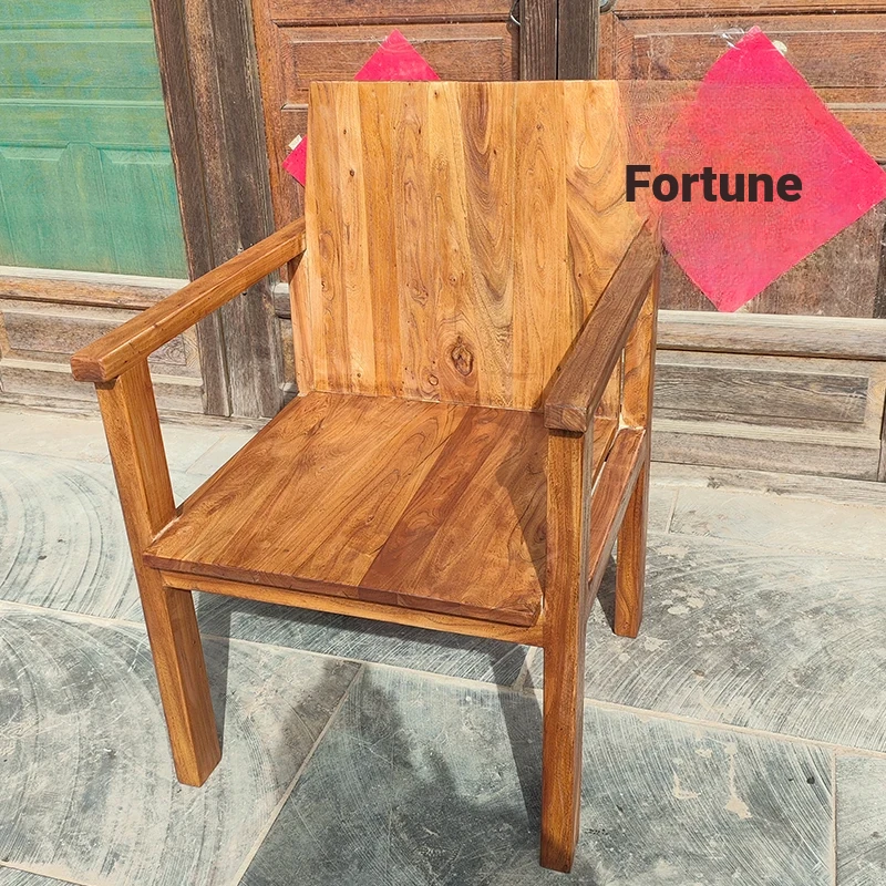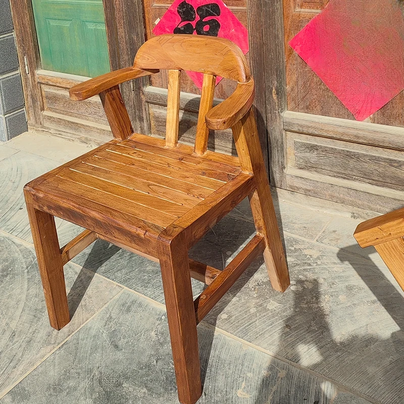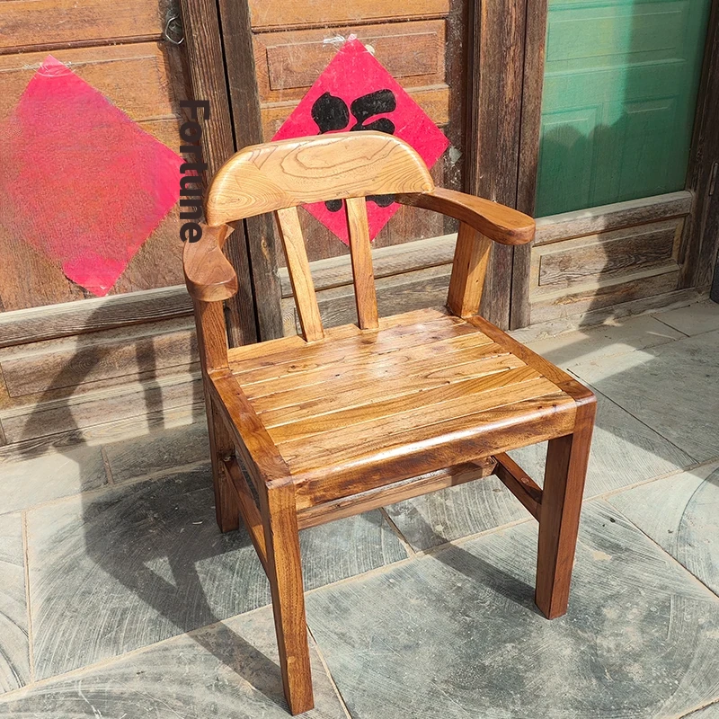 Rustic Elm Wood Dining Chair and Tea Table Set - Modern Minimalist Design for Small Spaces, Comfortable Backrest Office Chair, Solid Wood Construction
