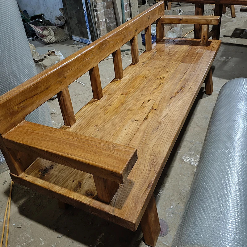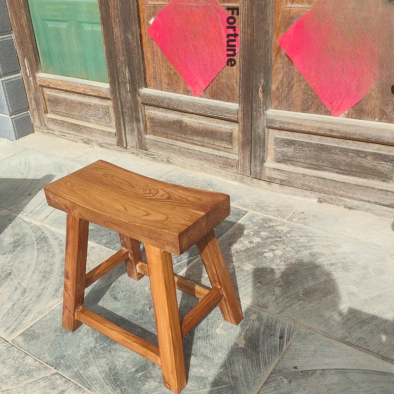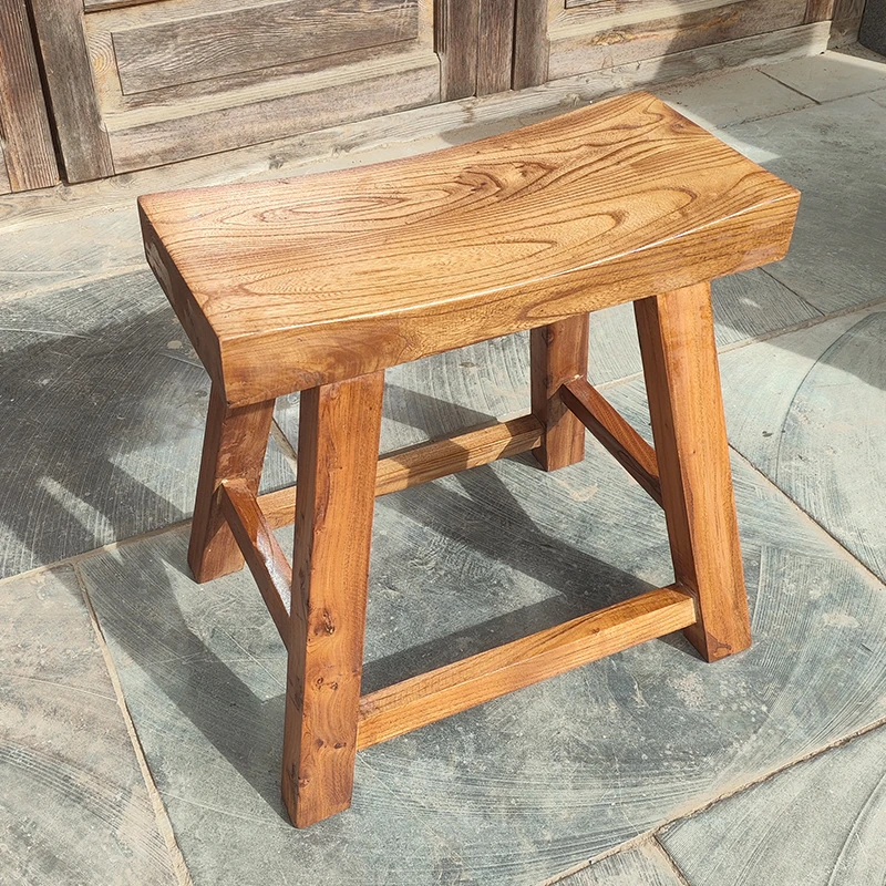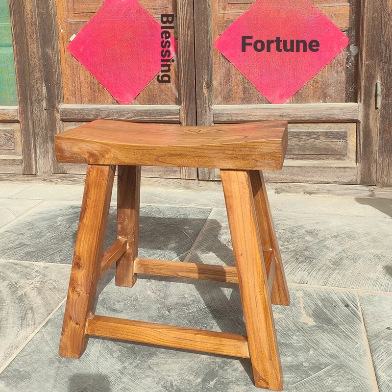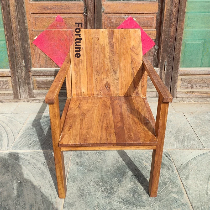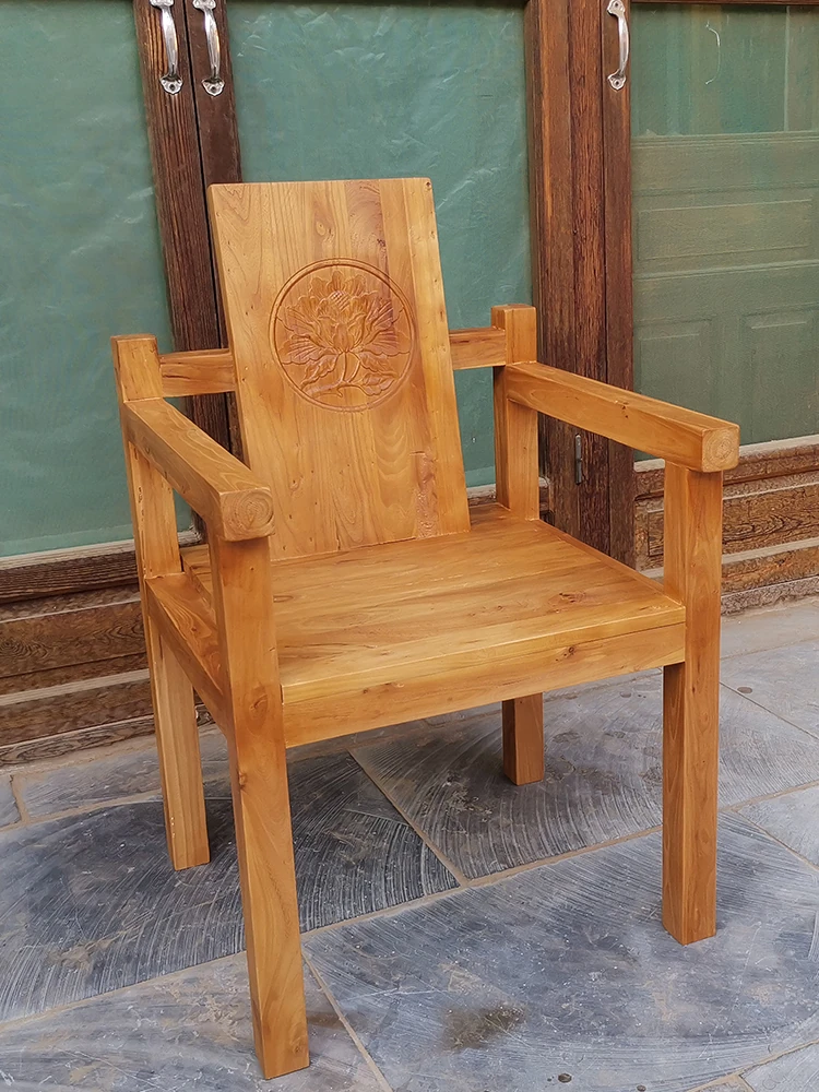 Rustic Elm Wood Dining Chair and Tea Table Set - Modern Minimalist Design for Small Spaces, Comfortable Backrest Office Chair, Solid Wood Construction