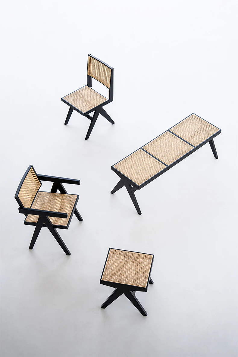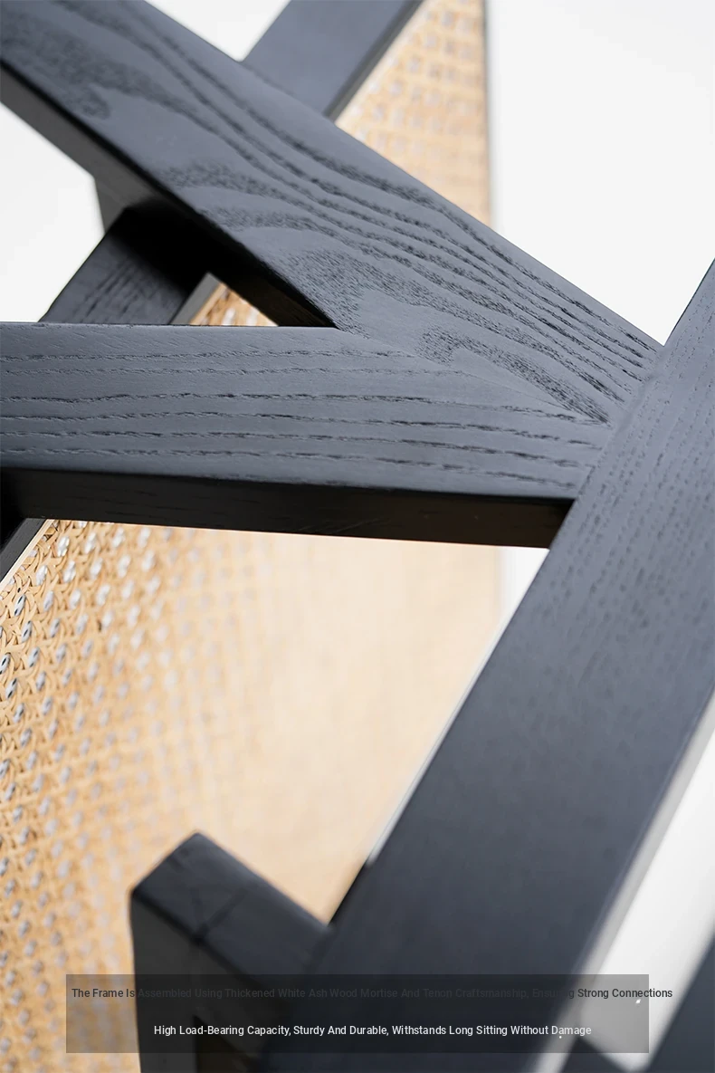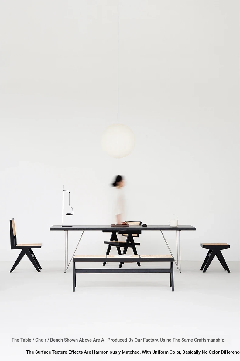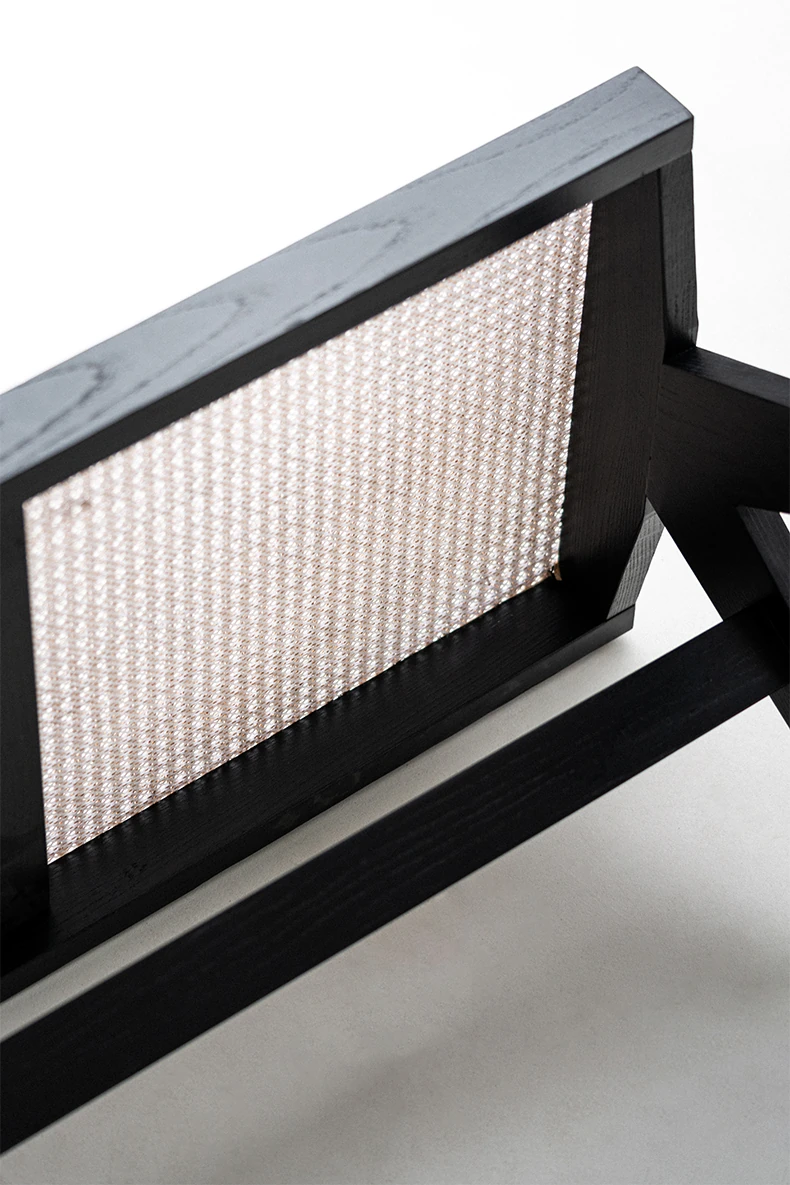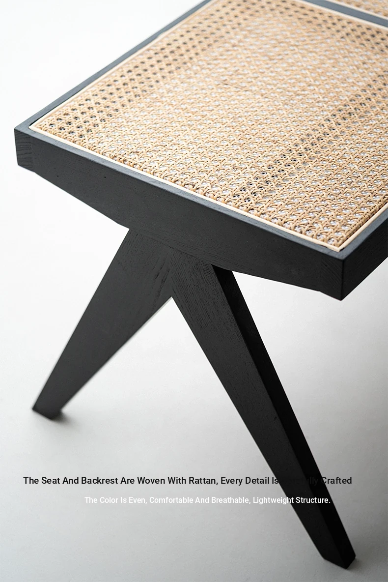 Sanjii Chandigarh Chair - Authentic Ash Wood and Rattan Backrest Dining Chair, Wabi-Sabi Style, Black Woven Long Bench for Home Use