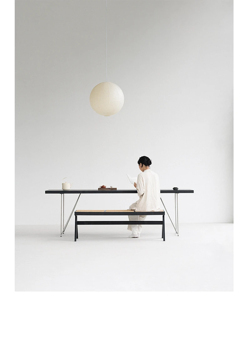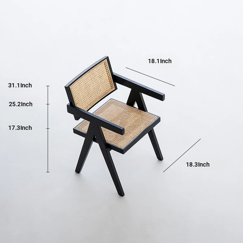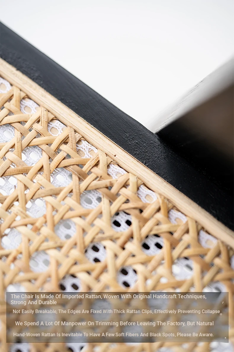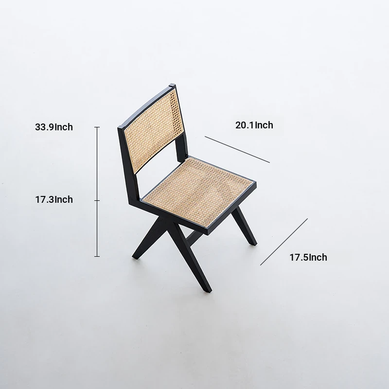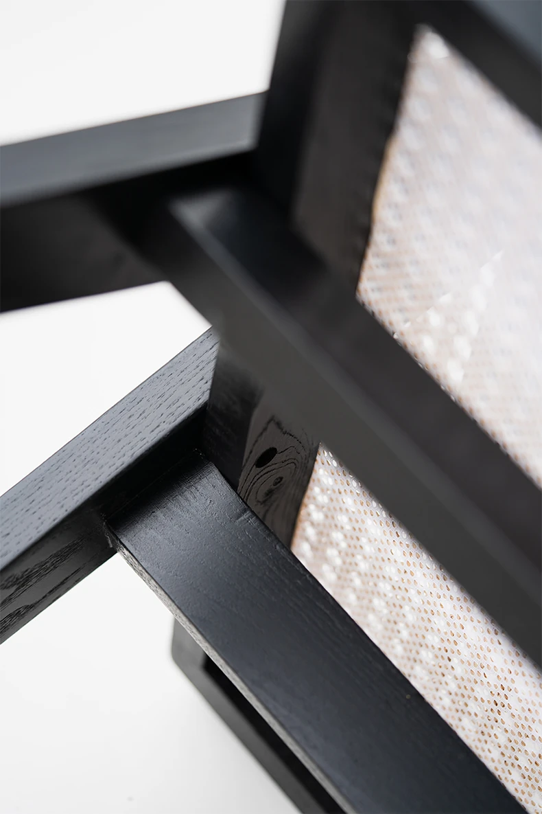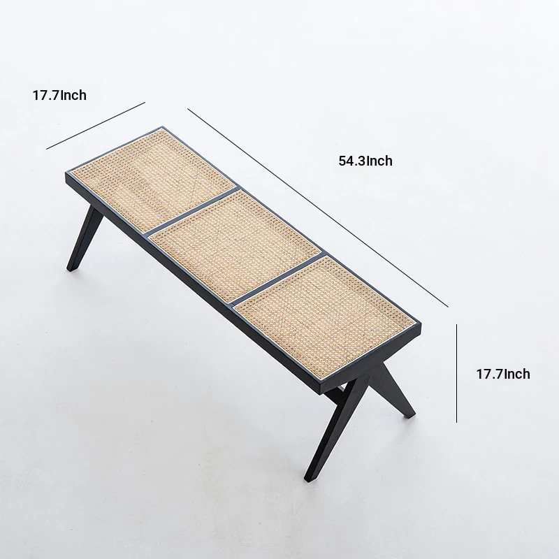 Sanjii Chandigarh Chair - Authentic Ash Wood and Rattan Backrest Dining Chair, Wabi-Sabi Style, Black Woven Long Bench for Home Use