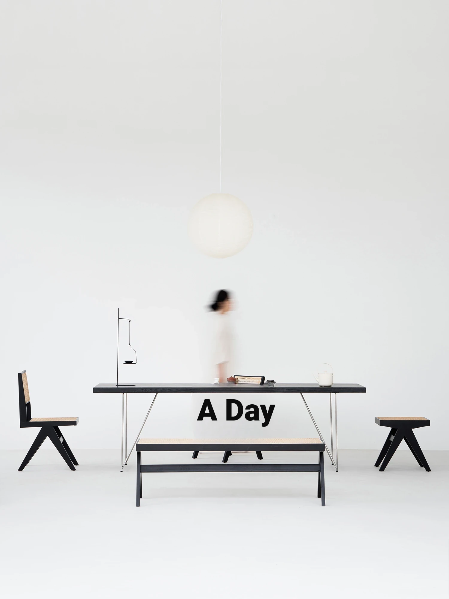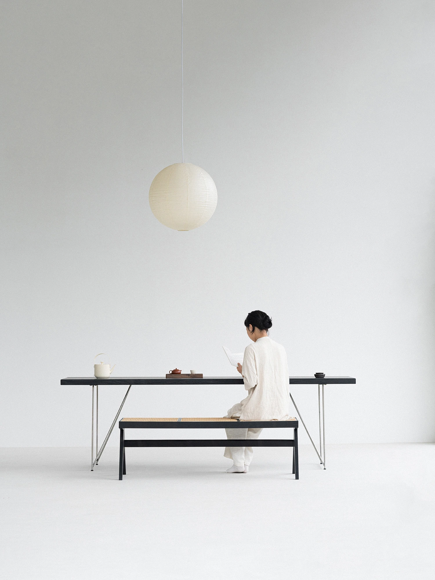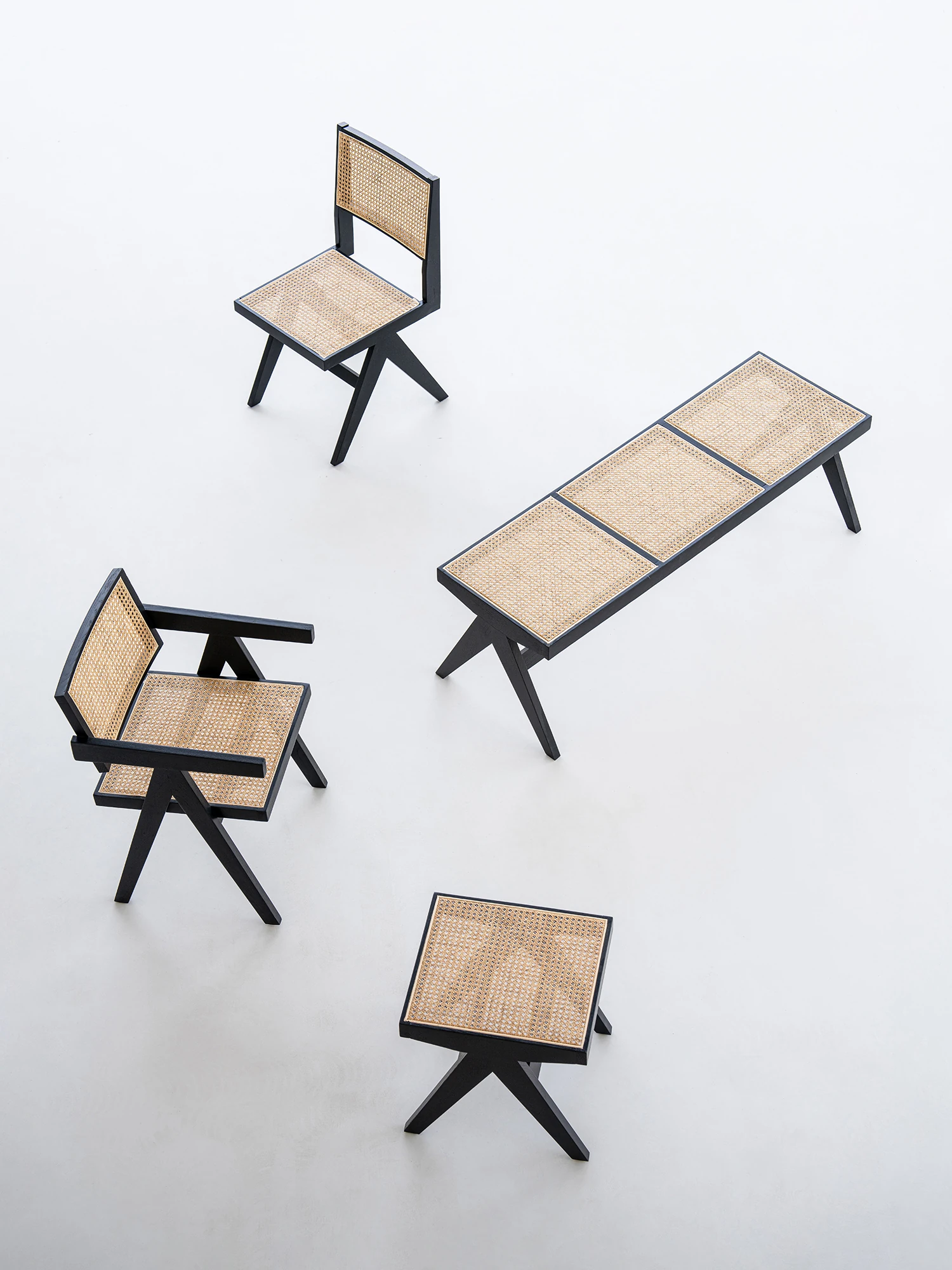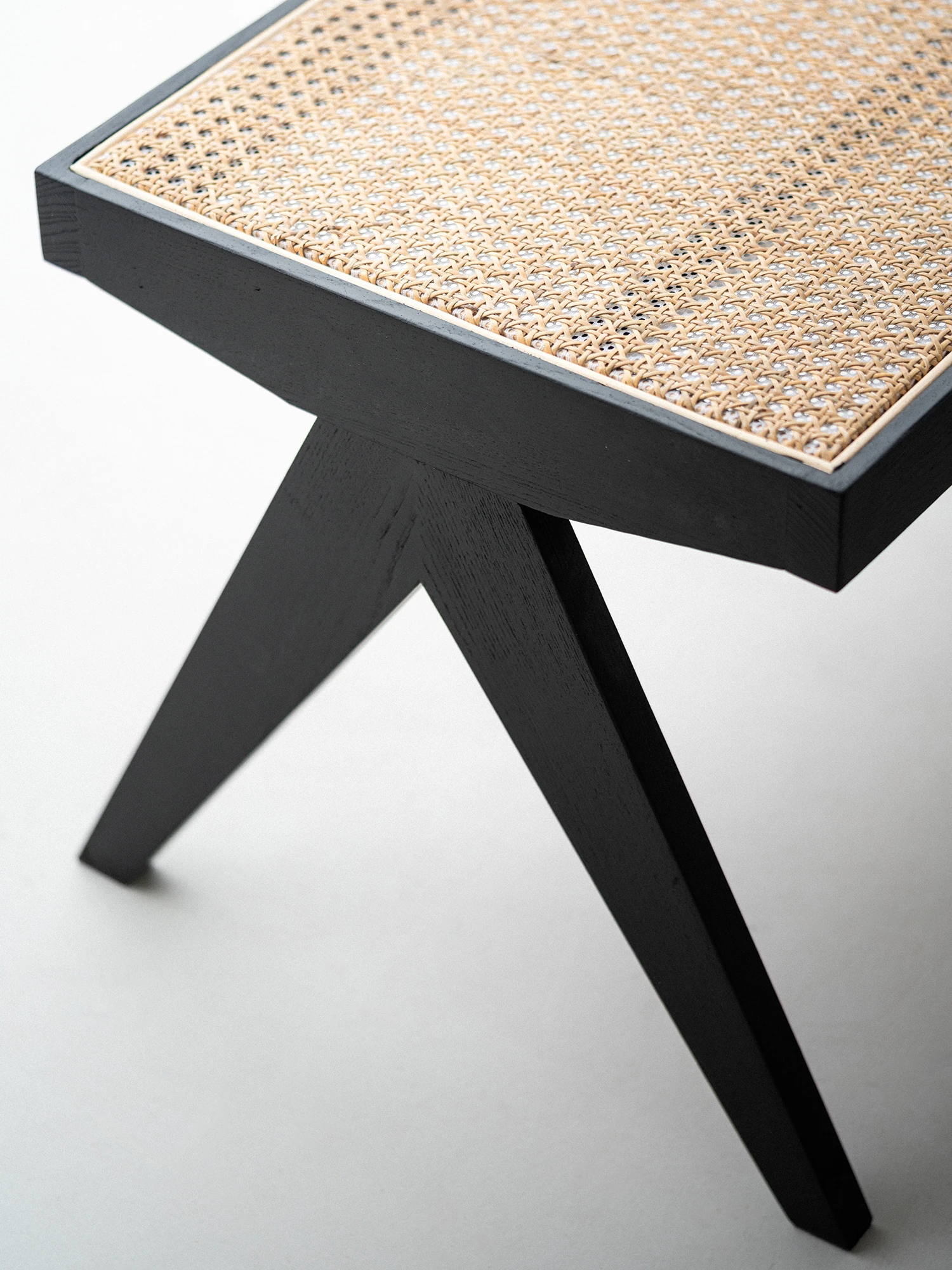 Sanjii Chandigarh Chair - Authentic Ash Wood and Rattan Backrest Dining Chair, Wabi-Sabi Style, Black Woven Long Bench for Home Use