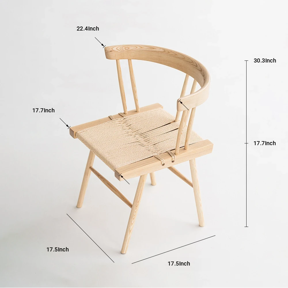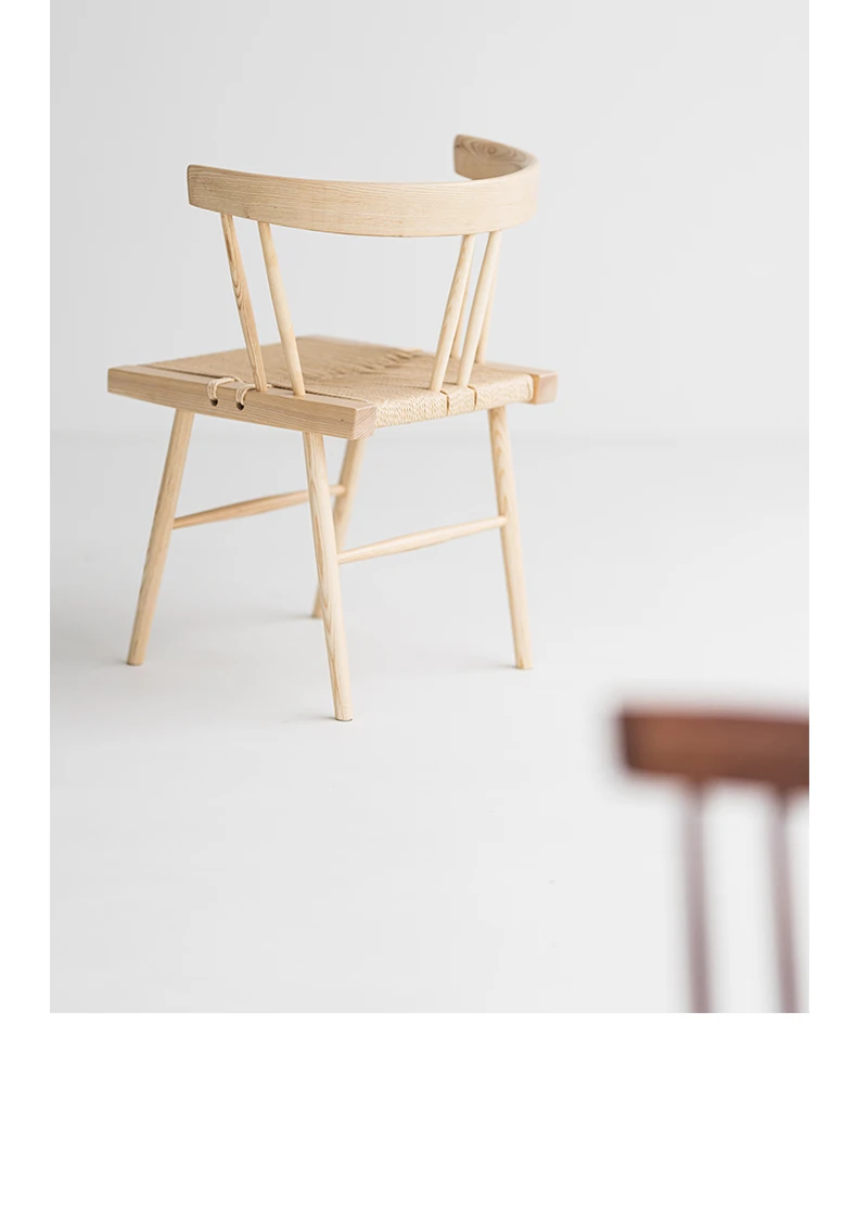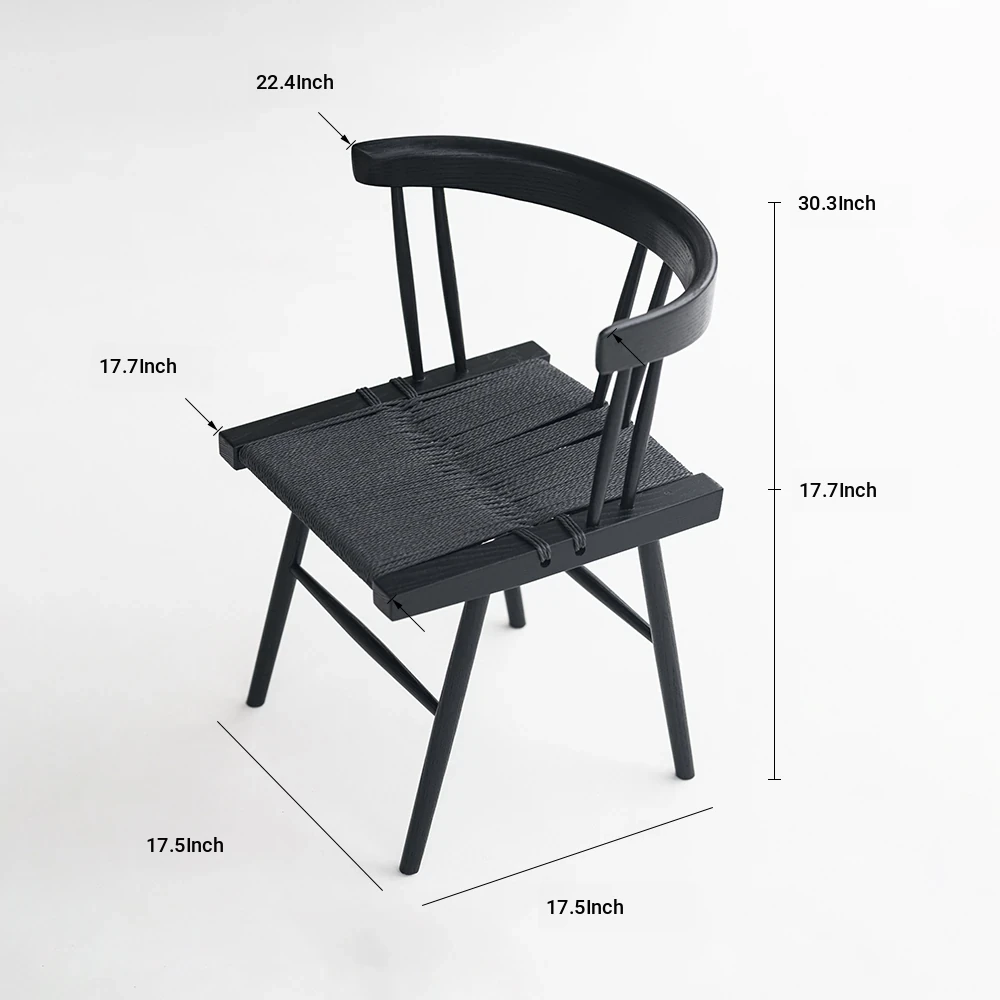 Sanki Nakajima George Grass Chair - Elegant Ash Wood Dining Chair with Black Rope Weaving, Perfect for Home, Study, or Tea Time in Wabi-Sabi Style.