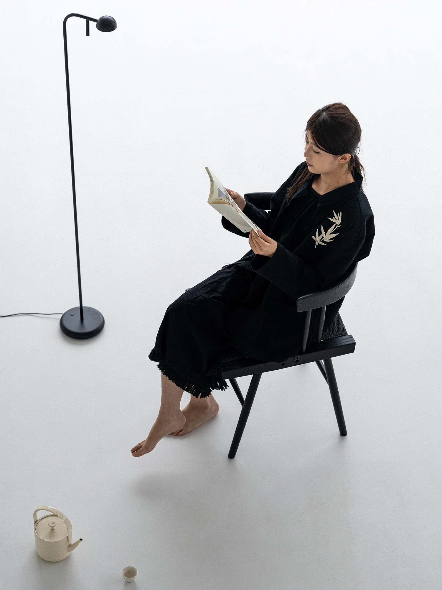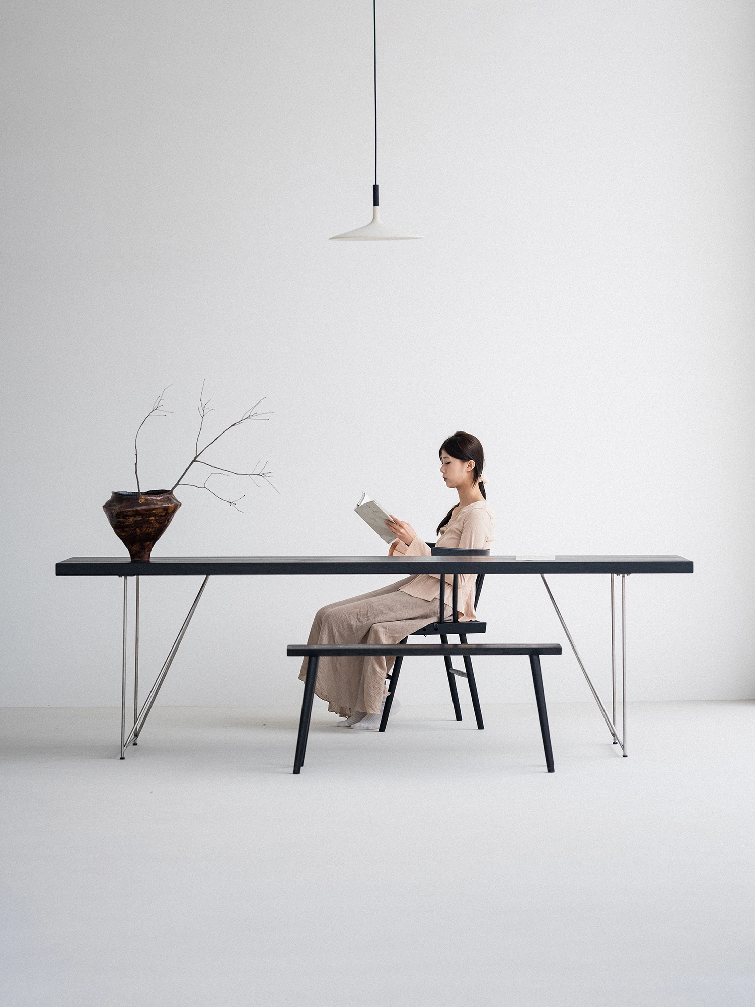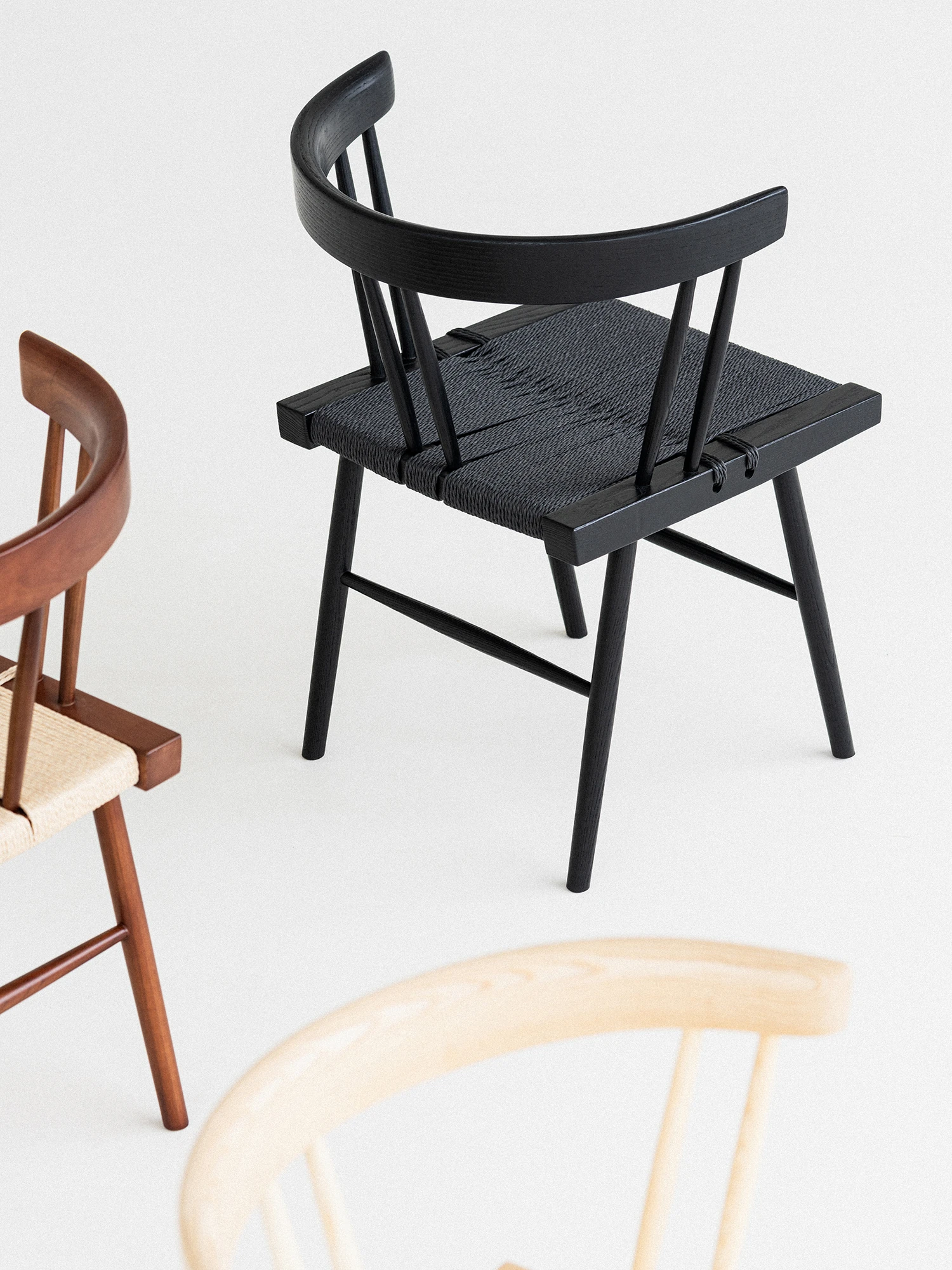 Sanki Nakajima George Grass Chair - Elegant Ash Wood Dining Chair with Black Rope Weaving, Perfect for Home, Study, or Tea Time in Wabi-Sabi Style.