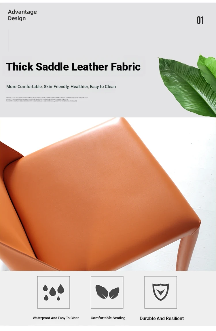 Scandinavian Soft Upholstered Dining Chair with Backrest - Modern Minimalist Saddle Leather Chair for Office Reception and Home Use, Perfect for Commercial Dining Spaces