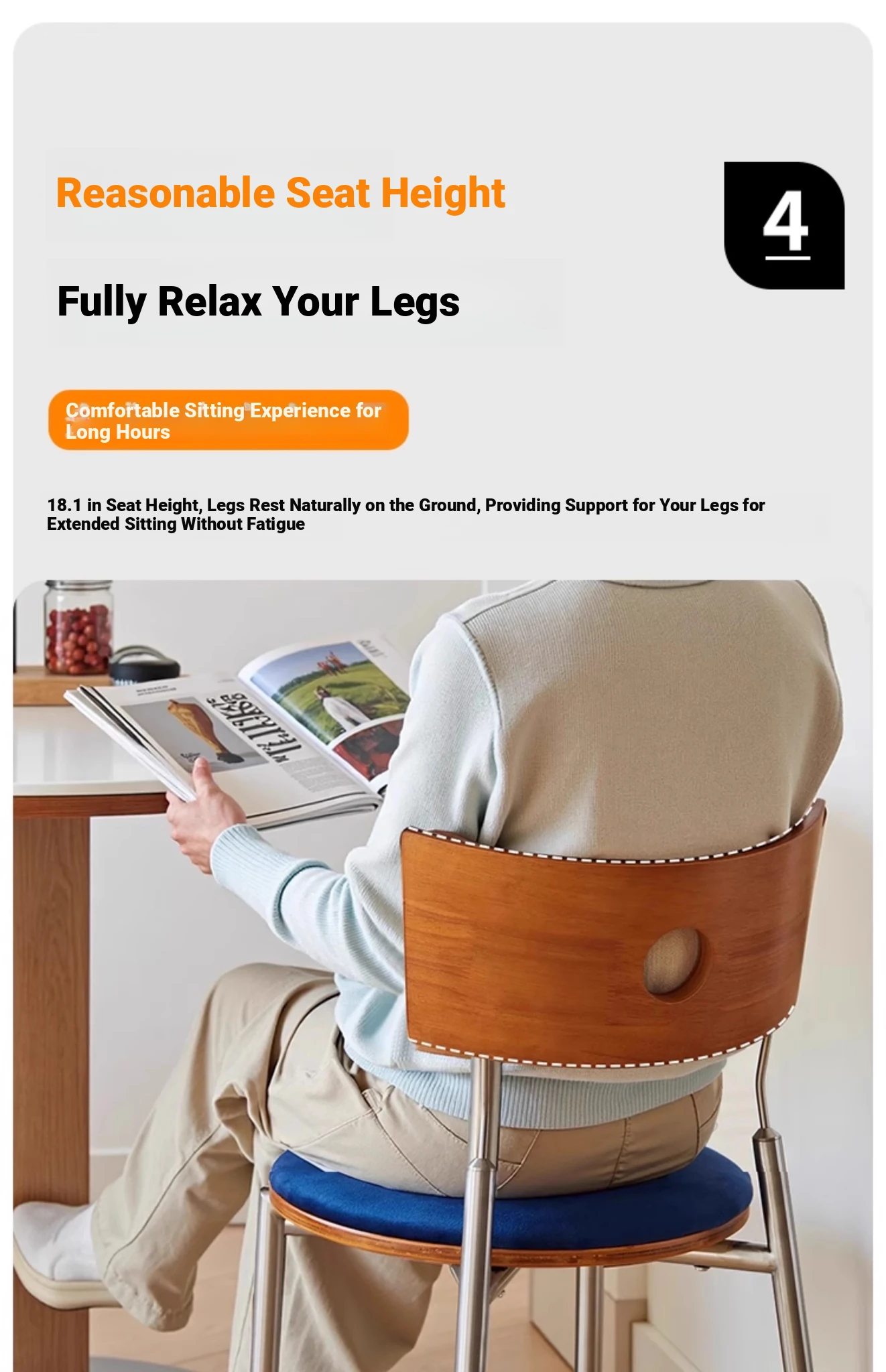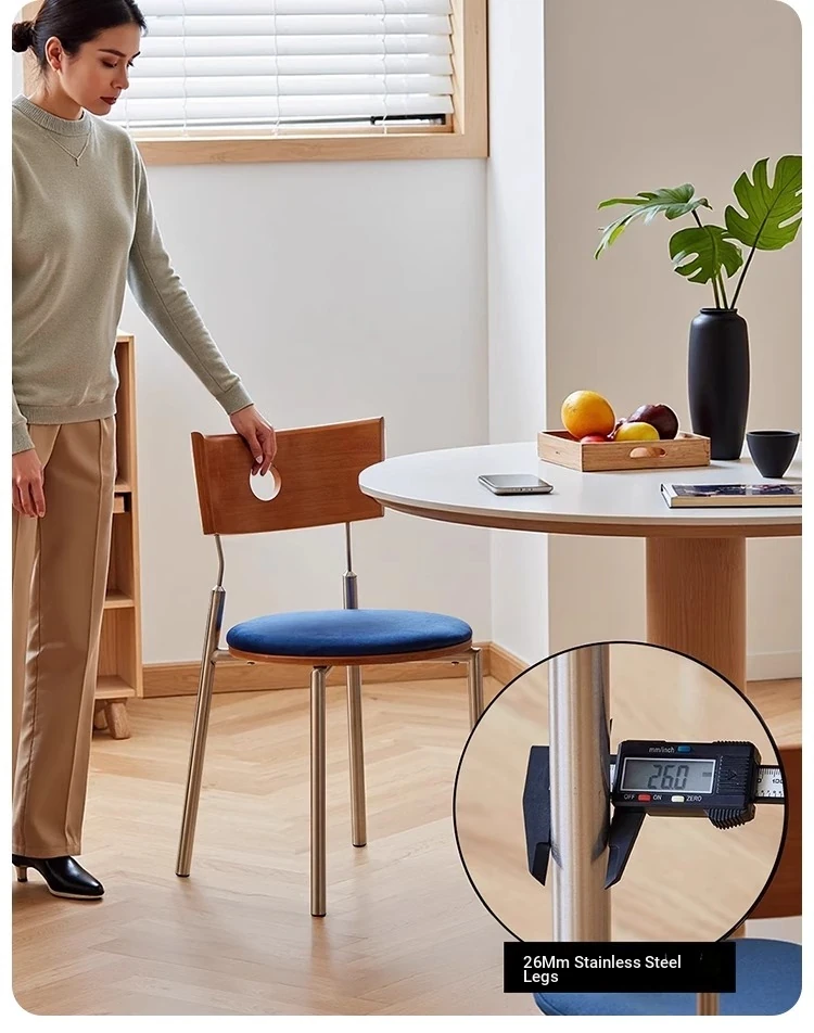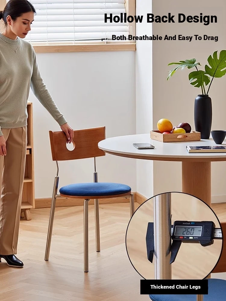 Solid Wood and Stainless Steel Beg Chair - Vintage Bauhaus Designer Dining Chair with Backrest for Home Use - Stylish and Durable Retro Seat