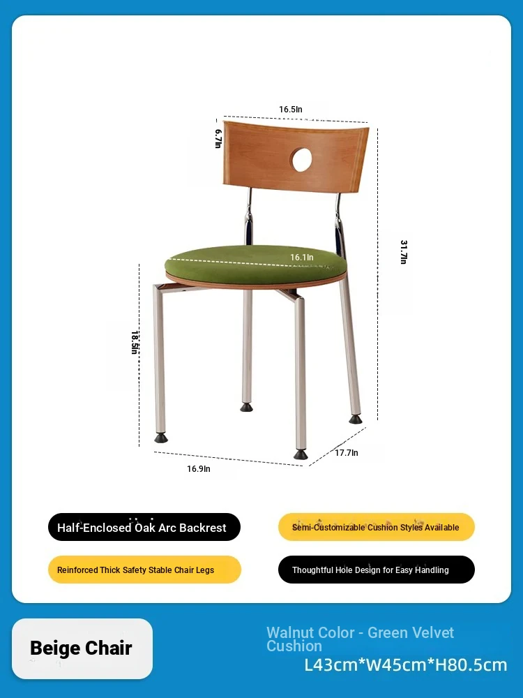 Walnut color backrest + green velvet cushion([Electroplating]])