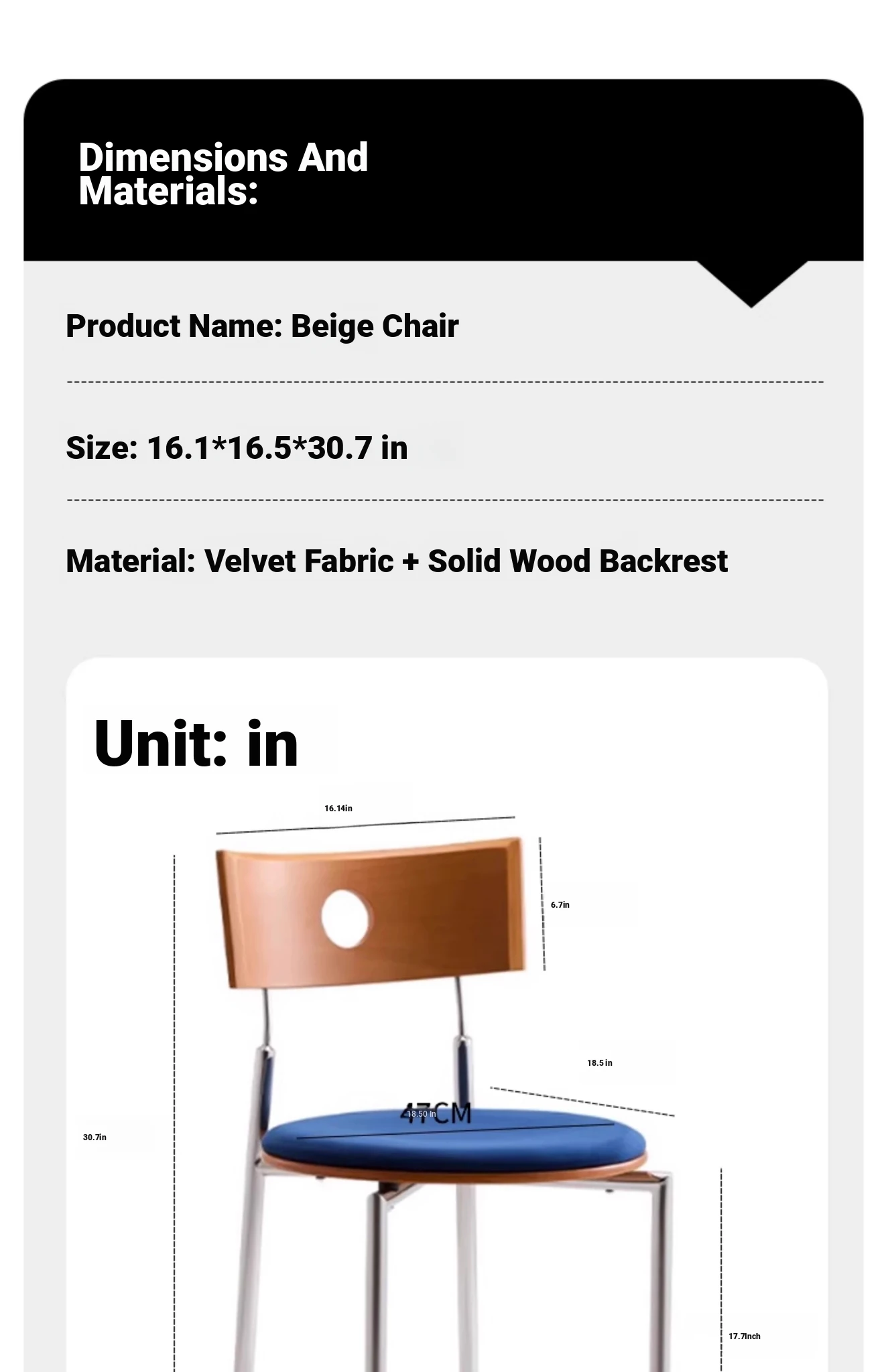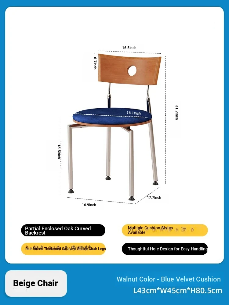 Walnut color backrest + blue velvet cushion([Electroplating]])