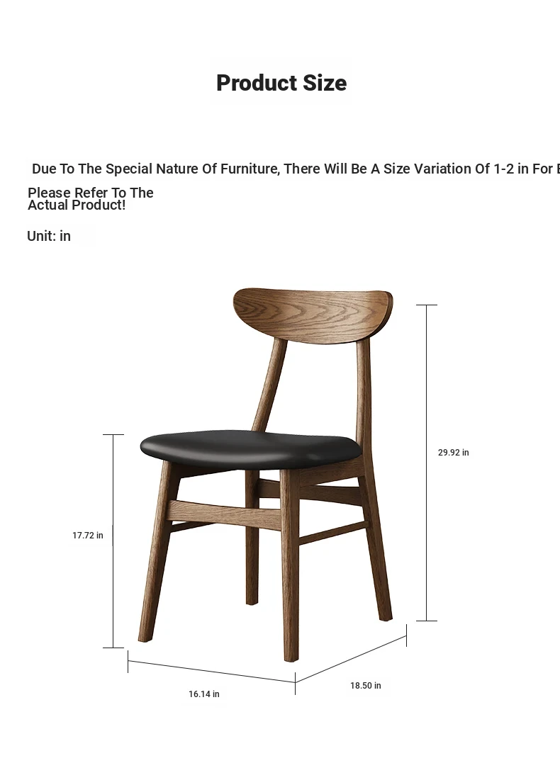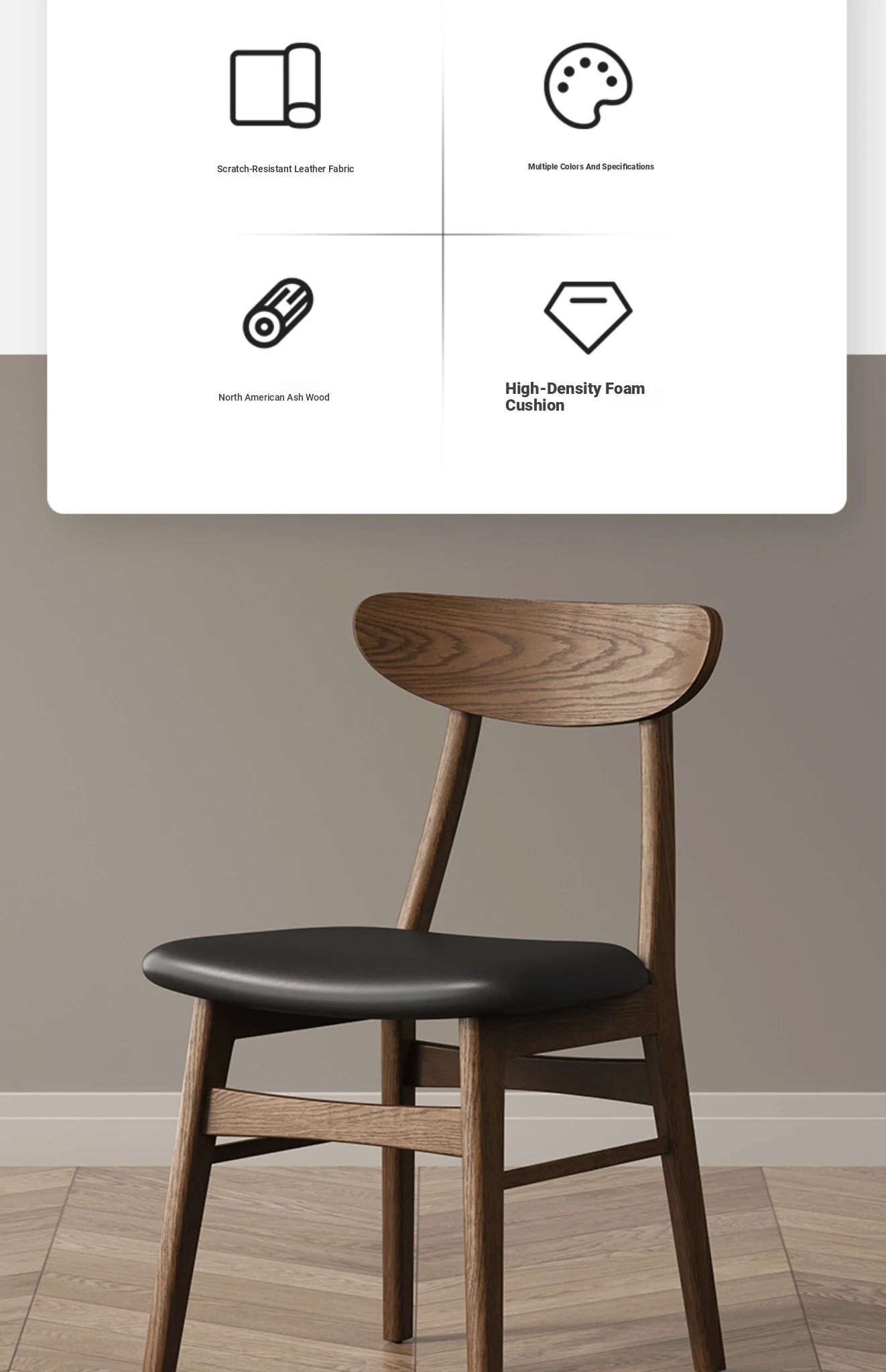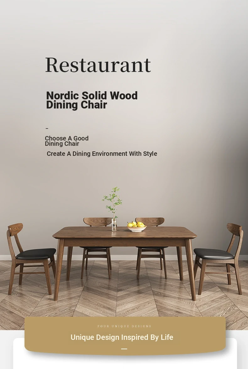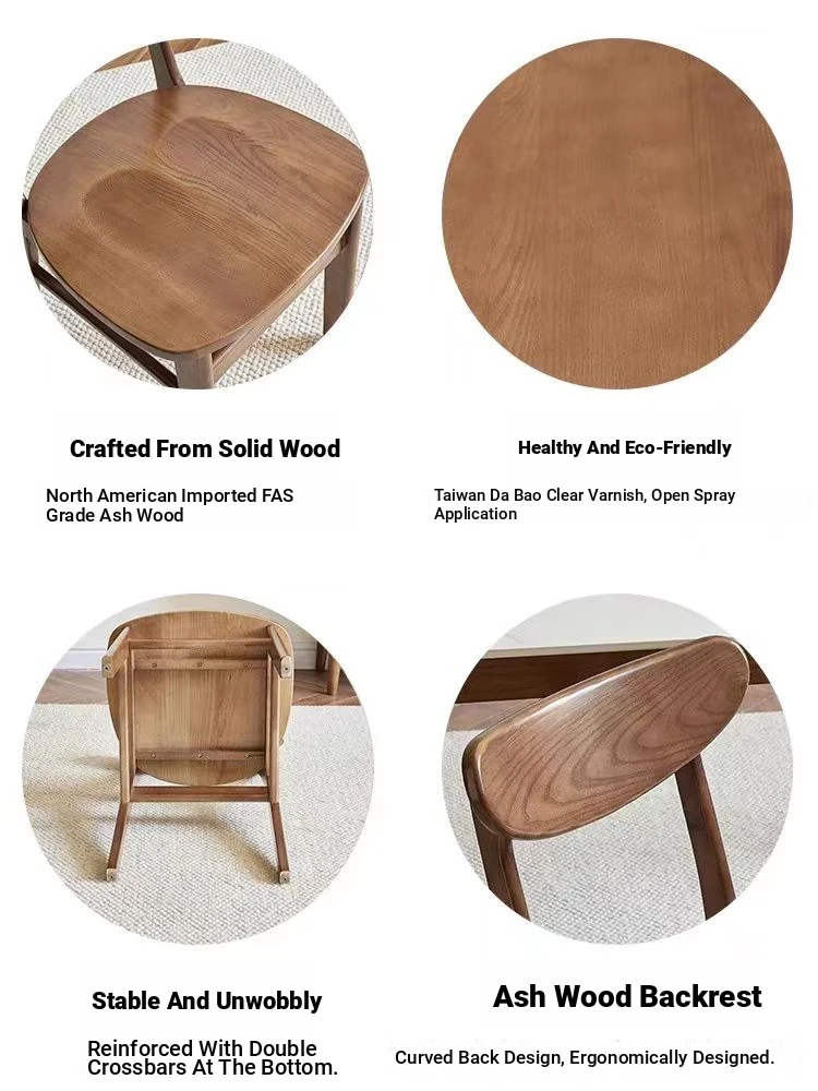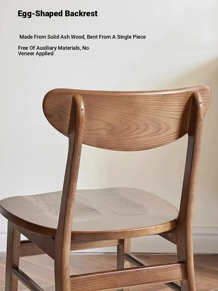 Solid Wood Dining Chair - Nordic Modern Minimalist Design, Ash Wood for Home Use, Perfect for Dining Rooms, Cafés, and Comfortable Snack Seating with Walnut Backrest.