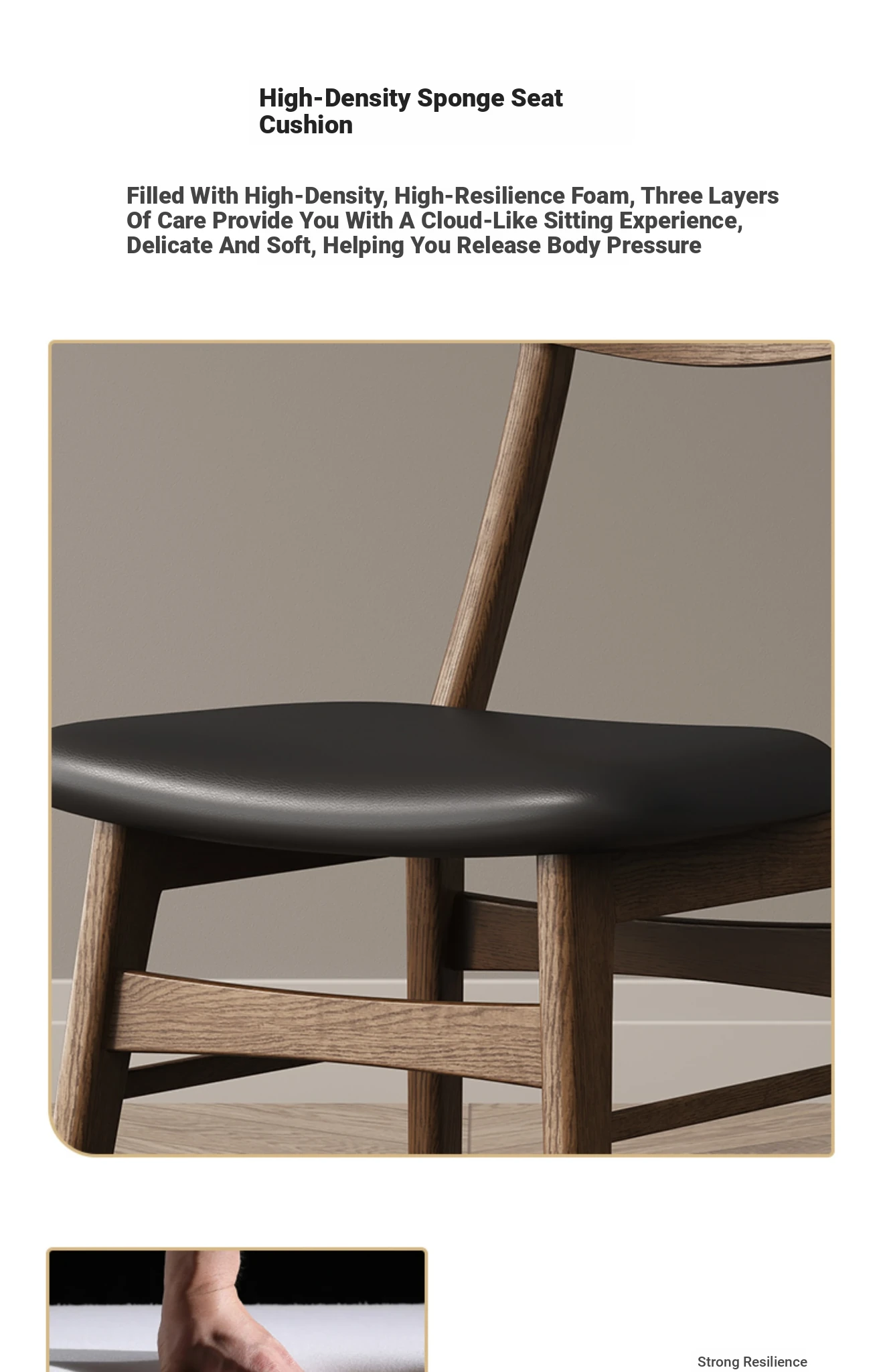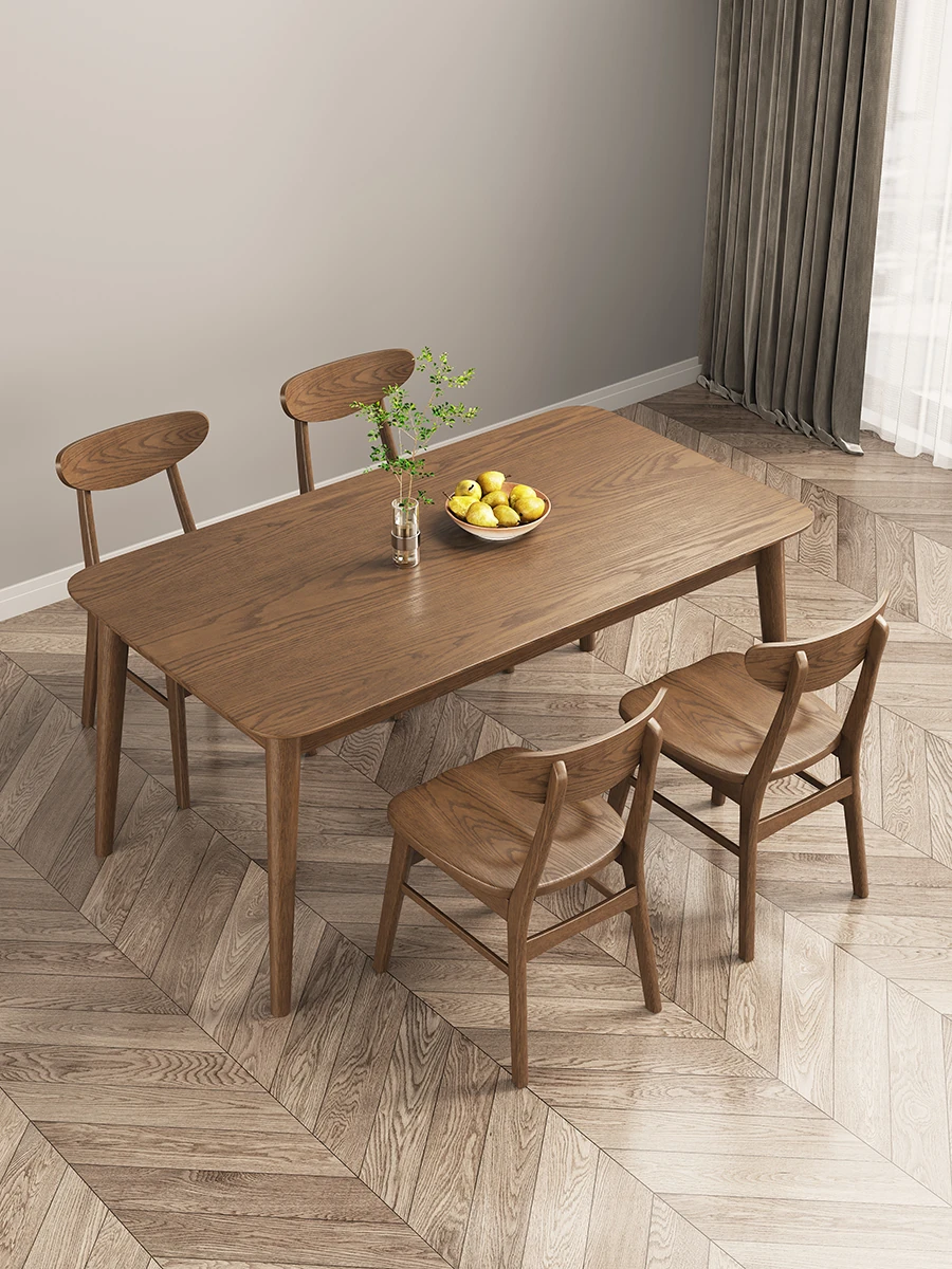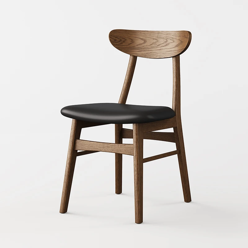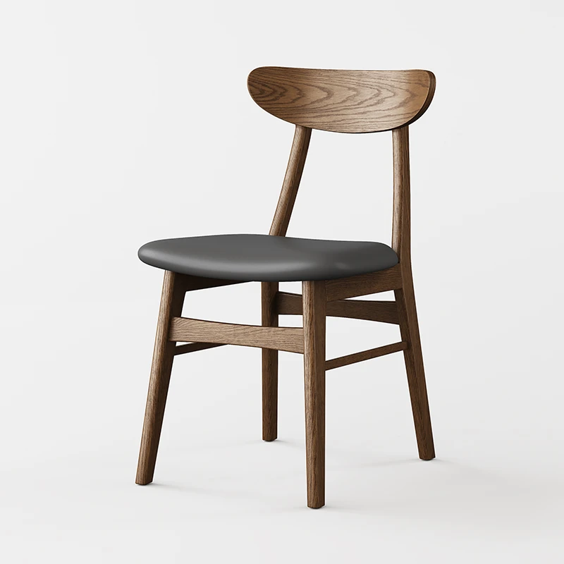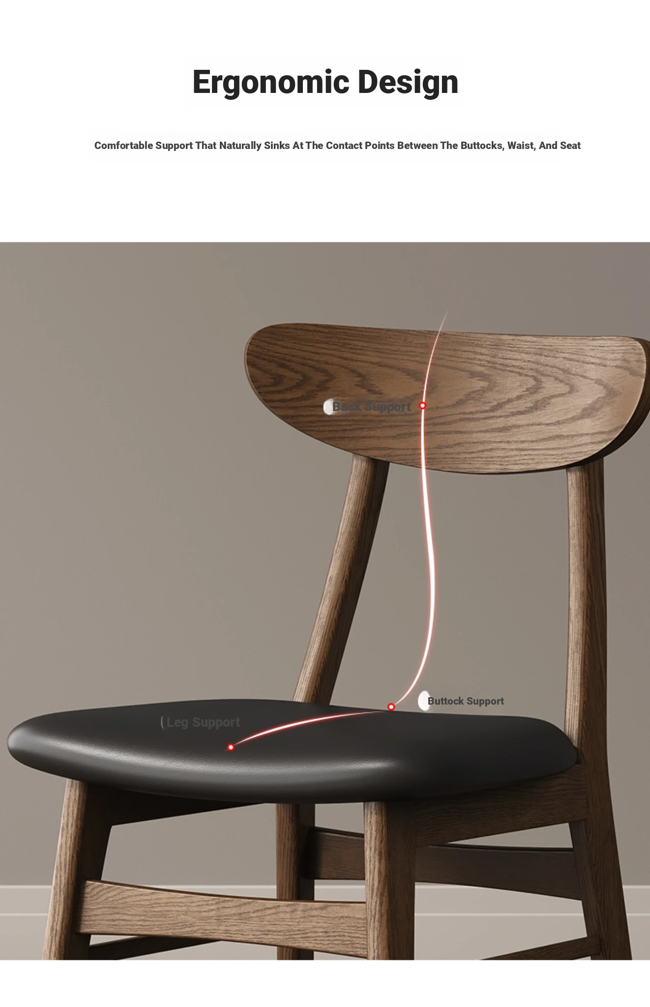 Solid Wood Dining Chair - Nordic Modern Minimalist Design, Ash Wood for Home Use, Perfect for Dining Rooms, Cafés, and Comfortable Snack Seating with Walnut Backrest.