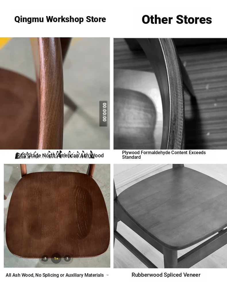 [Pure Ash] Walnut color chair frame + pure solid wood seat plate