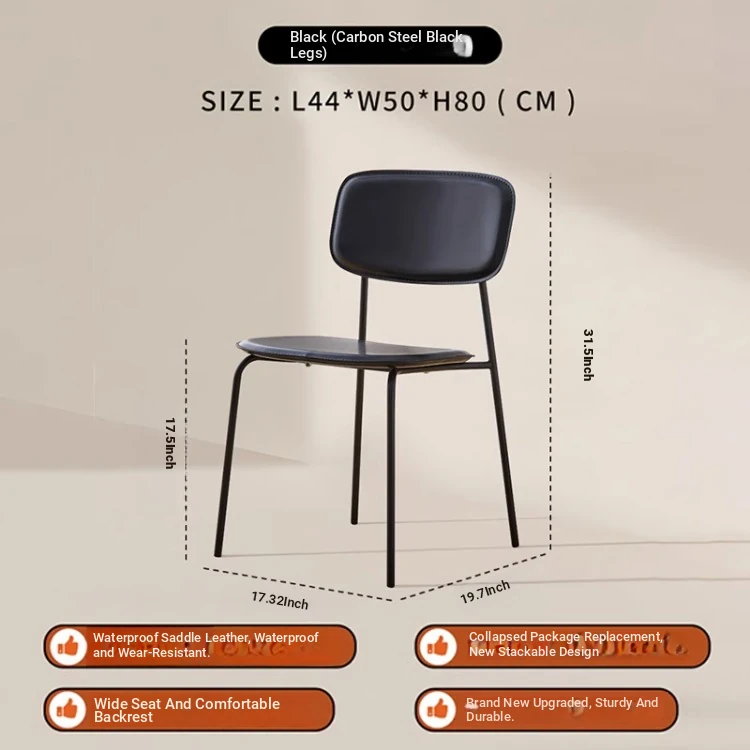 Stylish Minimalist Stackable Dining Chair - Luxurious Black Designer Chair with Backrest for Home Use, Perfect for Modern Dining Spaces