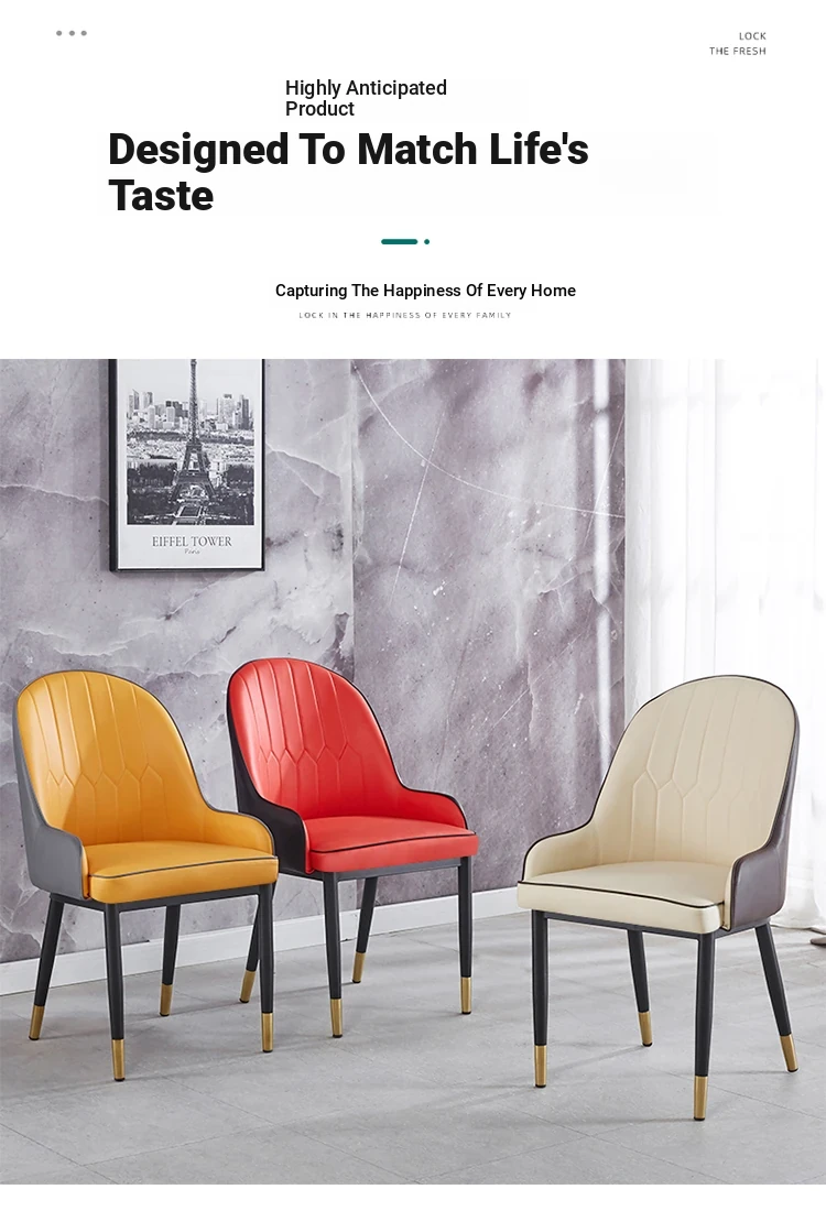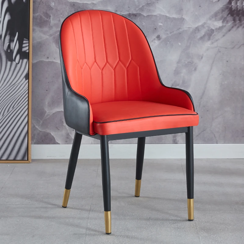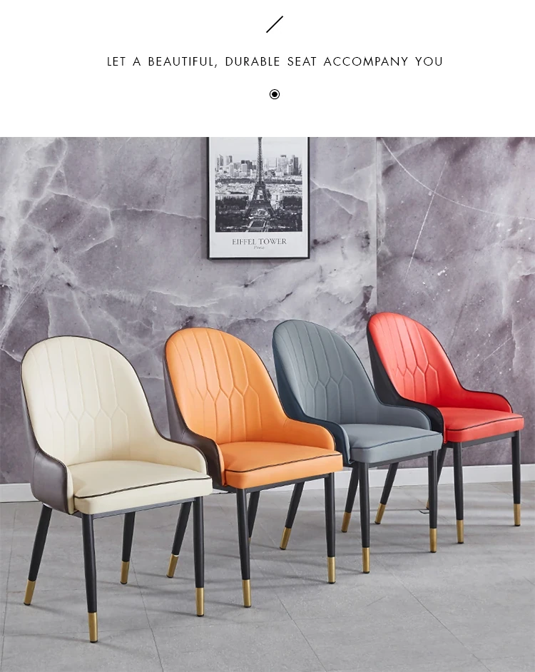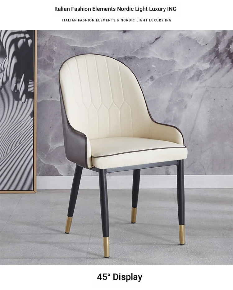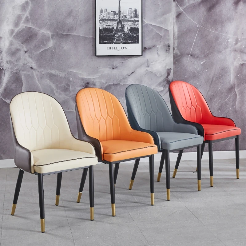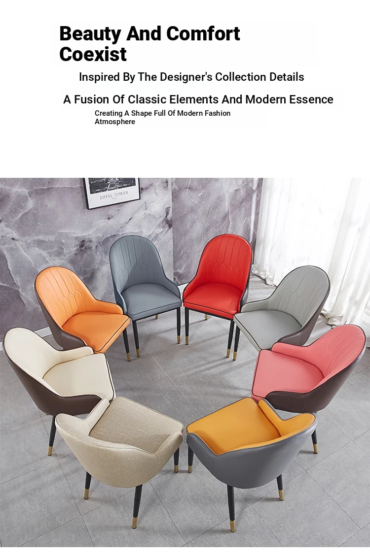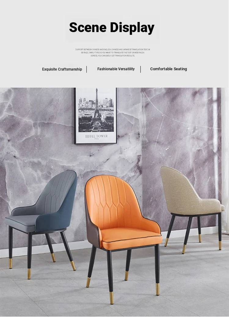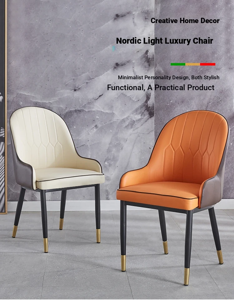 Stylish Nordic Leather Dining Chair - High-End Soft Upholstered Iron Frame, Perfect for Hotels and Restaurants, Ideal for Casual Meetings and Cozy Dining Spaces