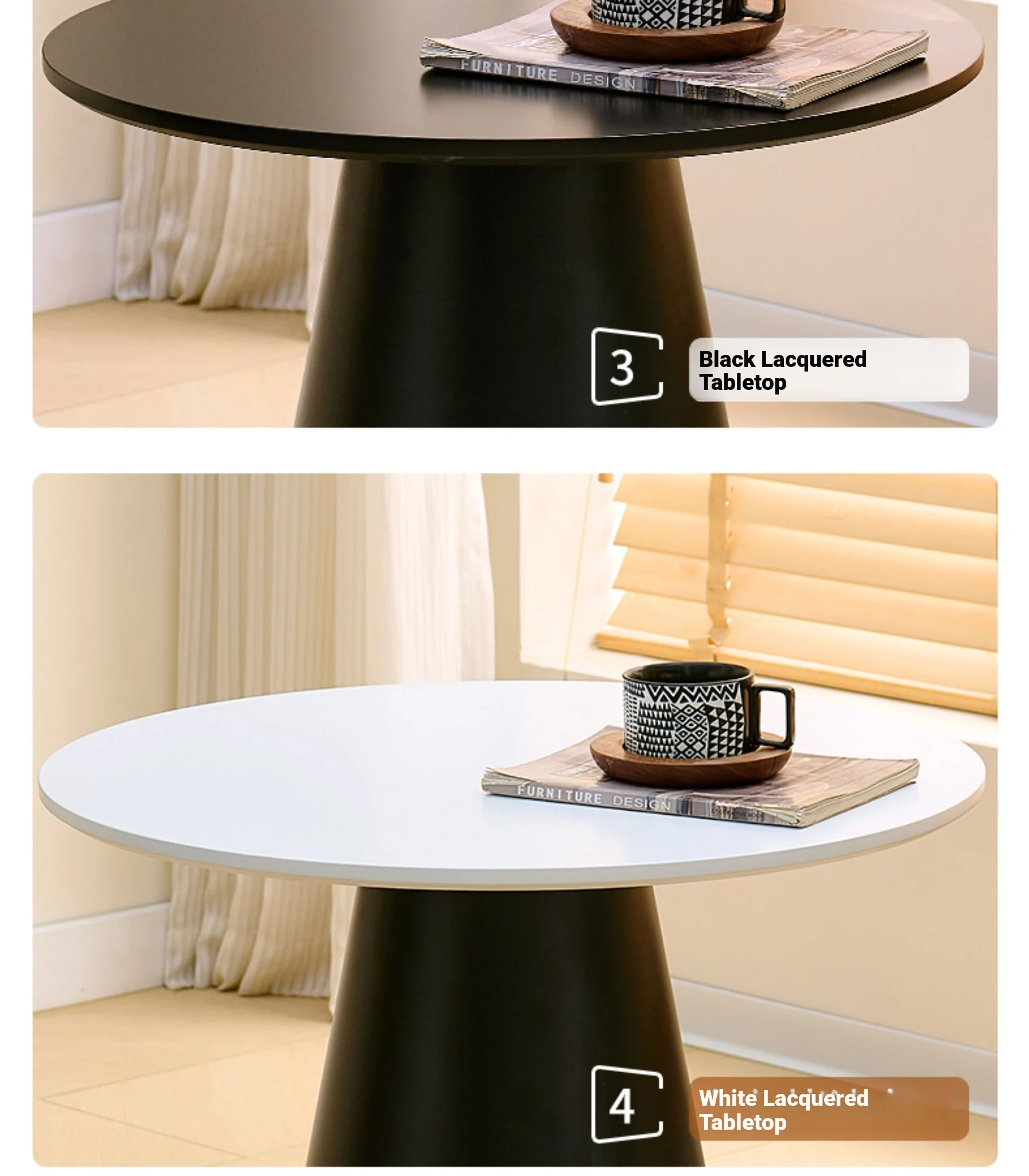 60*57 white baked lacquer surface + black baked lacquer table legs (short)