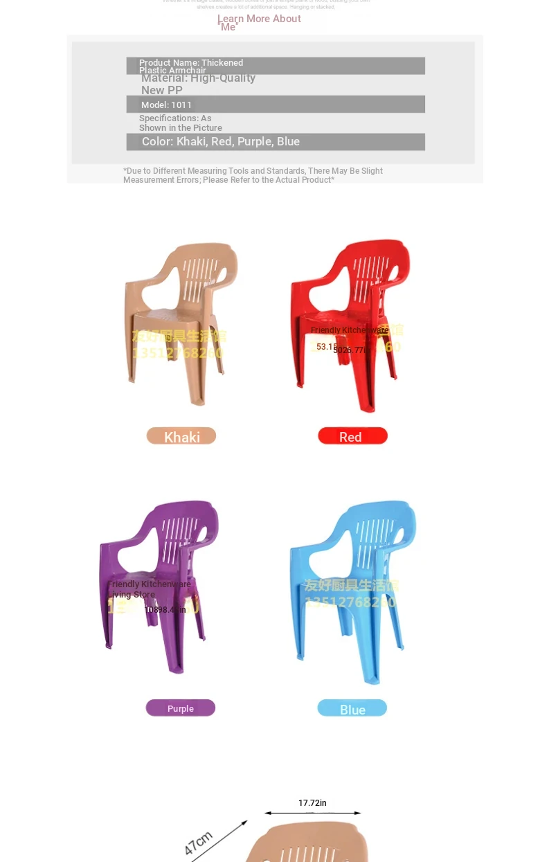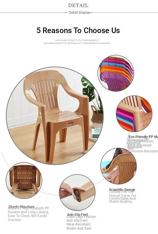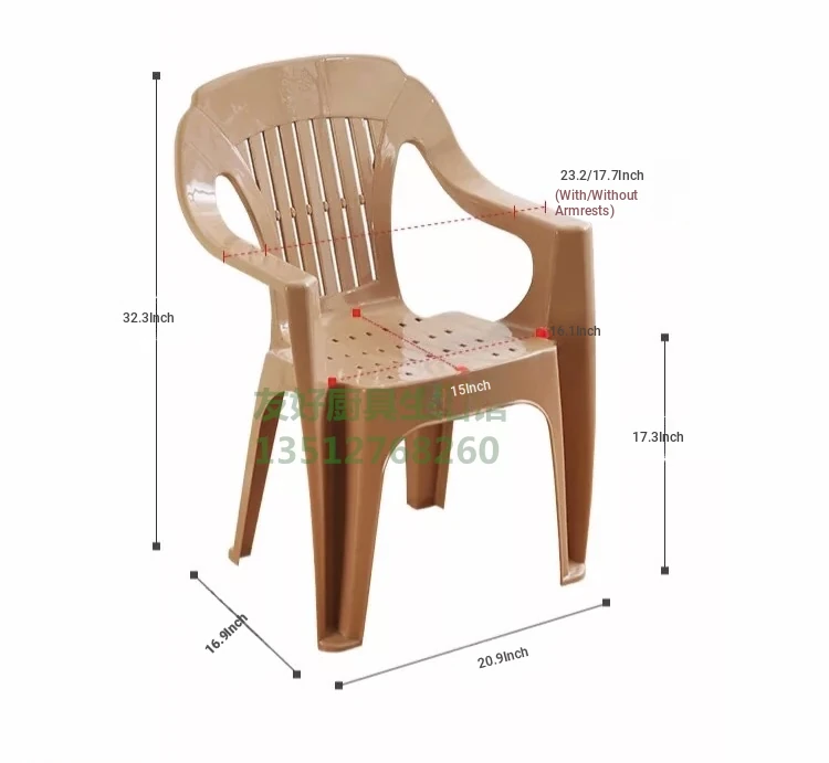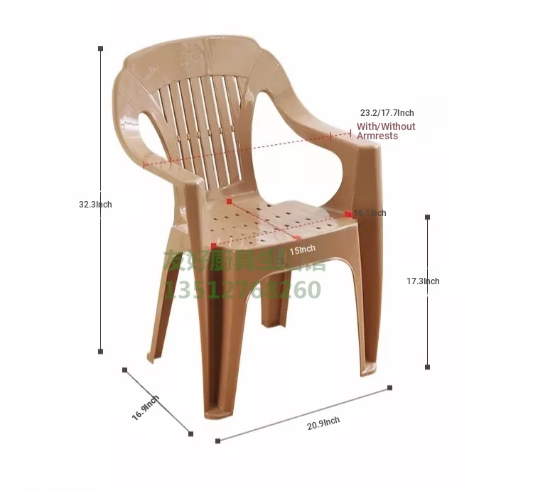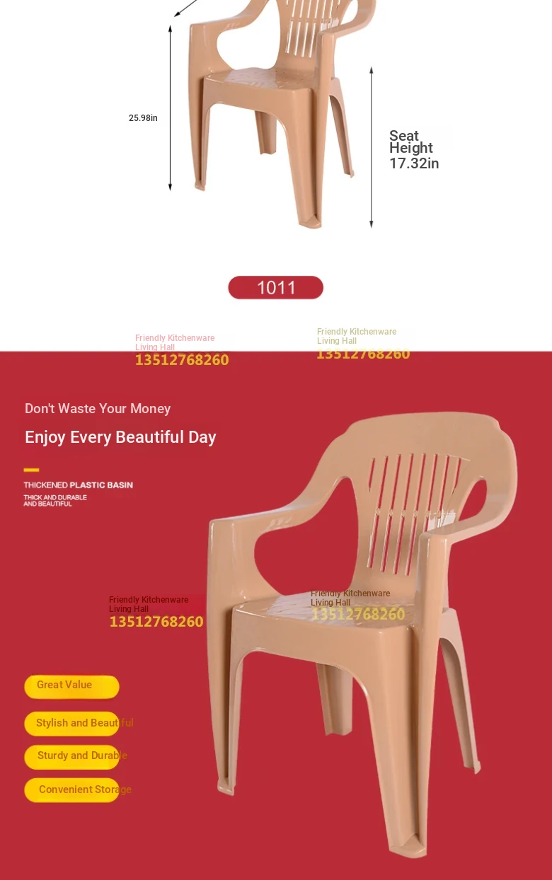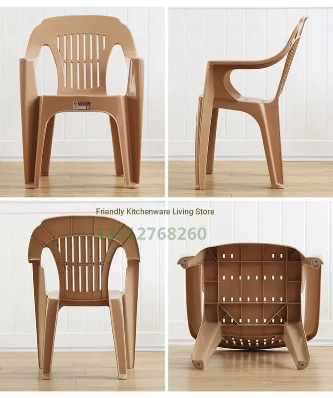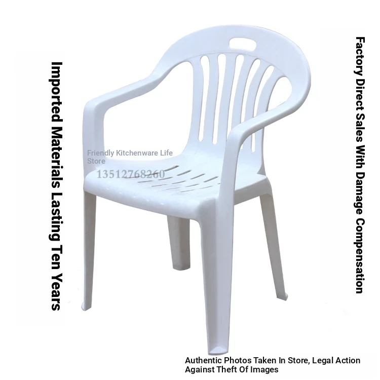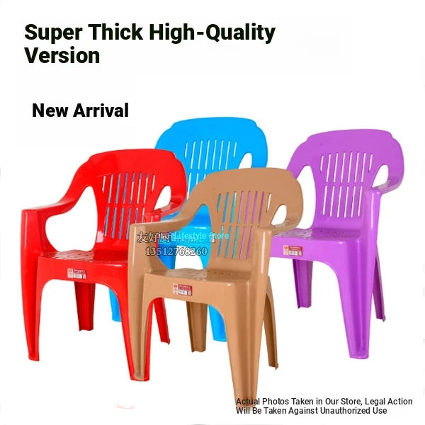 Thickened Plastic Armchair - Outdoor Leisure Dining Set for Adults - Sturdy Beach Chairs with High Back Support