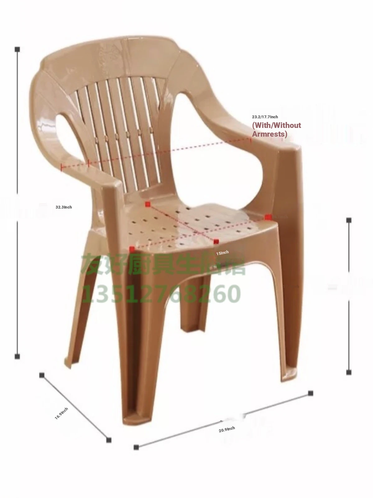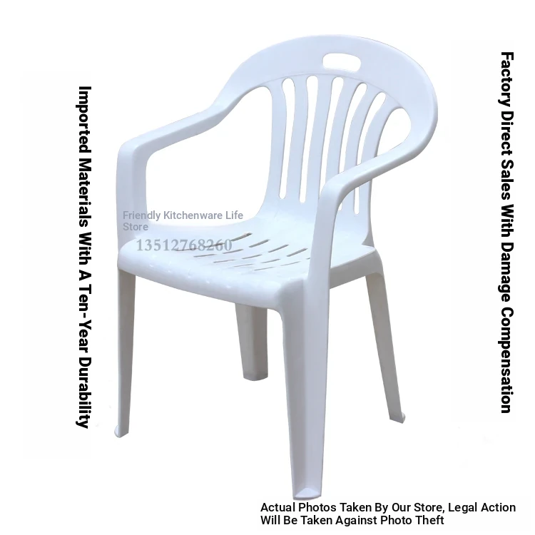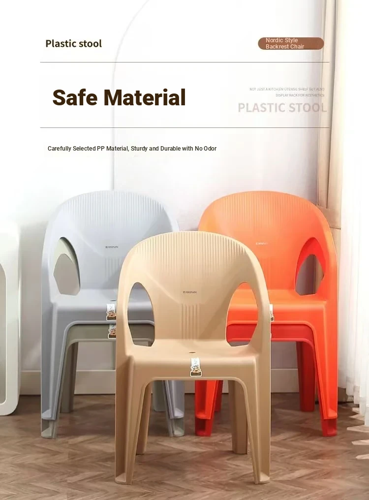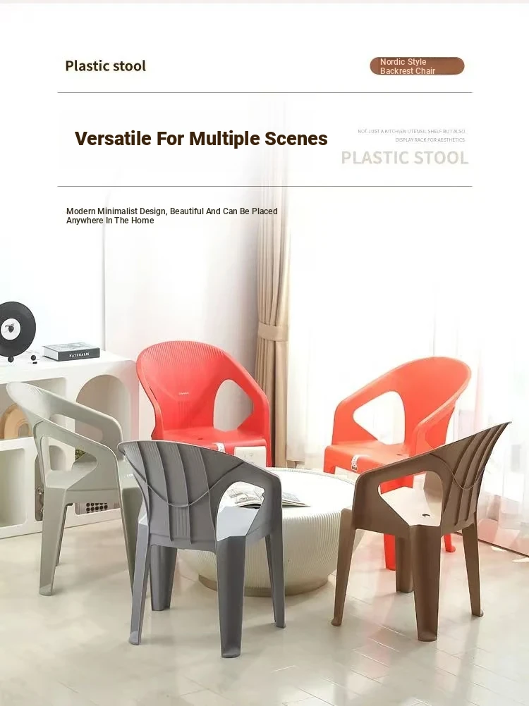 Thickened Plastic Chair with Armrests for Home Use - Stylish Dining, Beach, and Casual Lounge Seat for Adults with Backrest - Perfect for Living Rooms and Outdoor Dining Areas