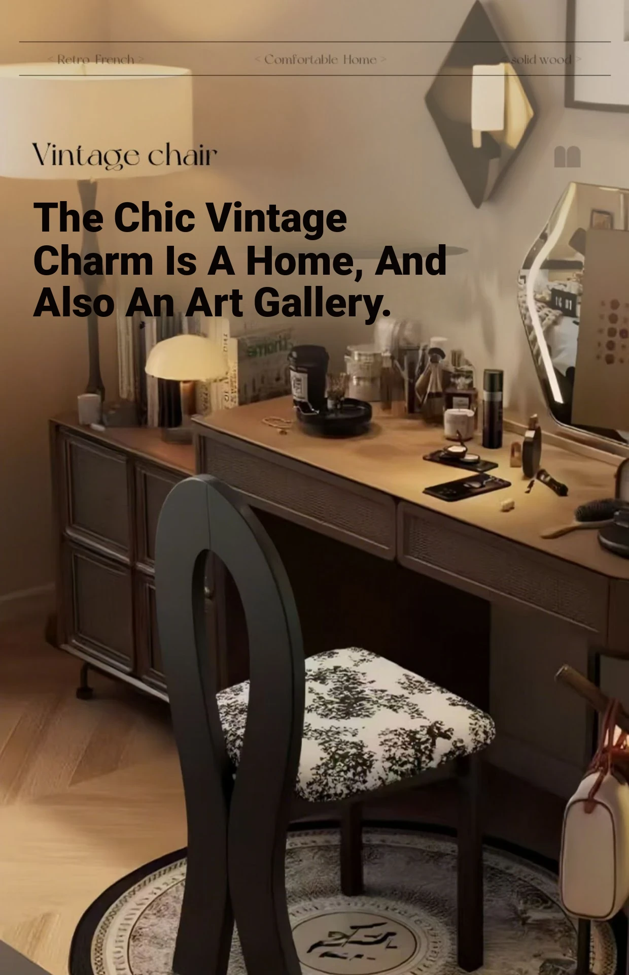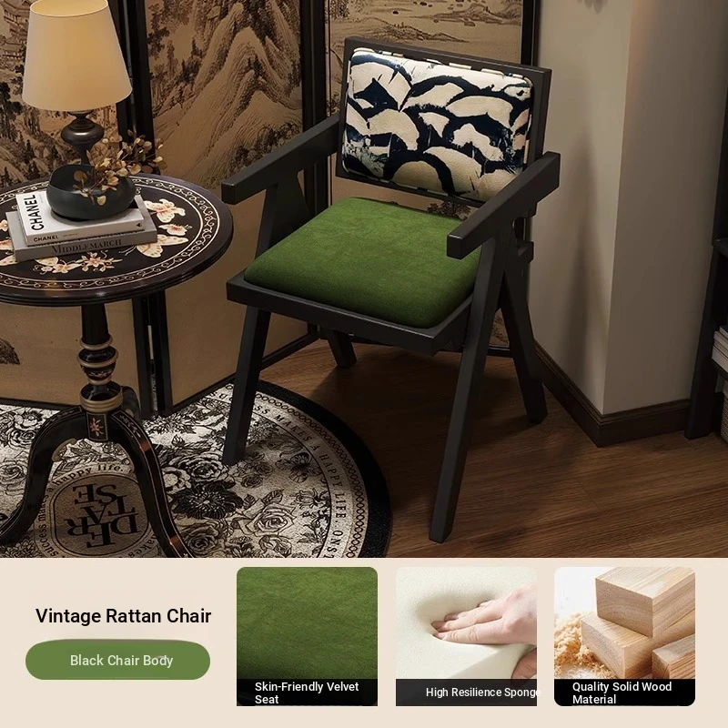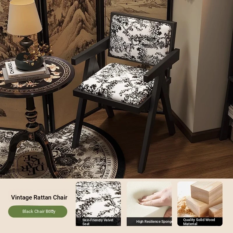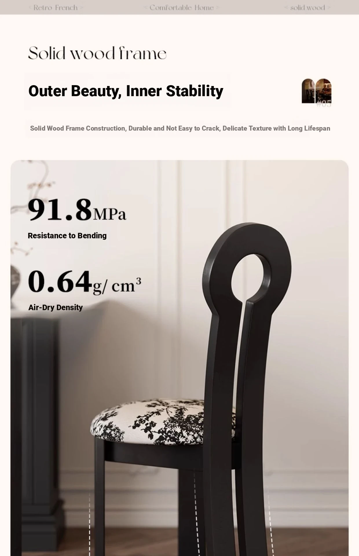 Vintage French Style Makeup Vanity Stool and Dining Chair Set - Solid Wood Dressing Table Chair for Bedroom and Dining Room, Chic Antique Design
