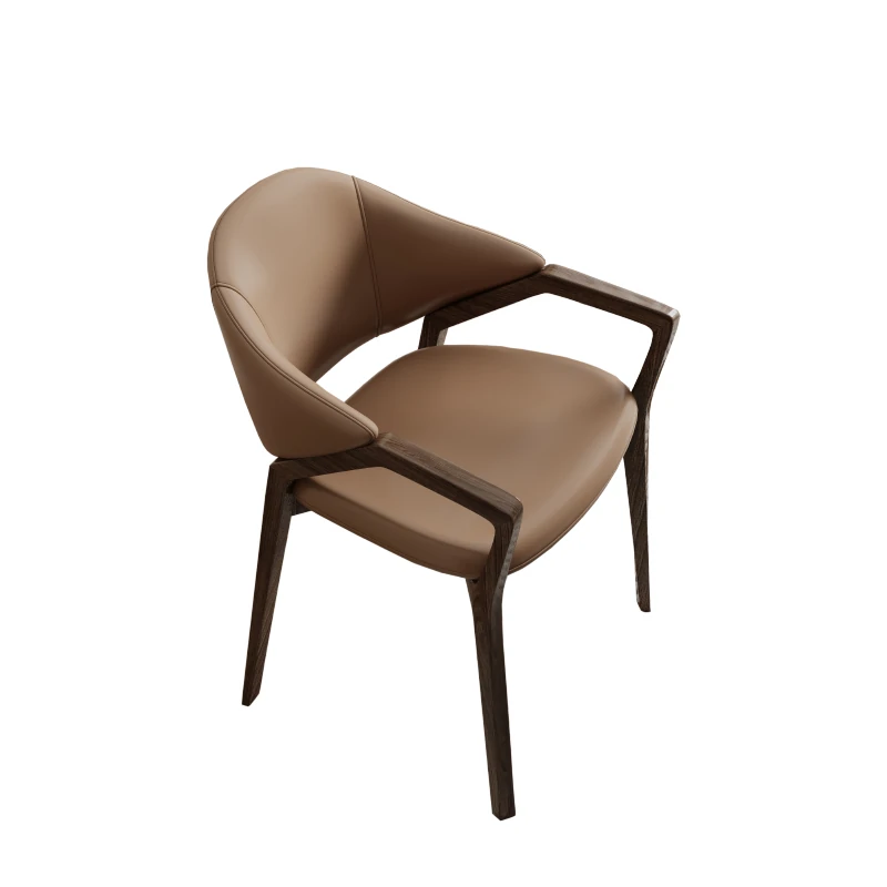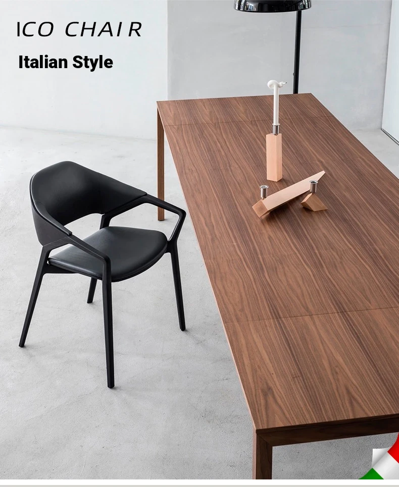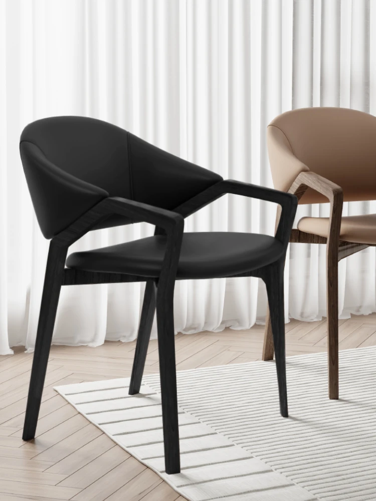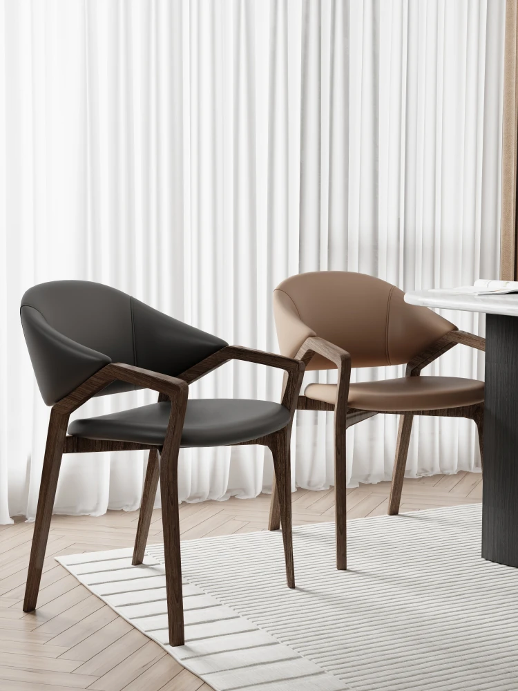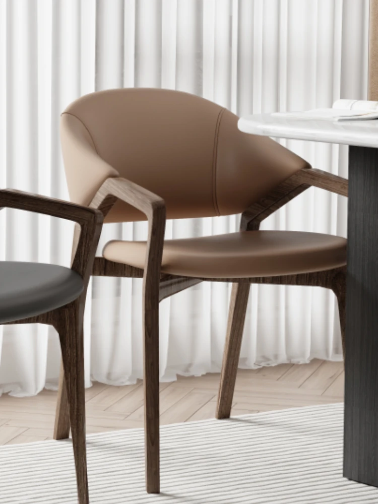 Wabi-Sabi Nordic Designer Chair - Minimalist Italian Retro Dining Chair with Luxurious Genuine Leather and Solid Wood for Home Use - Elegant Armchair for Conversations