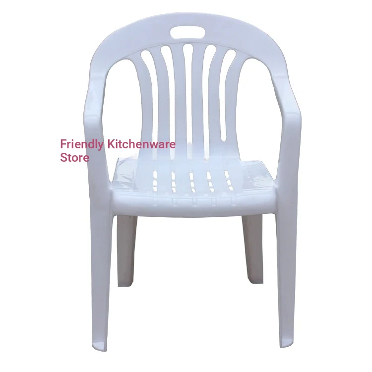 White Plastic Beach Chairs with Armrests and Backrests - Perfect for Outdoor Dining, Beer Tables, Conferences, and Trade Shows. Durable and Stylish Seating Solution for Any Occasion!