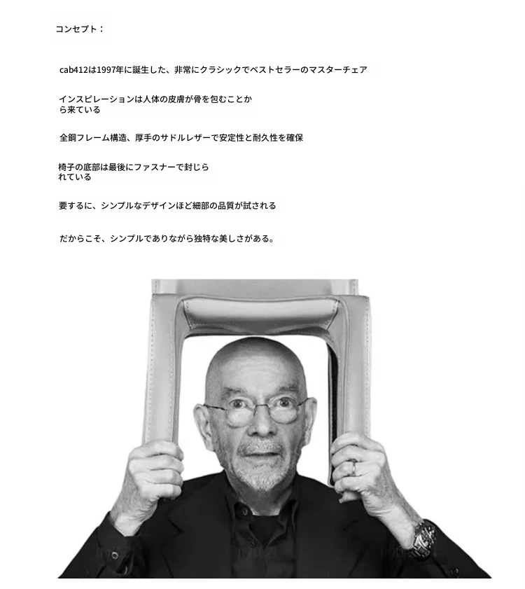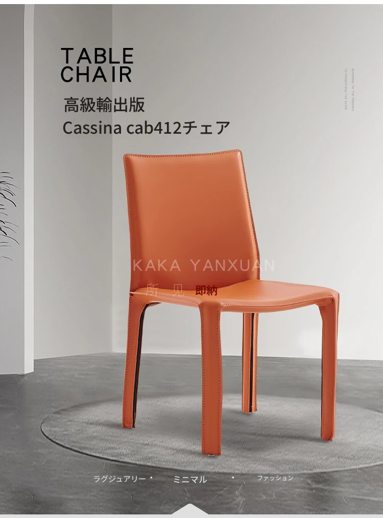 カッシーナCassina CAB412 イタリアンレザー ダイニングチェア - デザイナーズアートなシンプルさを追求した背もたれ付き椅子、洗練されたインテリアにぴったりの一品!