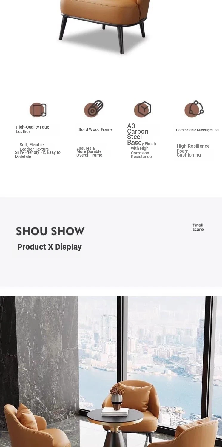 Chic Luxury Hotel Lounge Single Armchair - Perfect for Beauty Salons and Relaxation Areas, Includes a Stylish Sofa Set with Two Chairs for Comfortable Meetings and Conversations.