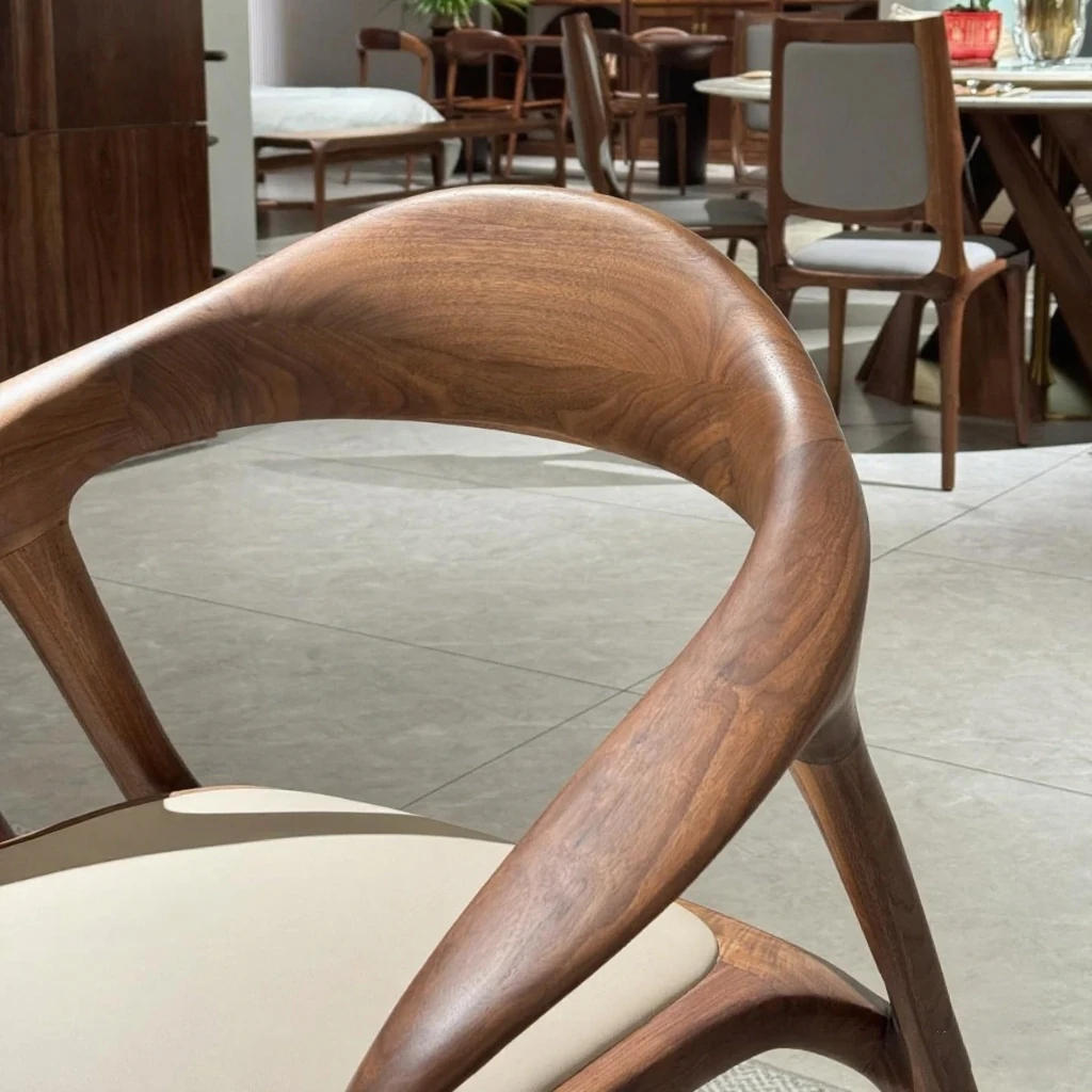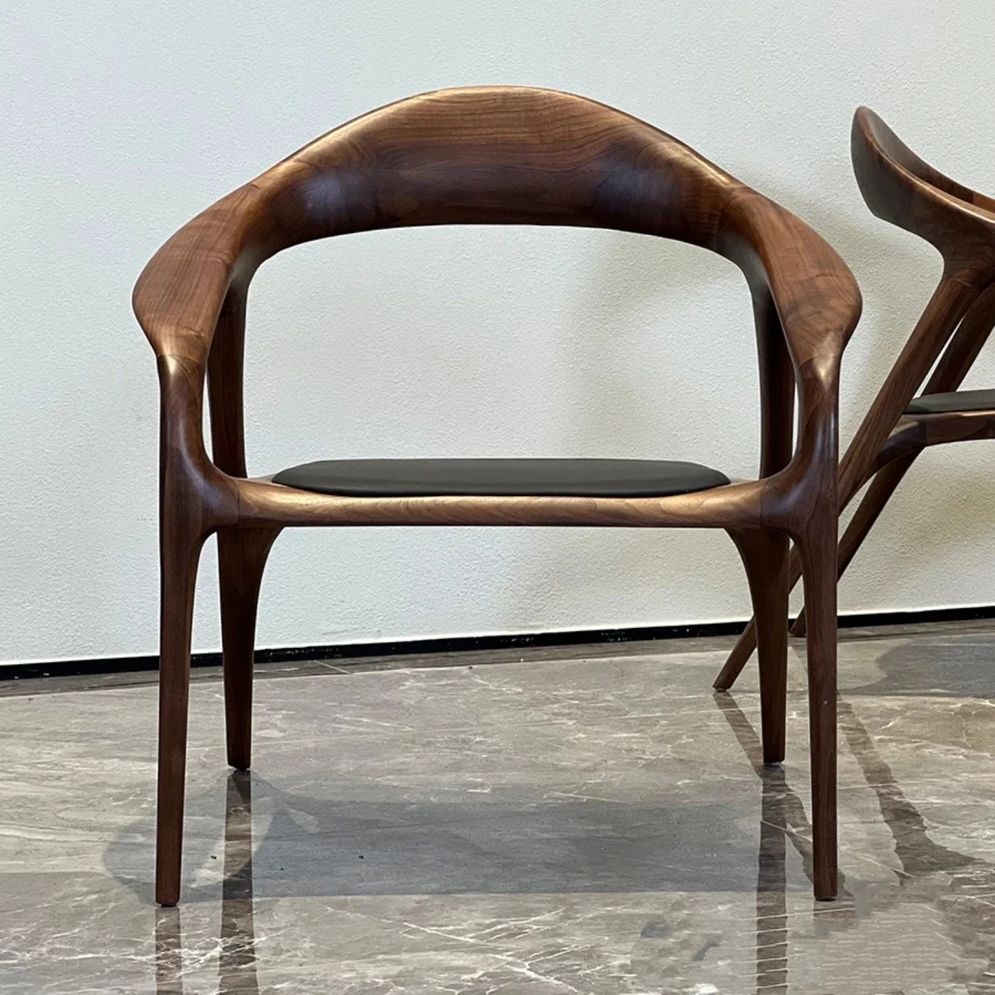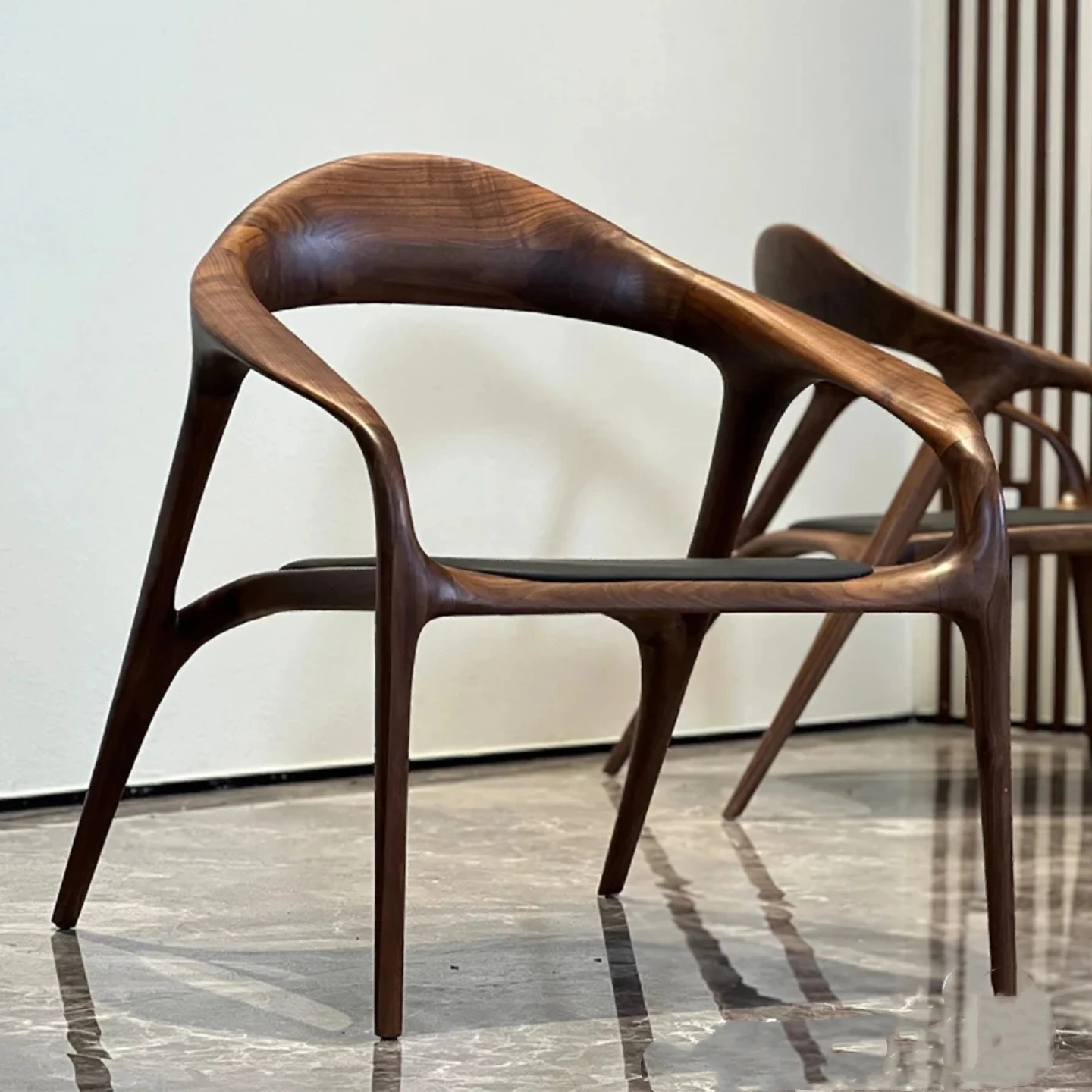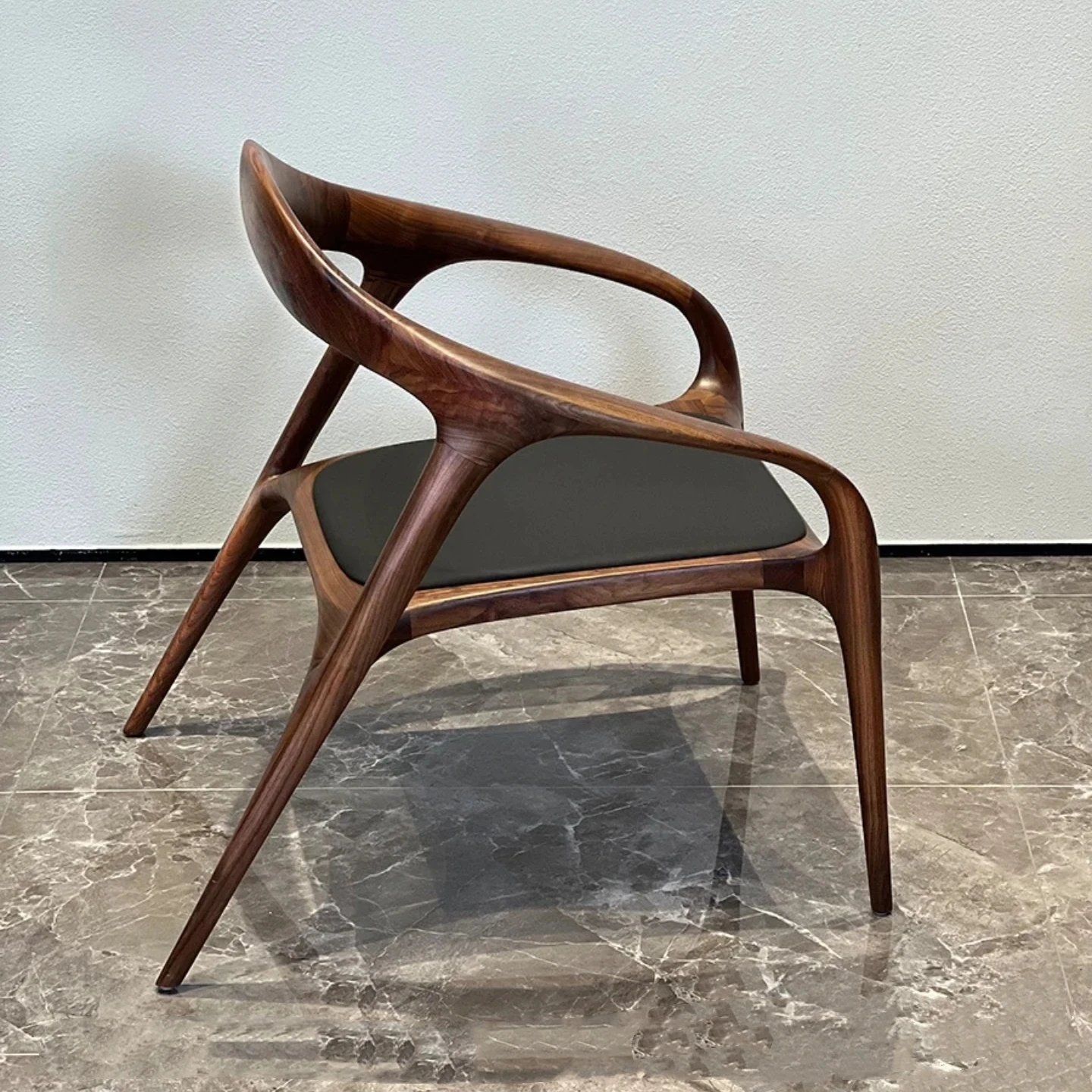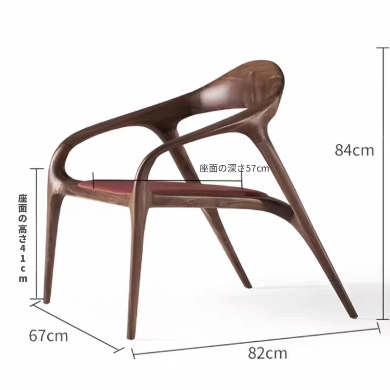 デザイナー風イタリアンブラックウッド無垢材リラックスチェア - 家庭用アームレスト付きダイニングチェア、書斎やティーテーブルに最適なスタイリッシュで快適な一脚!