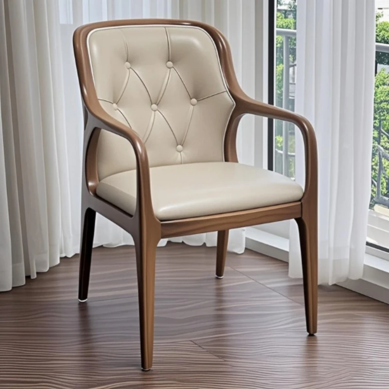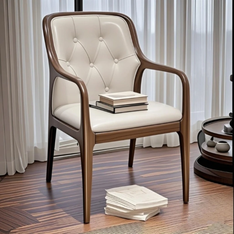 デザイナーズ北米ブラックウォールナット製 北欧スタイル 本革使用 ダイニングチェア・ティーチェア 現代中式 背もたれ付きソファチェア - 高品質な素材と洗練されたデザインで、どんなインテリアにもマッチします!