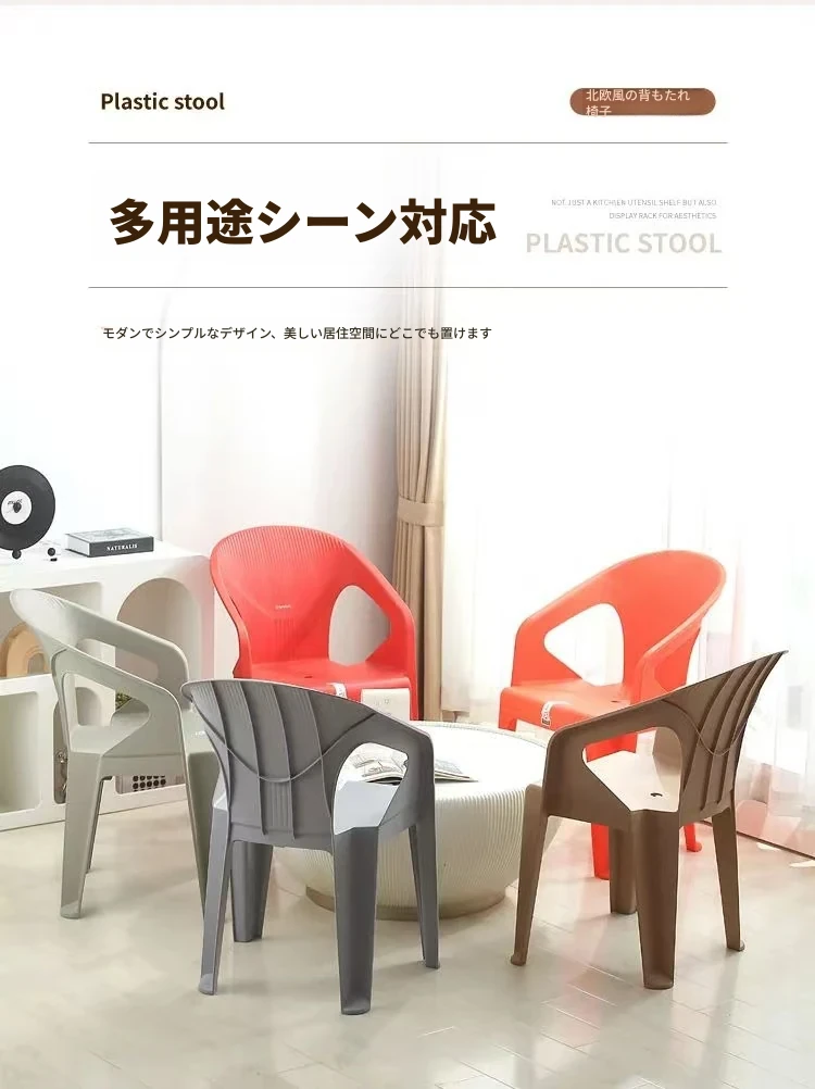 耐久性抜群!自宅用プラスチックチェア - リビングやビーチ、カフェに最適な厚手アームチェア。大人向け、壊れにくい背もたれ付き。快適さとスタイルを両立した一品です!