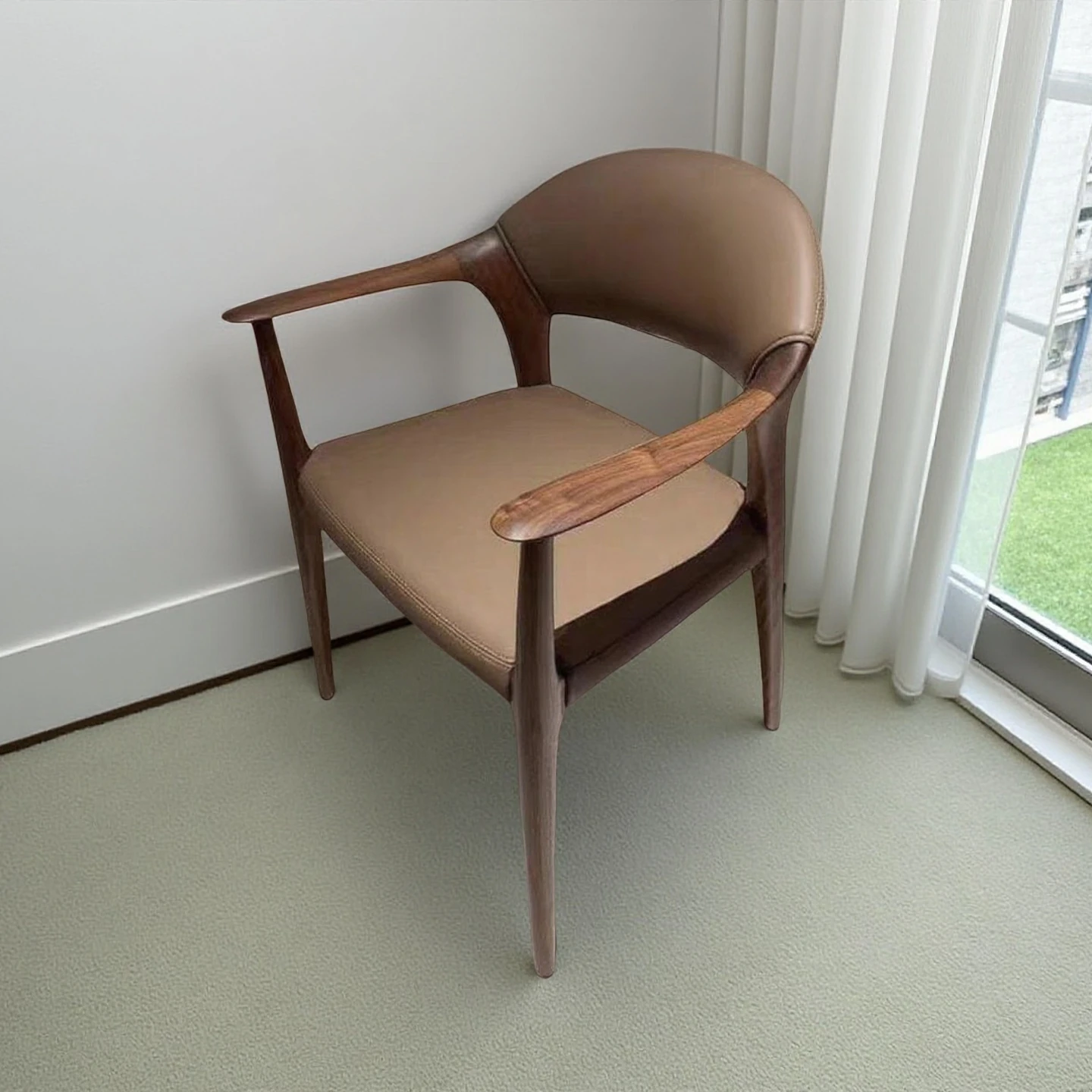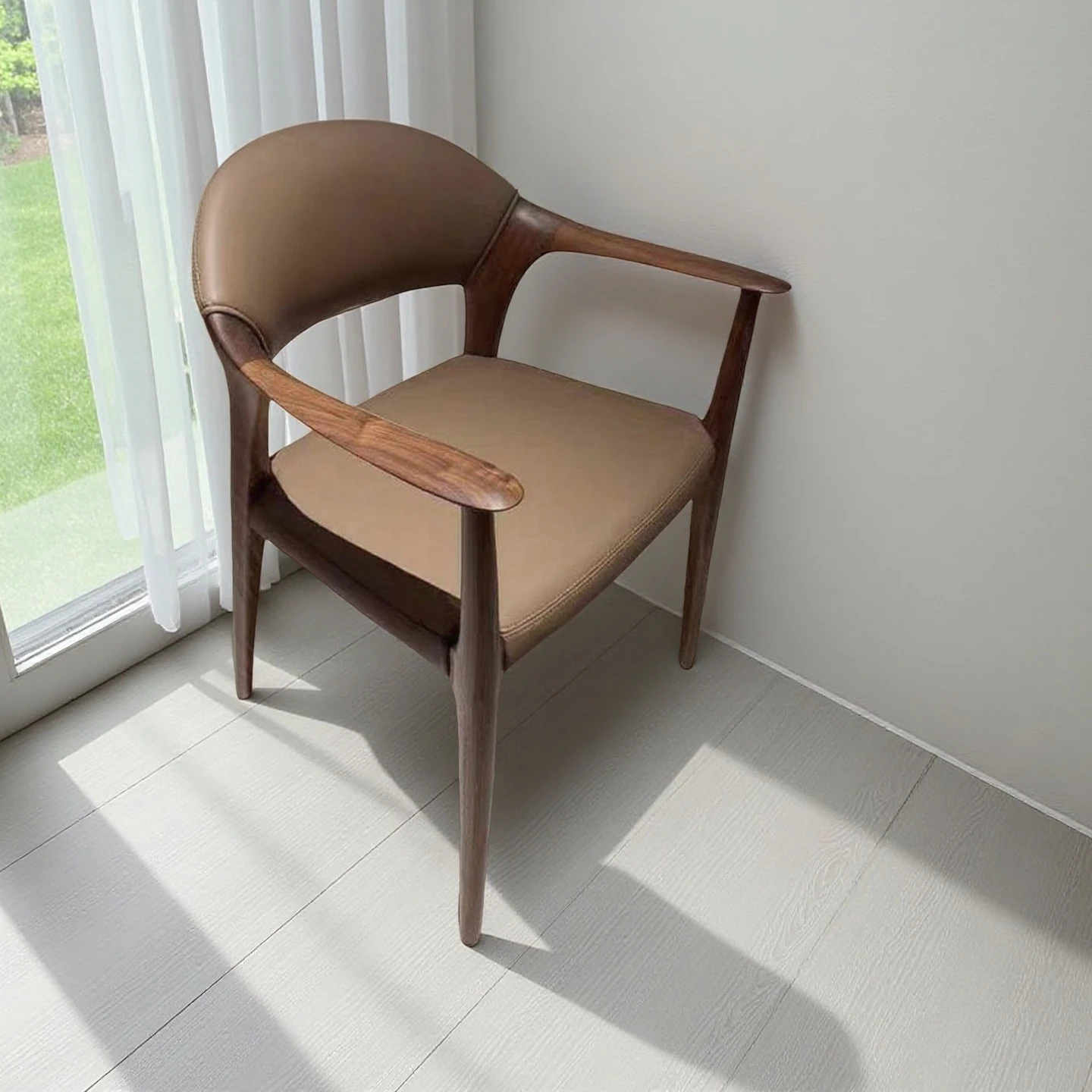 ブラックウォールナット製の茶椅子 - 家庭用実木イタリアンスタイル、囲み椅子・円形椅子。レストランやカフェでの打ち合わせに最適なソフトパッキングチェア。優雅なデザインと快適な座り心地を実現!