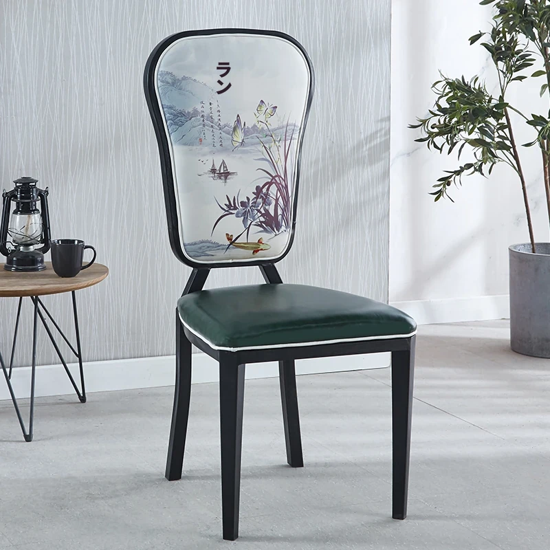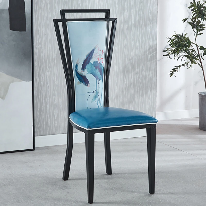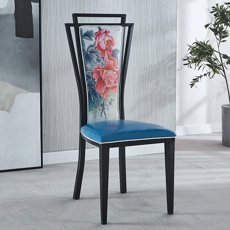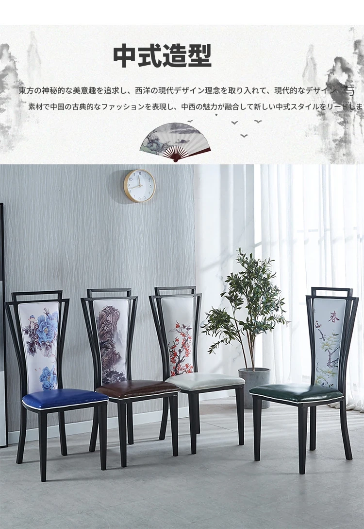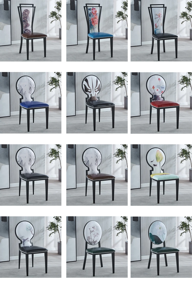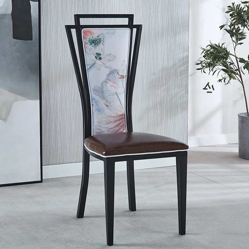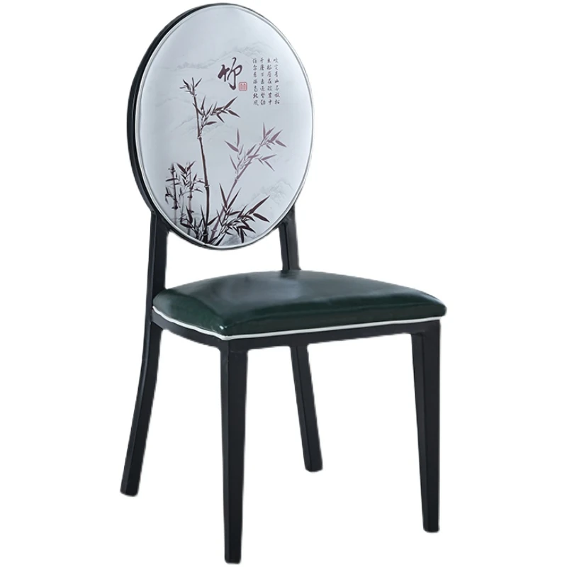 新中式デザインのレストラン用個室椅子!中国風の古典と現代が融合した鉄製宴会用背もたれ椅子。ホテルやレストランにぴったりのスタイリッシュなダイニングチェア!