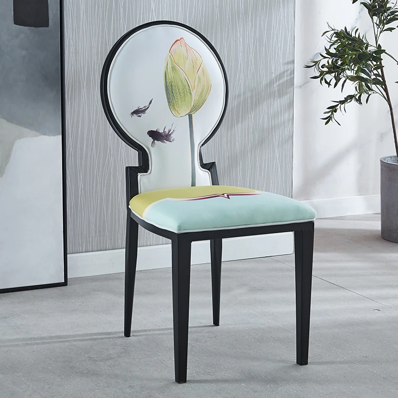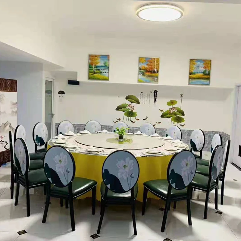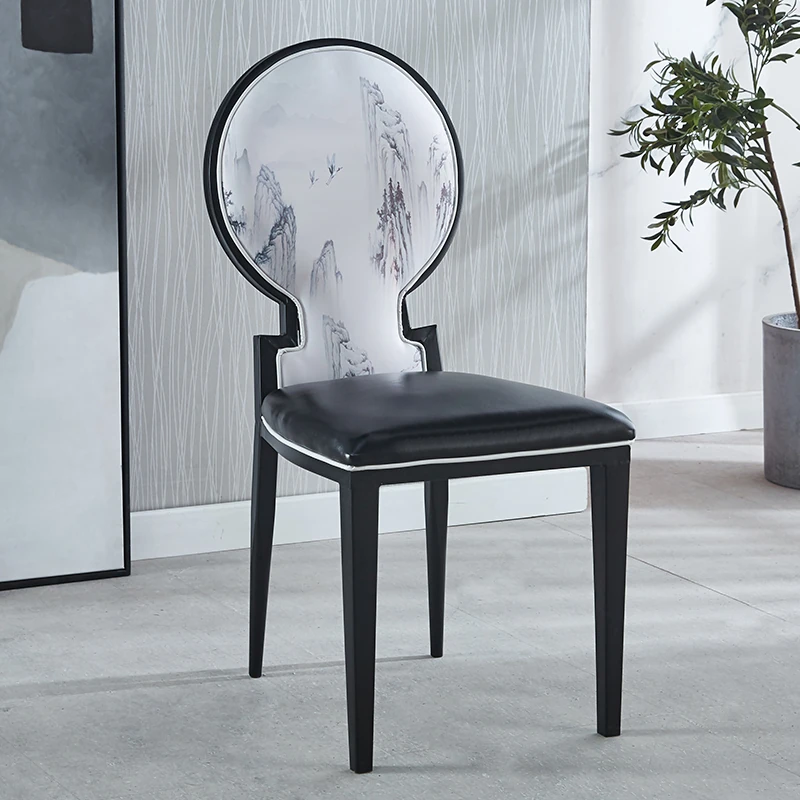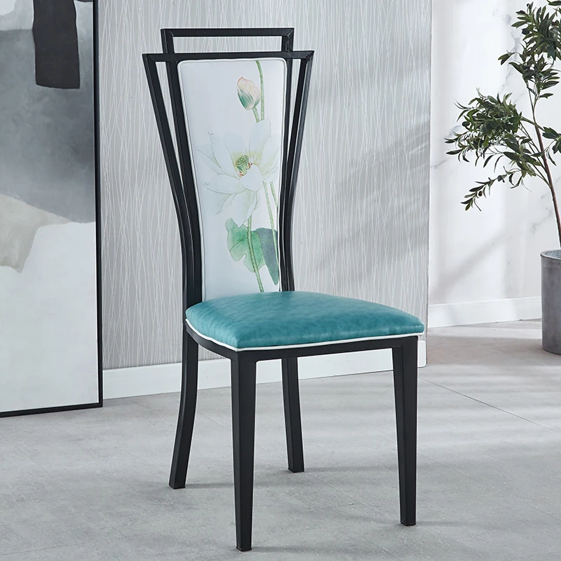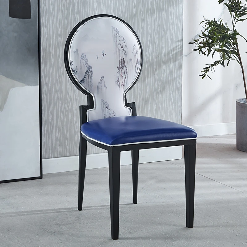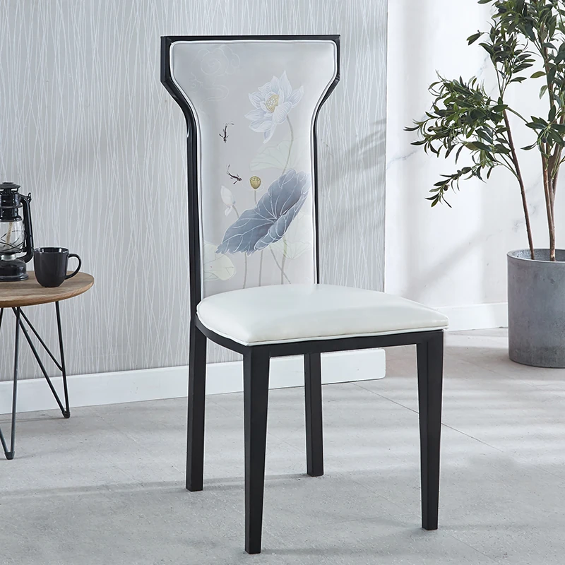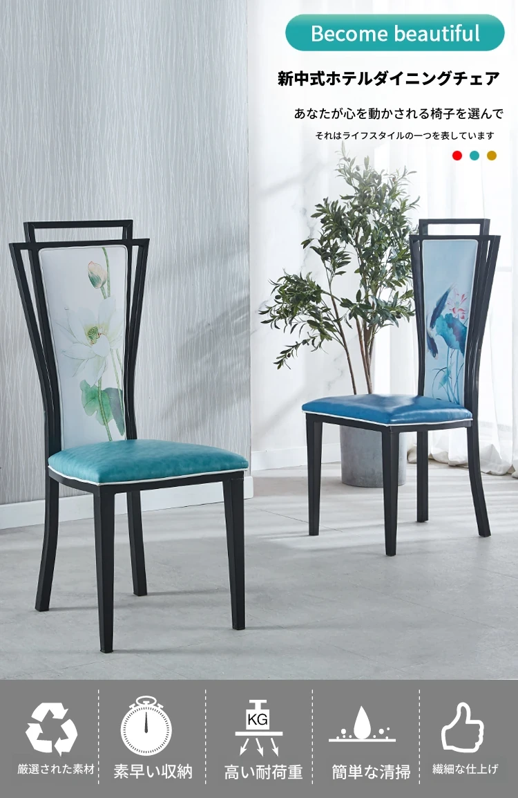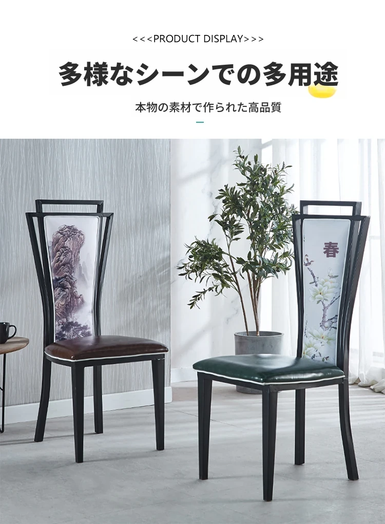新中式デザインのレストラン用個室椅子!中国風の古典と現代が融合した鉄製宴会用背もたれ椅子。ホテルやレストランにぴったりのスタイリッシュなダイニングチェア!