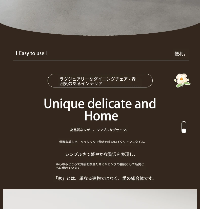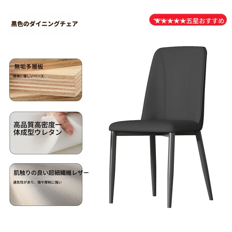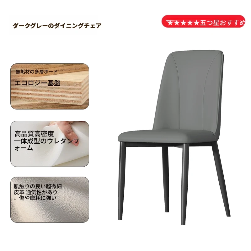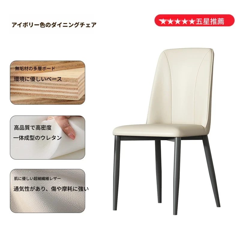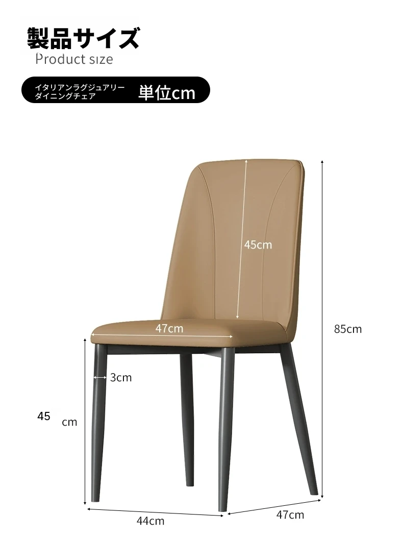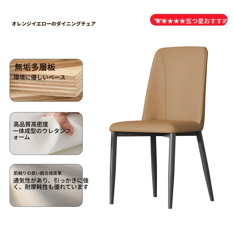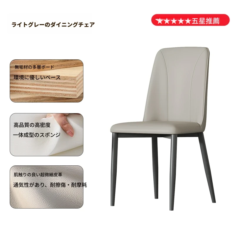 イタリアンミニマリズムのデザインで、軽やかで高級感溢れるダイニングチェア。モダンなシンプルさを追求した、快適な背もたれ付きの椅子で、あなたの食卓を一層引き立てます。