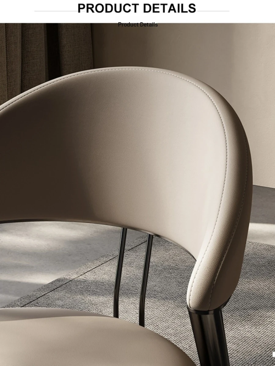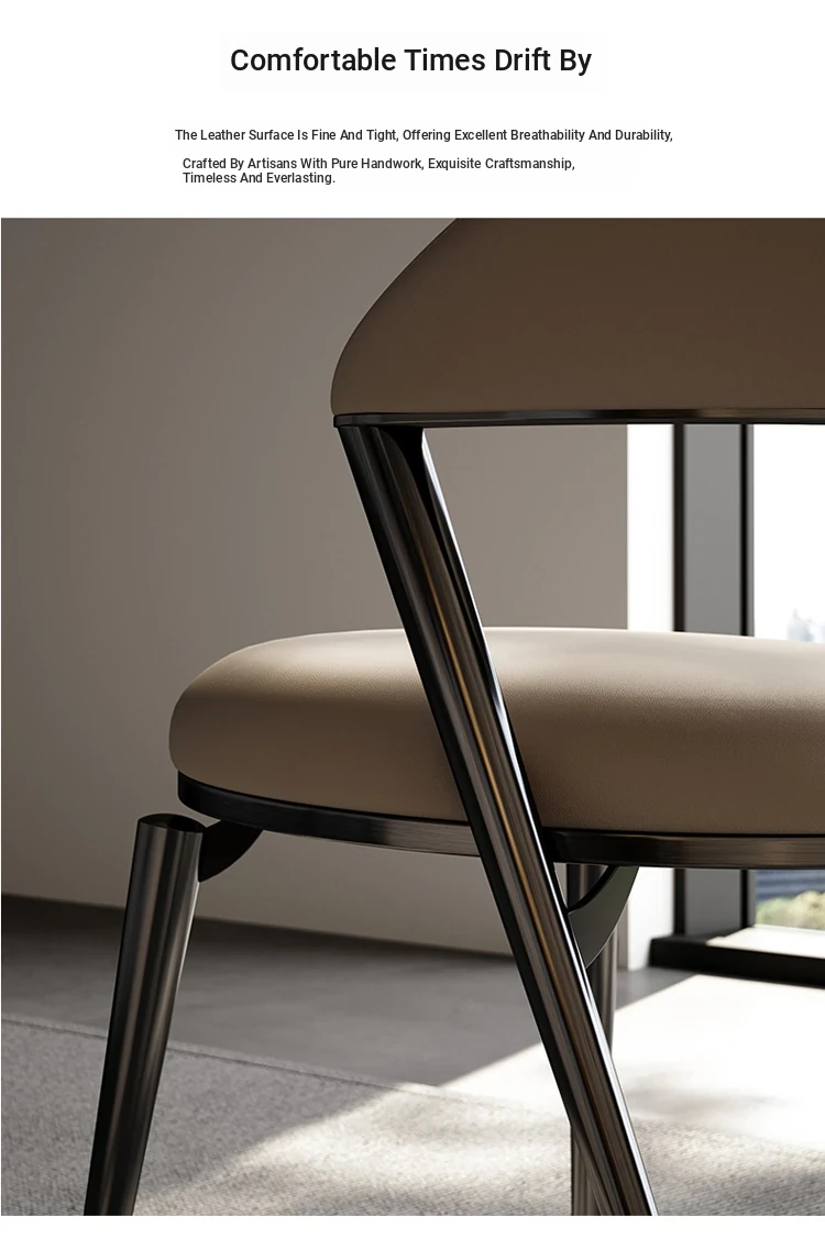 Elegant Modern Dining Chair with Soft Backrest - Italian Designer Style, Perfect for Home or Hotel Use, Featuring Durable Stainless Steel and Luxurious Leather Upholstery.