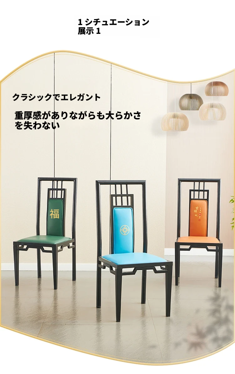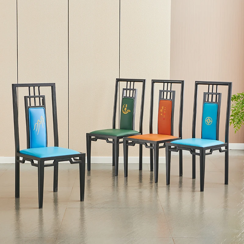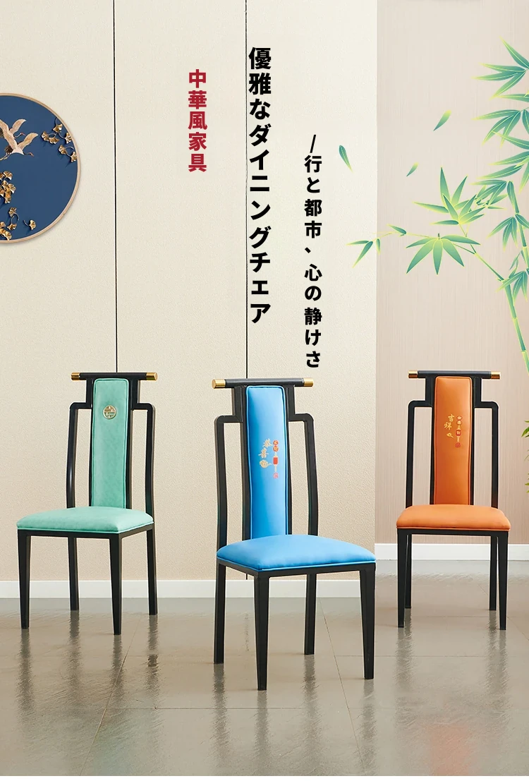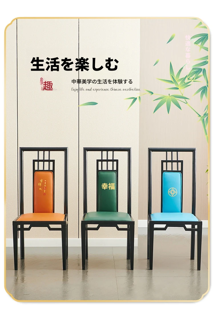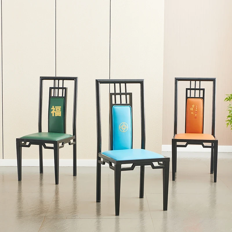 新中式デザインのレストラン用椅子!古典的な中国風の復古鉄製背もたれ付き、火鍋や宴会にぴったりの高級感あふれるホテル椅子。おしゃれな個室にも最適です。