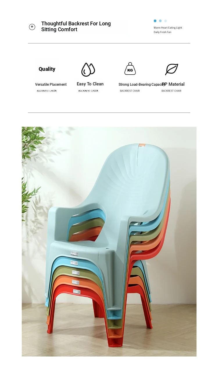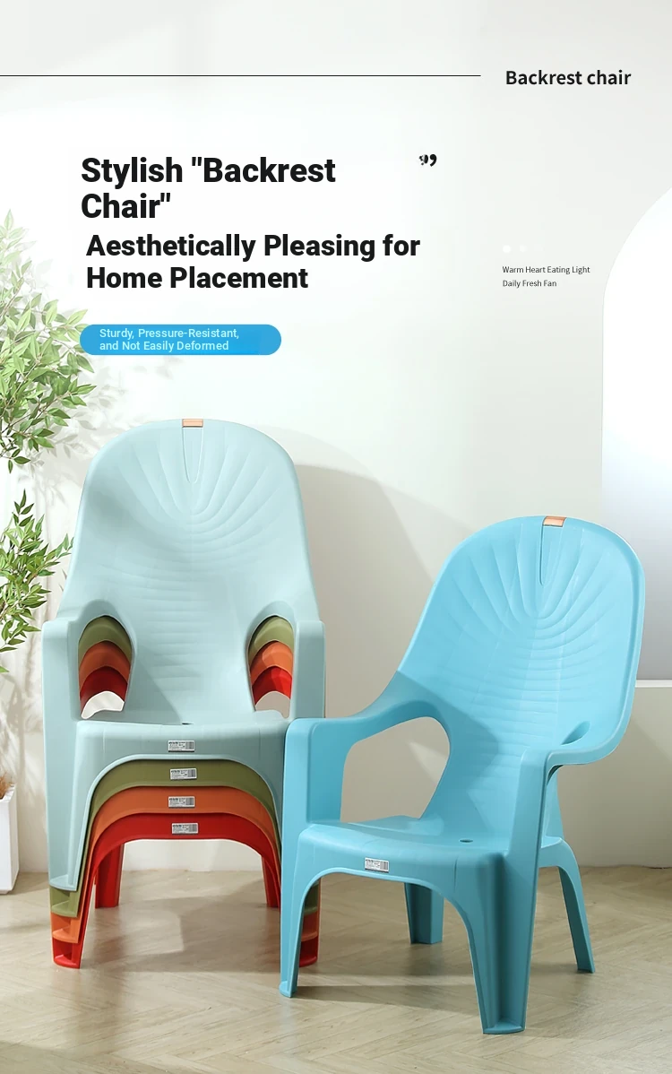 Extra Thick Plastic Backrest Chair - Sturdy Home Stool with Simple Design, Comfortable Armchair for Outdoor BBQs, Dining, and Beach Relaxation