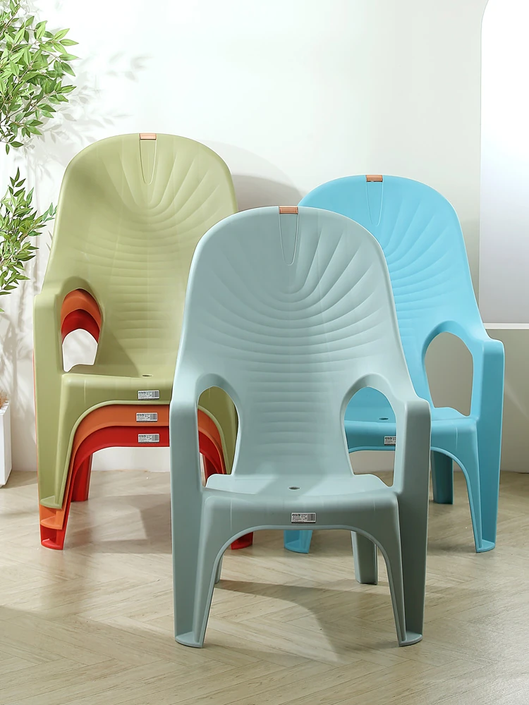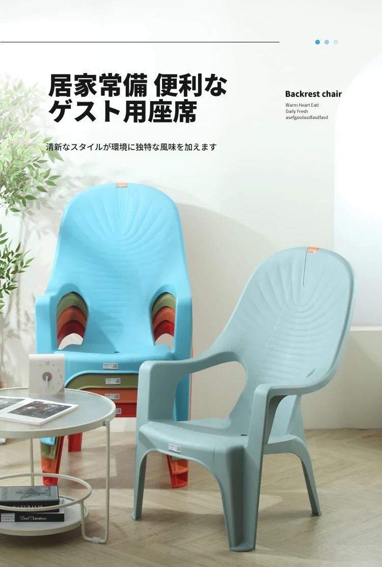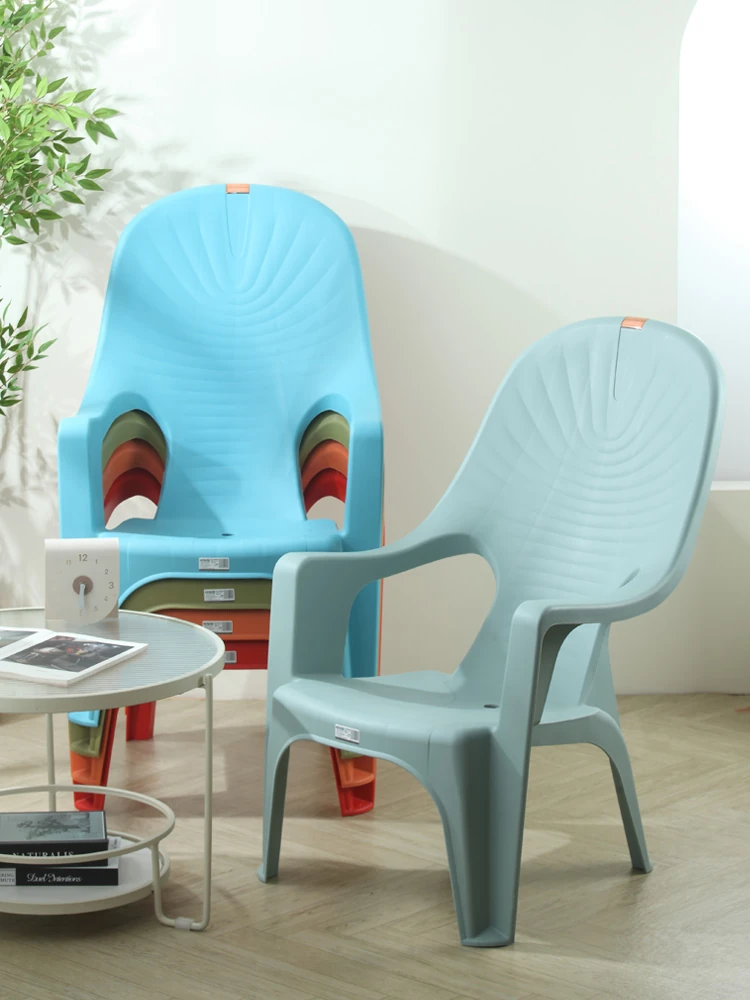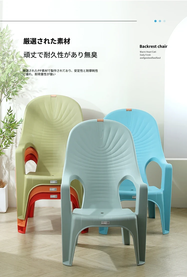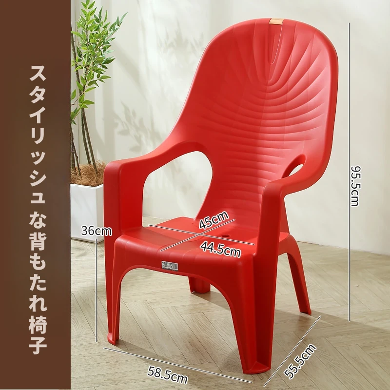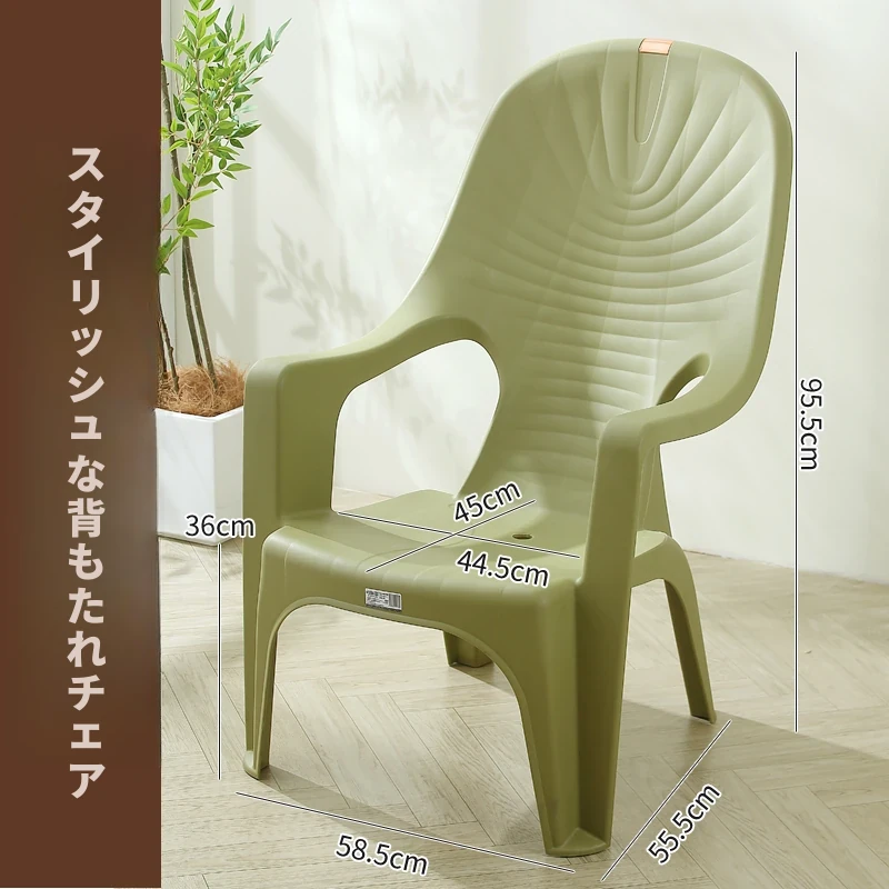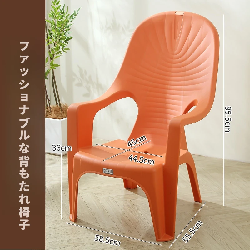 特厚プラスチック製背もたれチェア - 丈夫で家庭向けのシンプルなリクライニングアームチェア。アウトドアバーベキューやビーチでの食事に最適!快適さとスタイルを兼ね備えた一脚を手に入れよう!