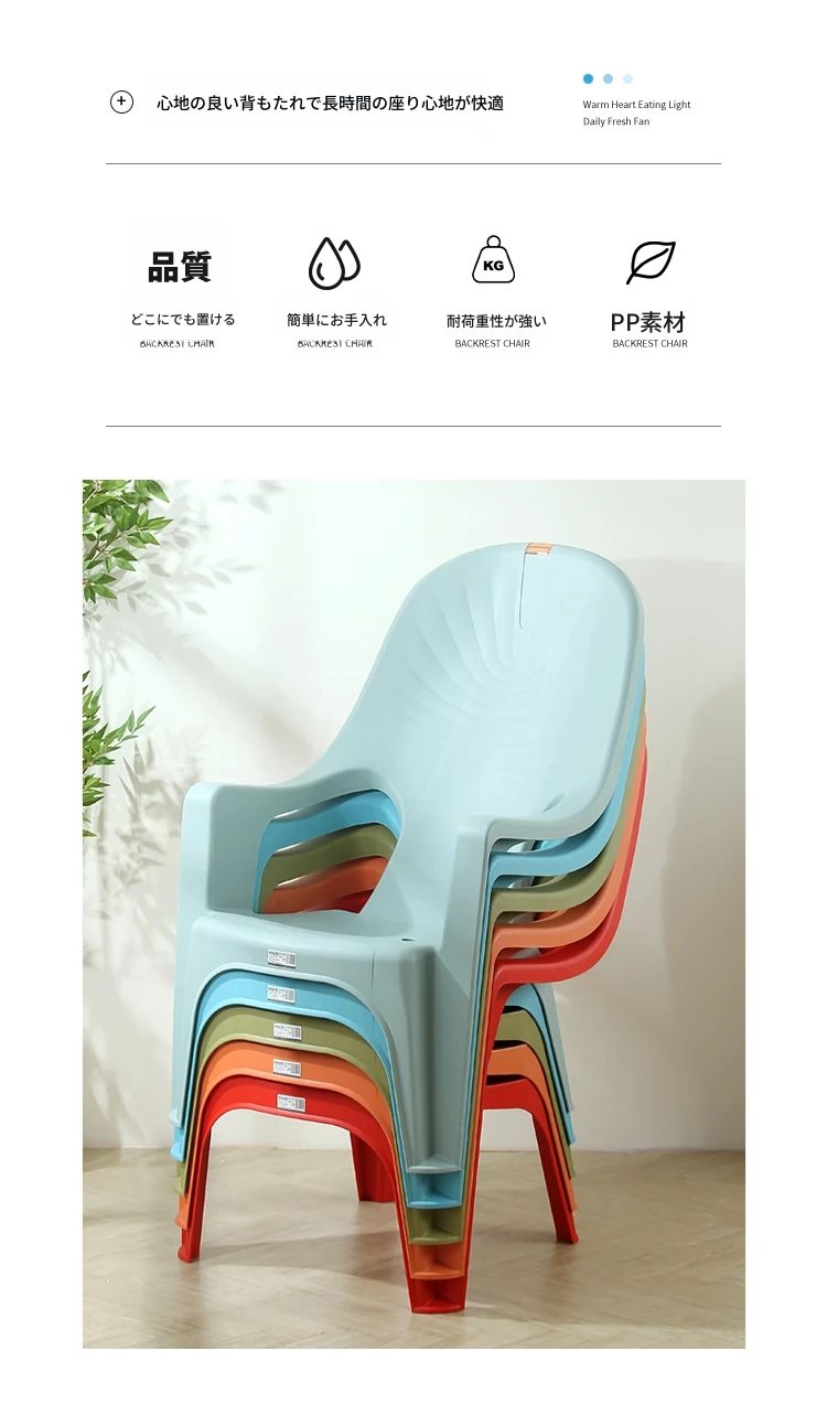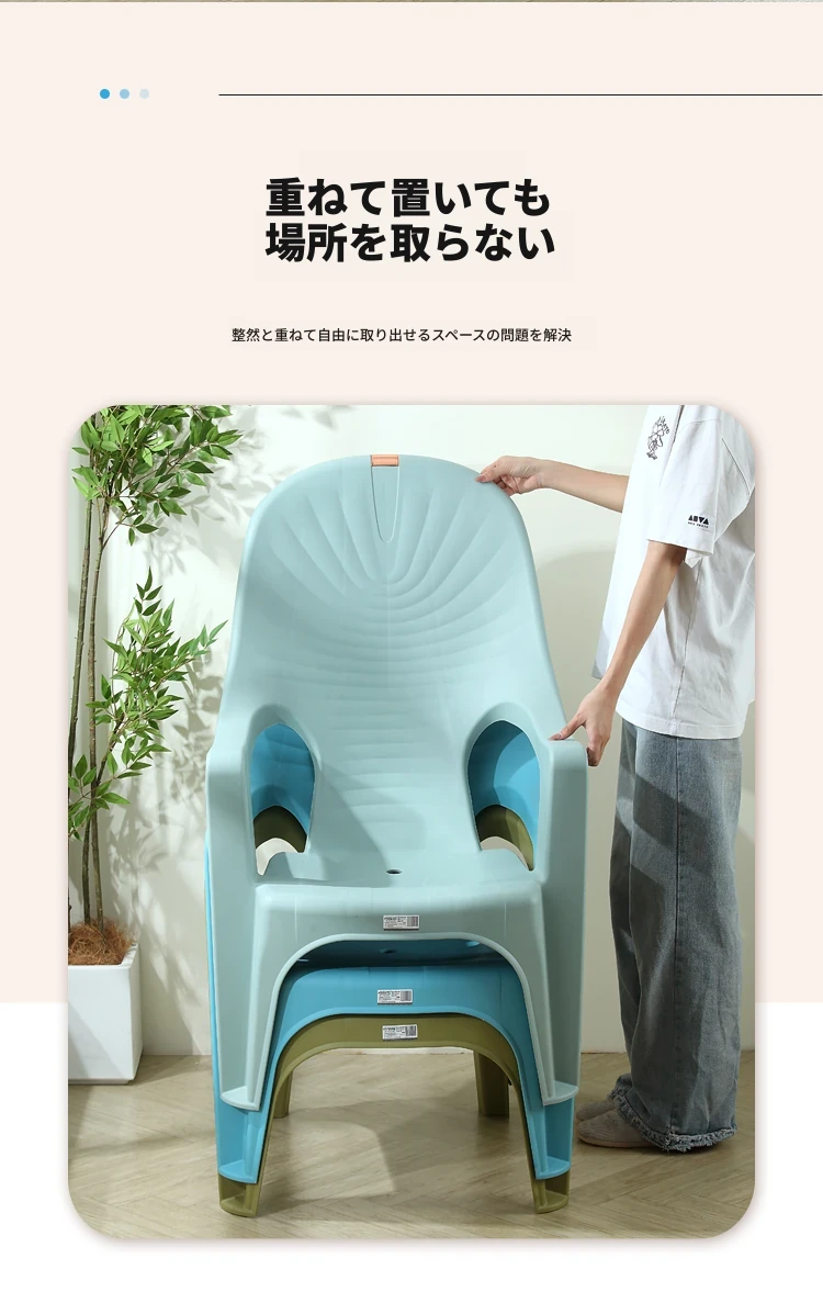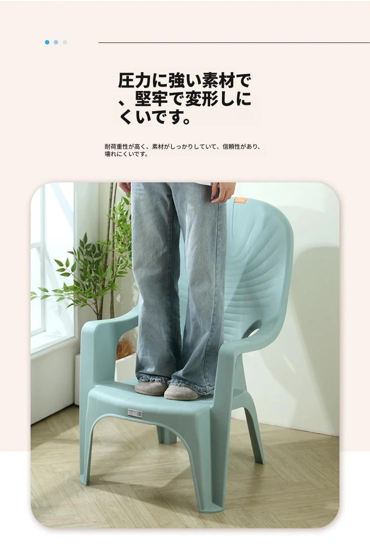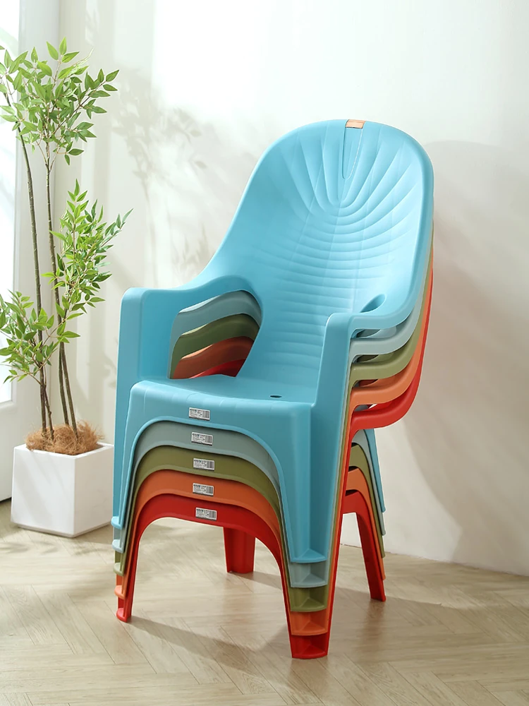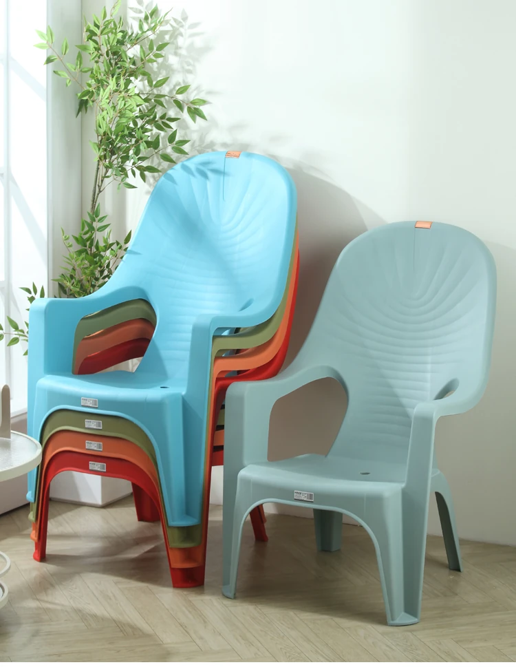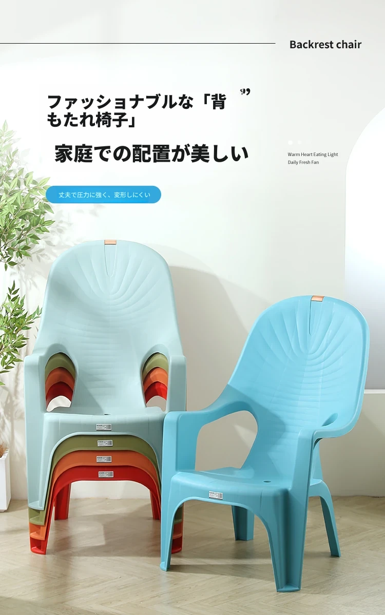 特厚プラスチック製背もたれチェア - 丈夫で家庭向けのシンプルなリクライニングアームチェア。アウトドアバーベキューやビーチでの食事に最適!快適さとスタイルを兼ね備えた一脚を手に入れよう!