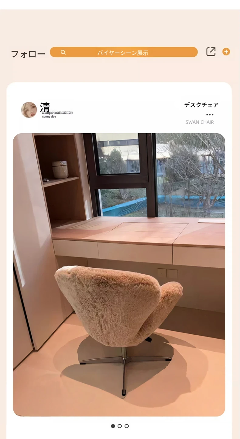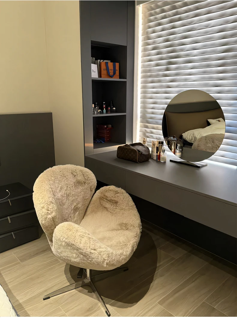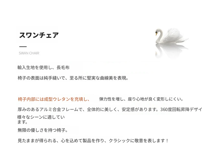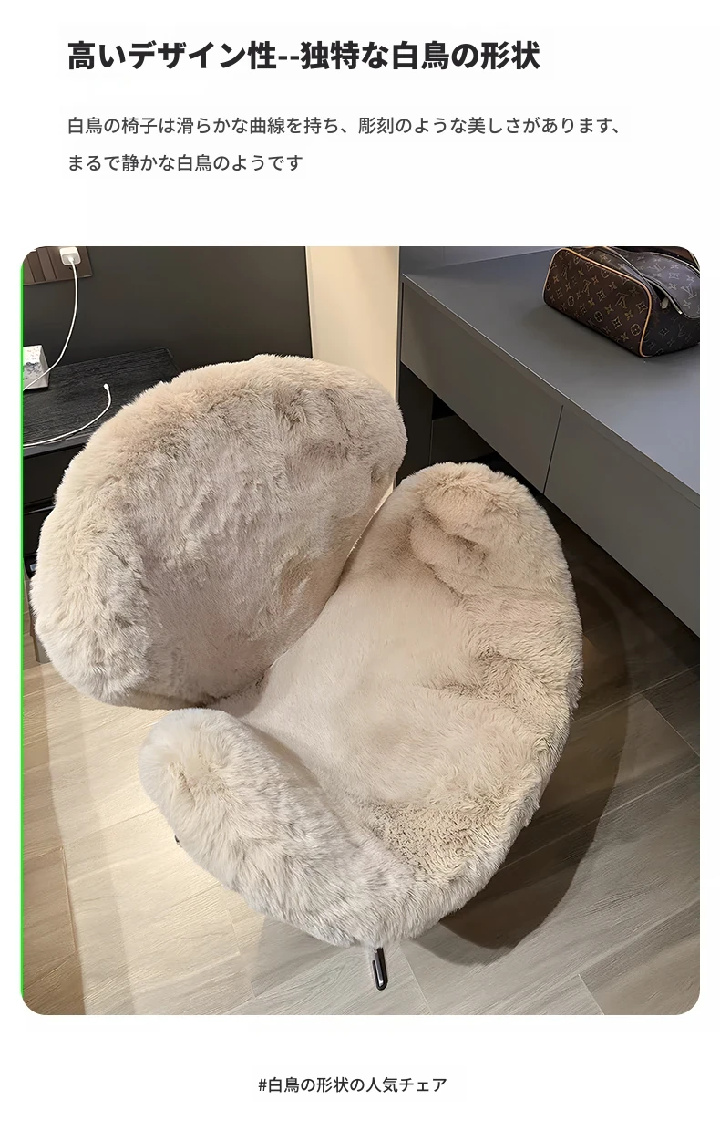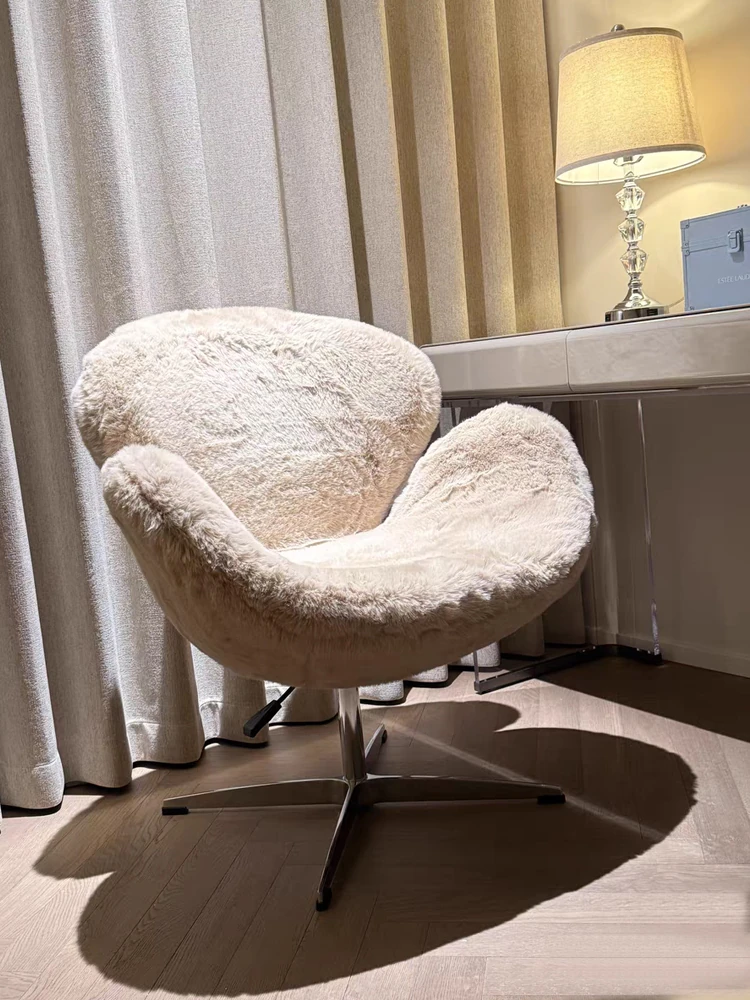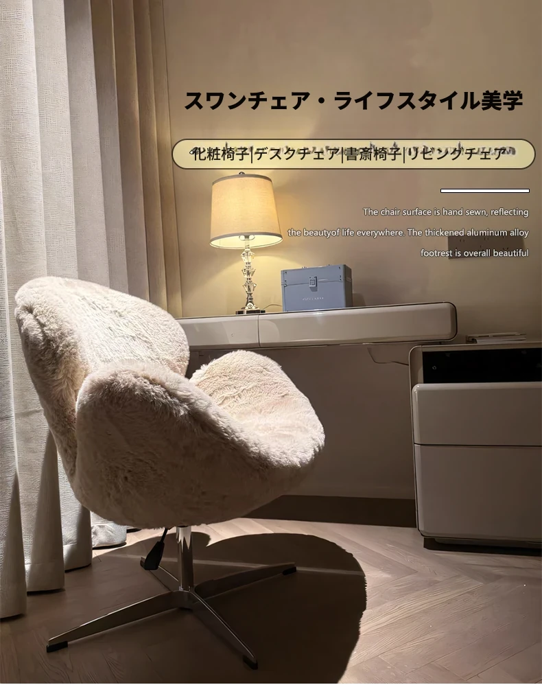 フランス風ドレッサーとメイクアップスツール、女性のための回転式一人掛けソファ、ラグジュアリーなピンクのスワンチェアで、あなたの寝室をおしゃれに彩ります!