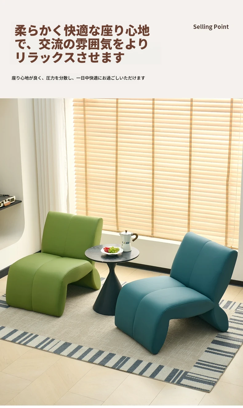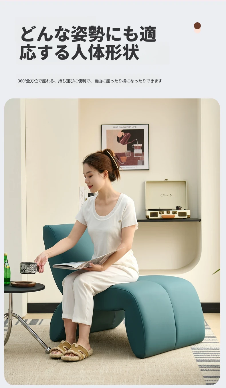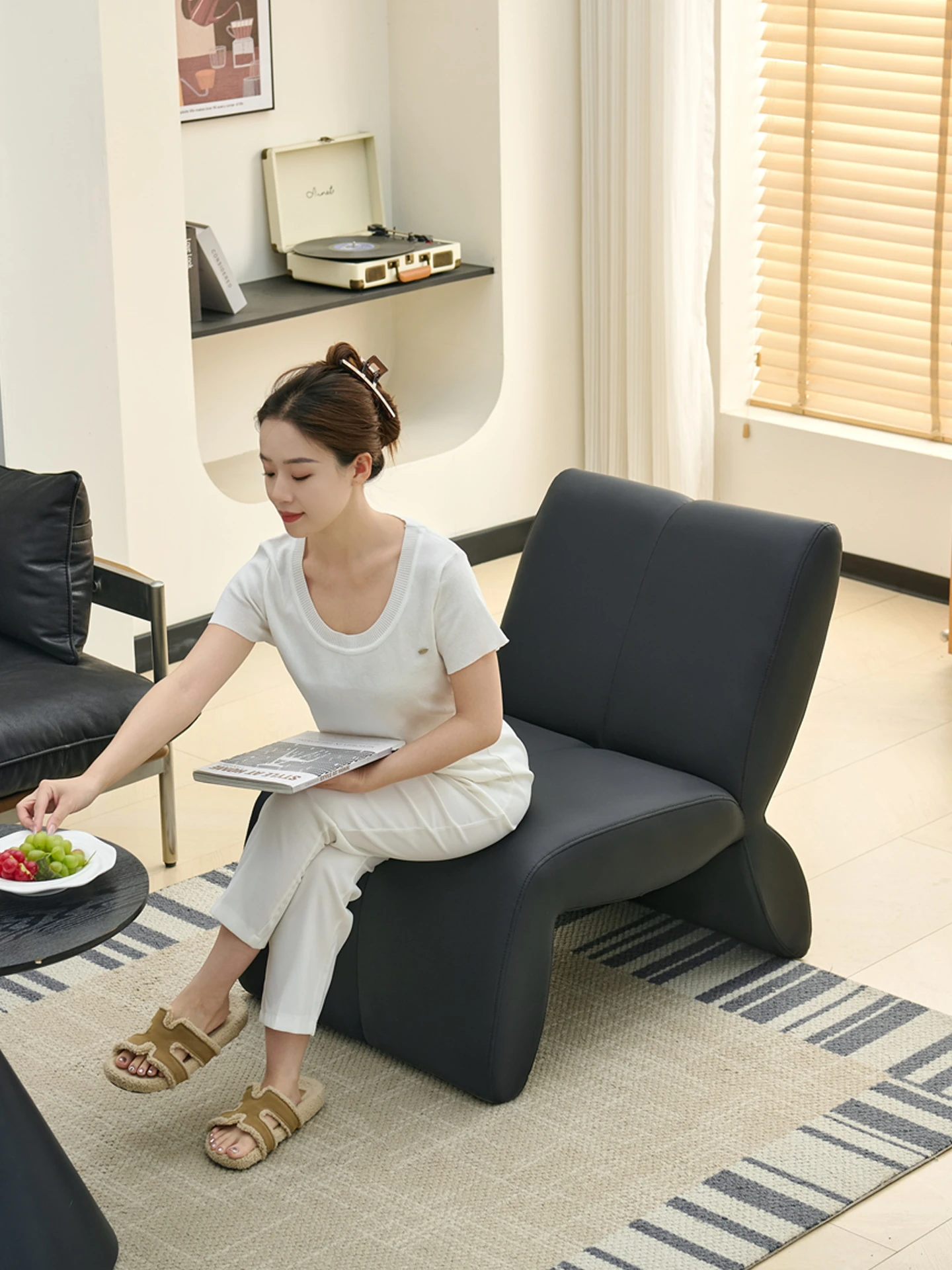 フレンチスタイルの一人用ソファチェア - 黒色のクリエイティブデザイン!小さなスペースにぴったりの侘寂スタイル。デザイナーが手がけた、リラックスできるバルコニー用椅子です。おしゃれで機能的な空間を演出!