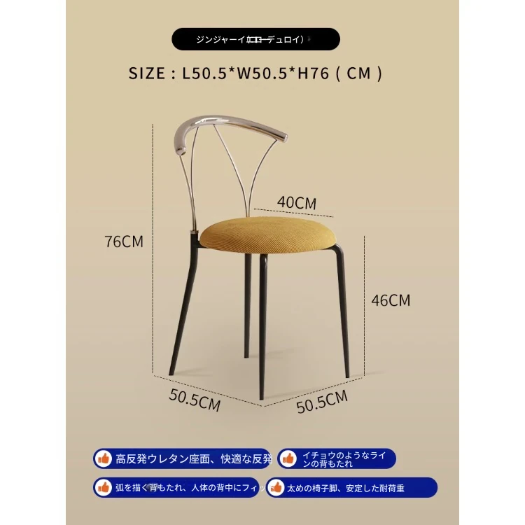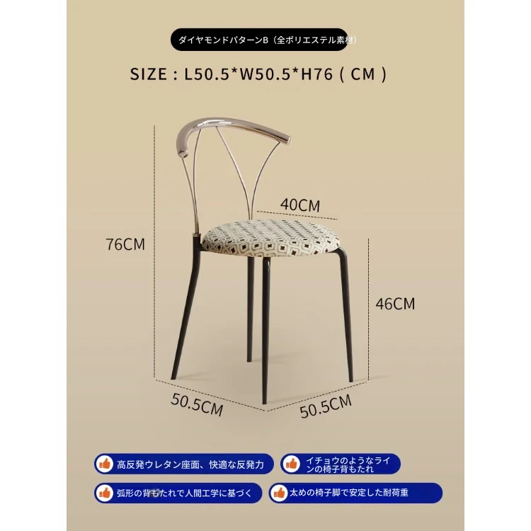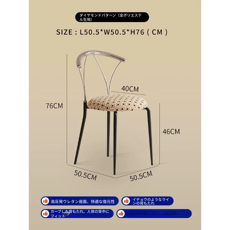 フランス風クリエイティブステンレス製ダイニングチェアー|モダンミニマリスト家庭用食卓椅子|シンプルで高級感溢れる化粧椅子|スタイリッシュな空間を演出します!