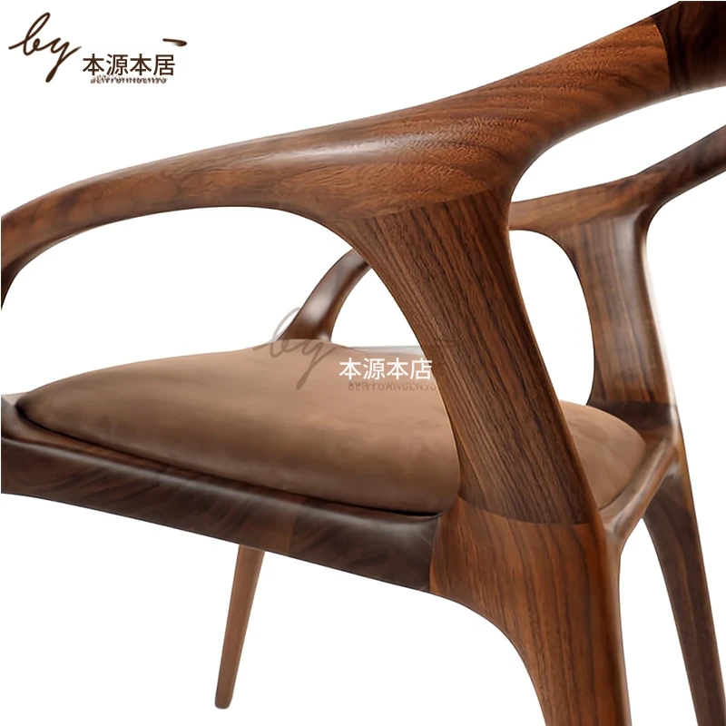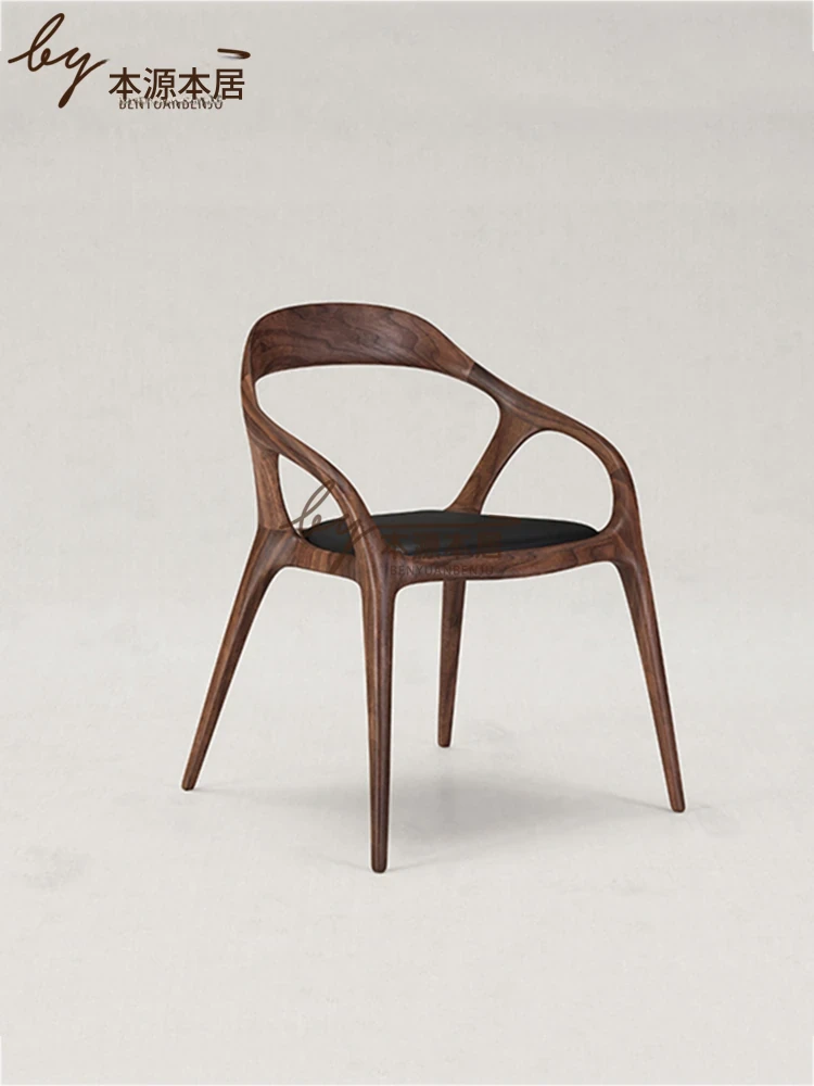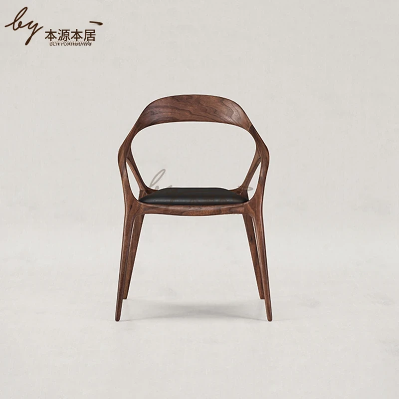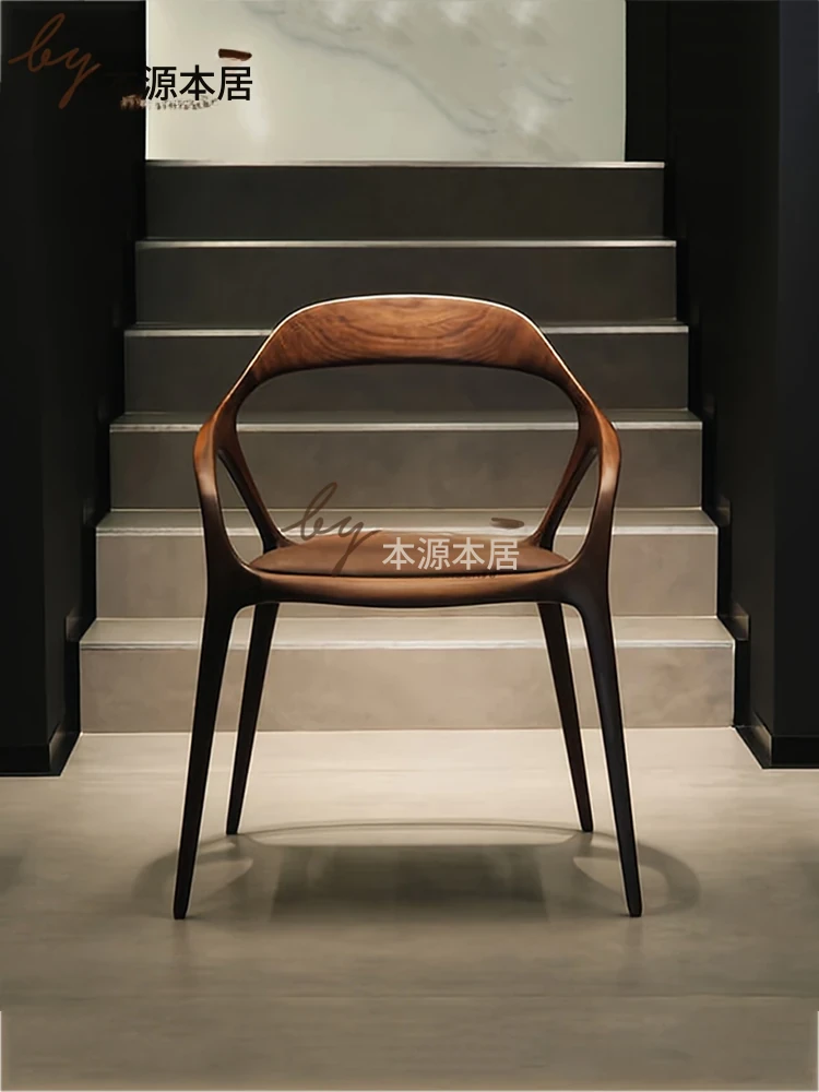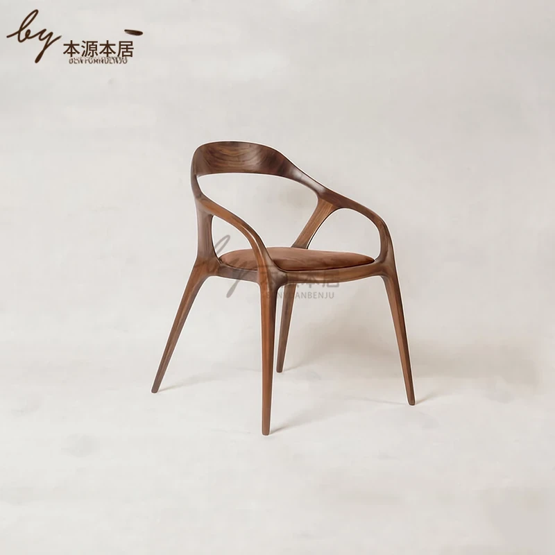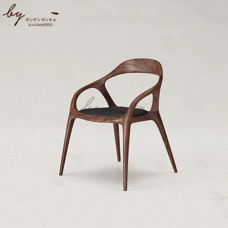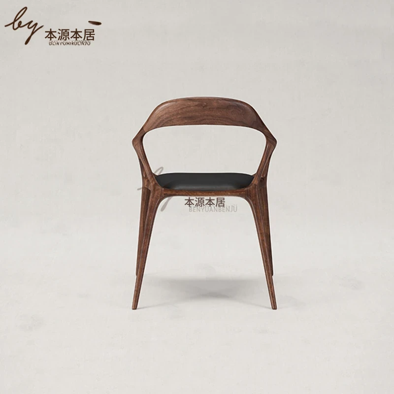 新中式クリエイティブデザインの無垢材ダイニングチェア - 茶室やリラクゼーションスペースに最適!洗練された雰囲気の民宿やレストランにぴったりなアームチェアで、居心地の良いひとときを提供します。