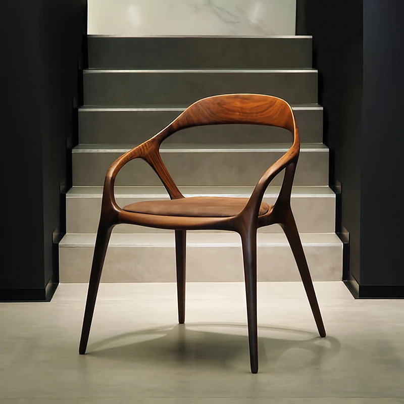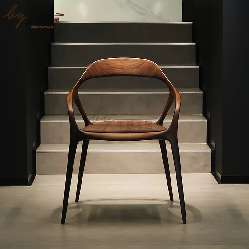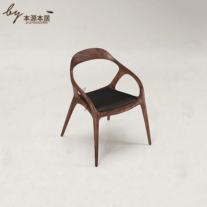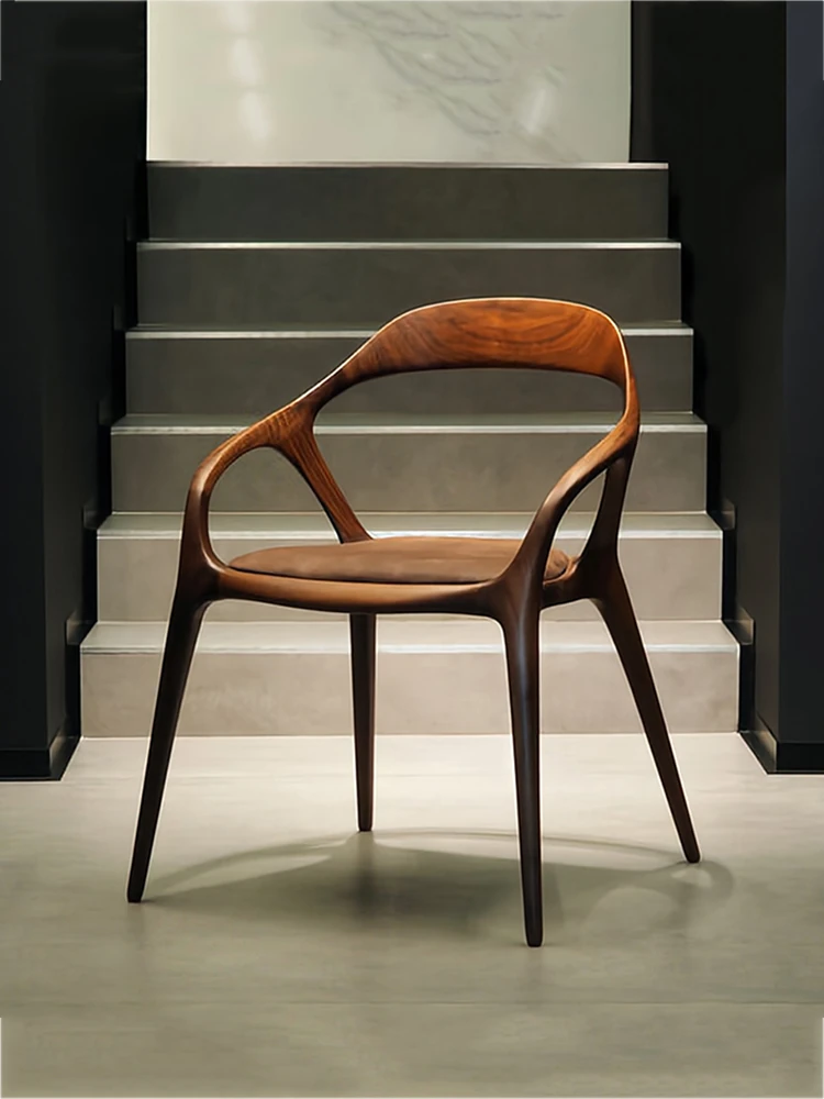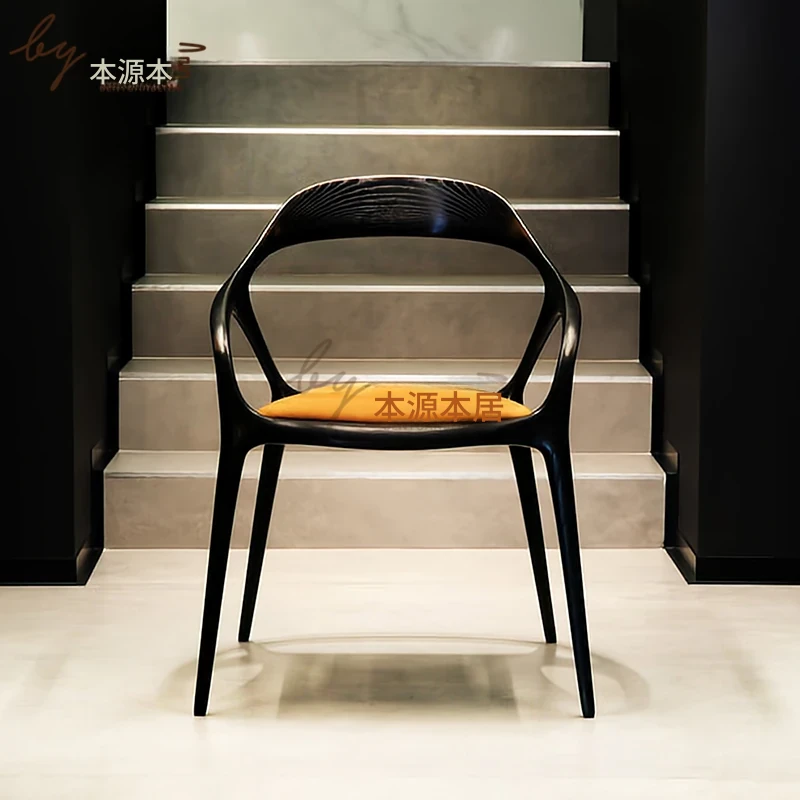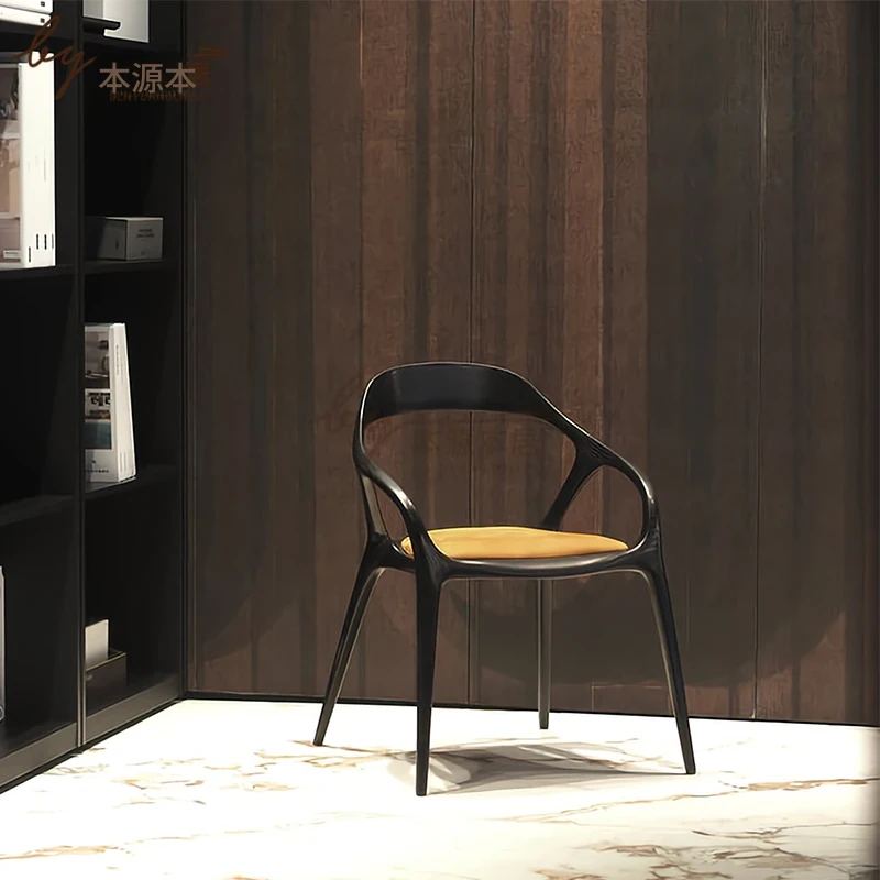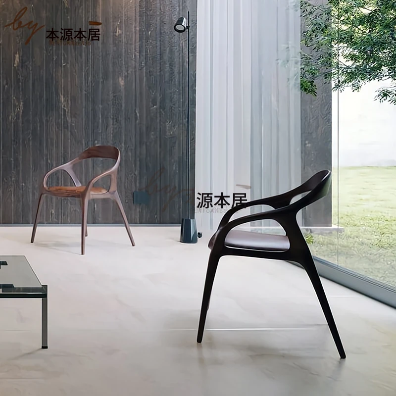 新中式クリエイティブデザインの無垢材ダイニングチェア - 茶室やリラクゼーションスペースに最適!洗練された雰囲気の民宿やレストランにぴったりなアームチェアで、居心地の良いひとときを提供します。