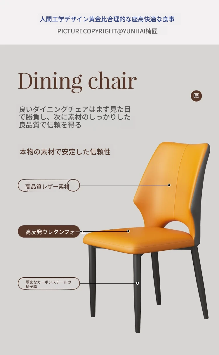 イタリアン・ラグジュアリー・ダイニングチェア|モダンでシンプルなデザイン|北欧スタイル|皮革製|談話や dining に最適|ホテルの食卓にもぴったり!